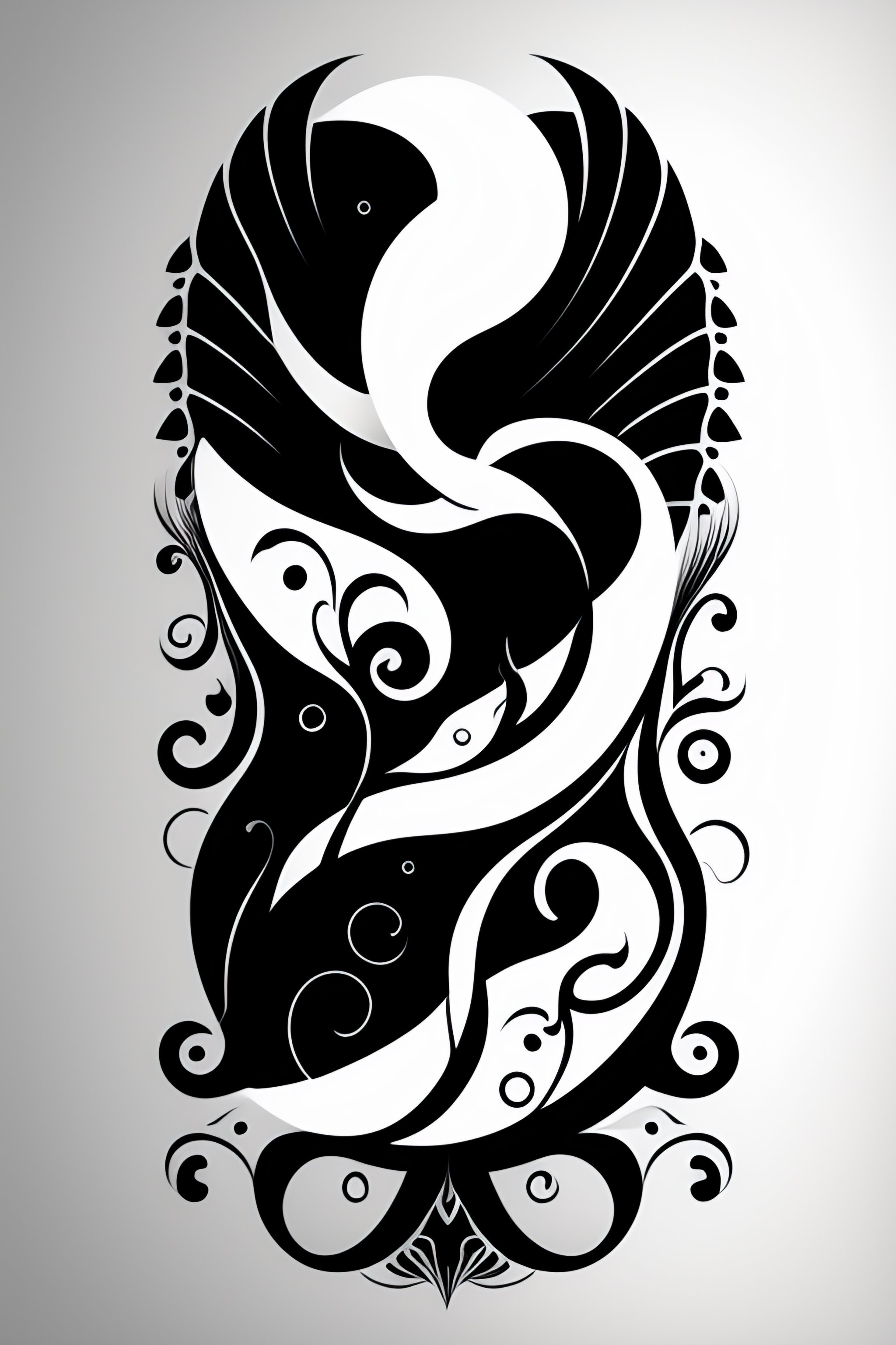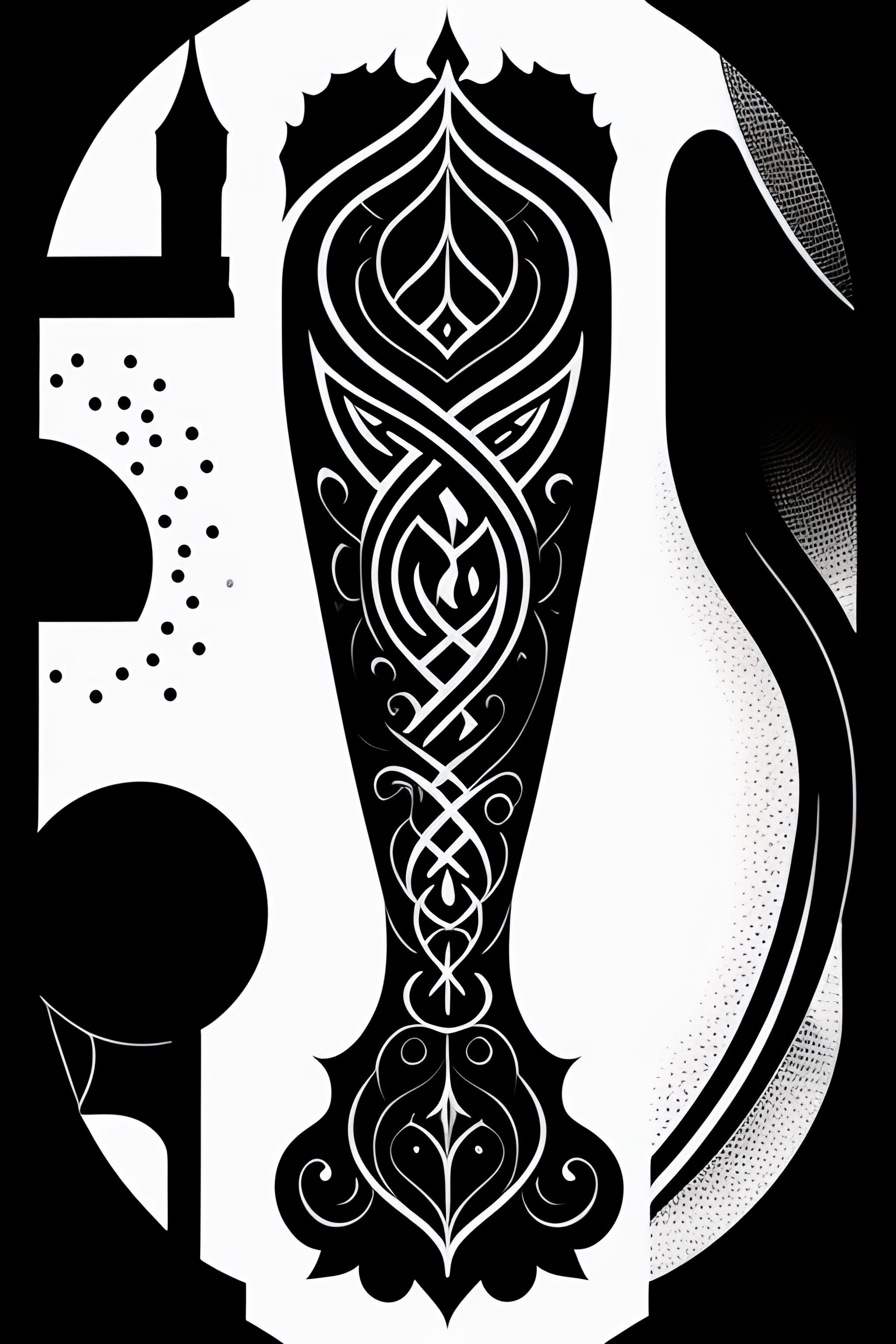 Abstract minimalist gothic black and white tattoo depicting trauma and depression