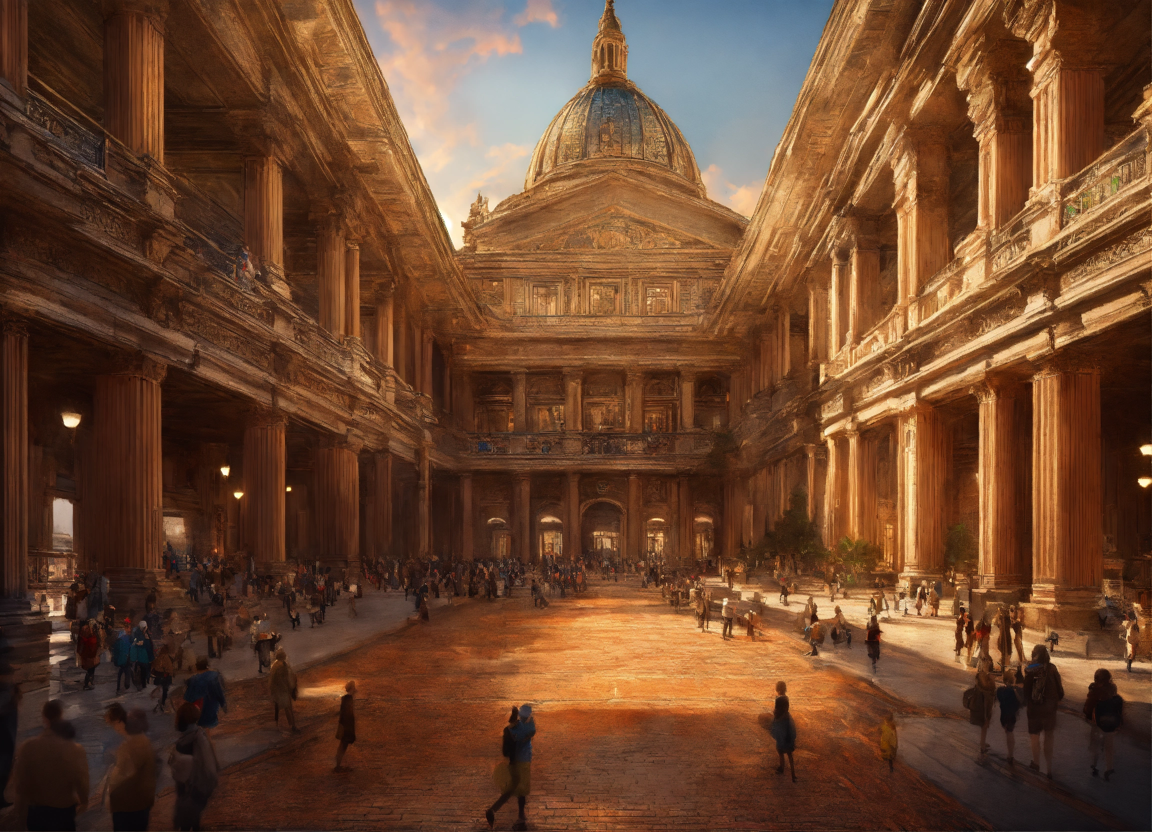 Many national, many faces together, man, women, children, architecture drawn photorealistic with correct anatomy, 8k, dynamic lighting, hyperdetailed, deep color