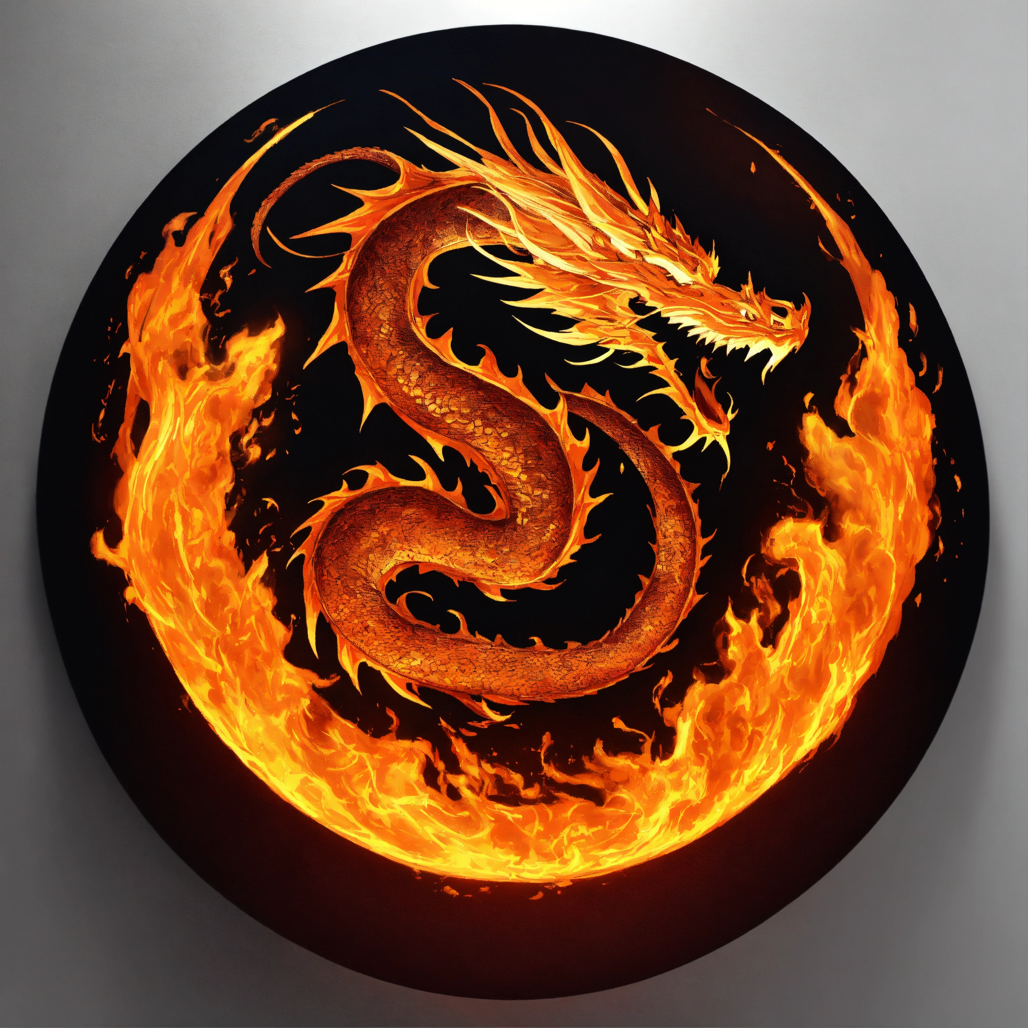 A beautifully intense dragon with orange (ff5500) features, brilliantly alive and aglow with rock-melting fire. the dragon is in the shape of the letter, "s." the background is alight with blazing fire. surrounding the dragon in the shape of the letter, "o" is a menacing circle of fire.