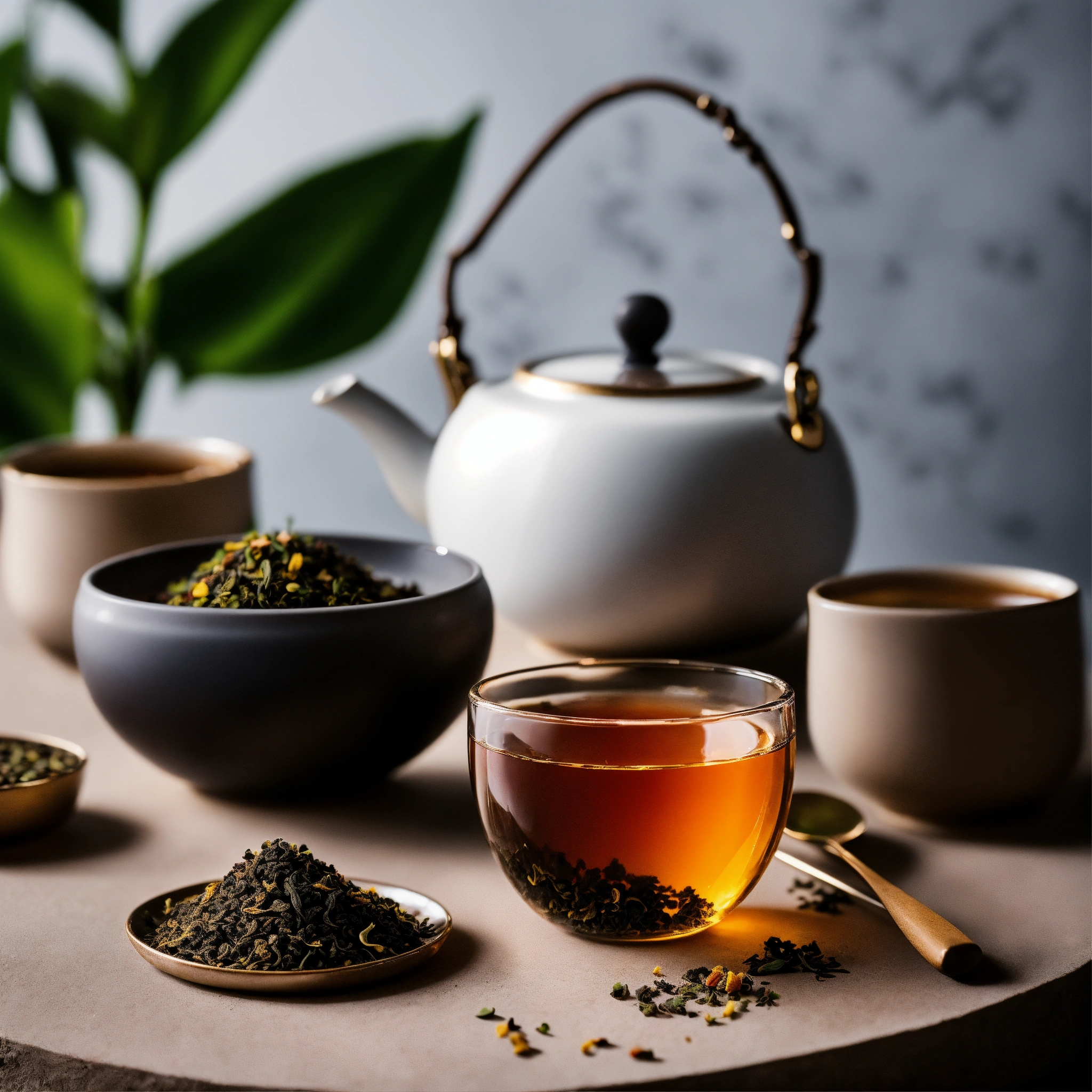 Background image for a tea product, minimalist and elegant, high-end branding, clean composition, professional product photography, white background, balanced lighting, macro shot, shallow depth of field, leica q2