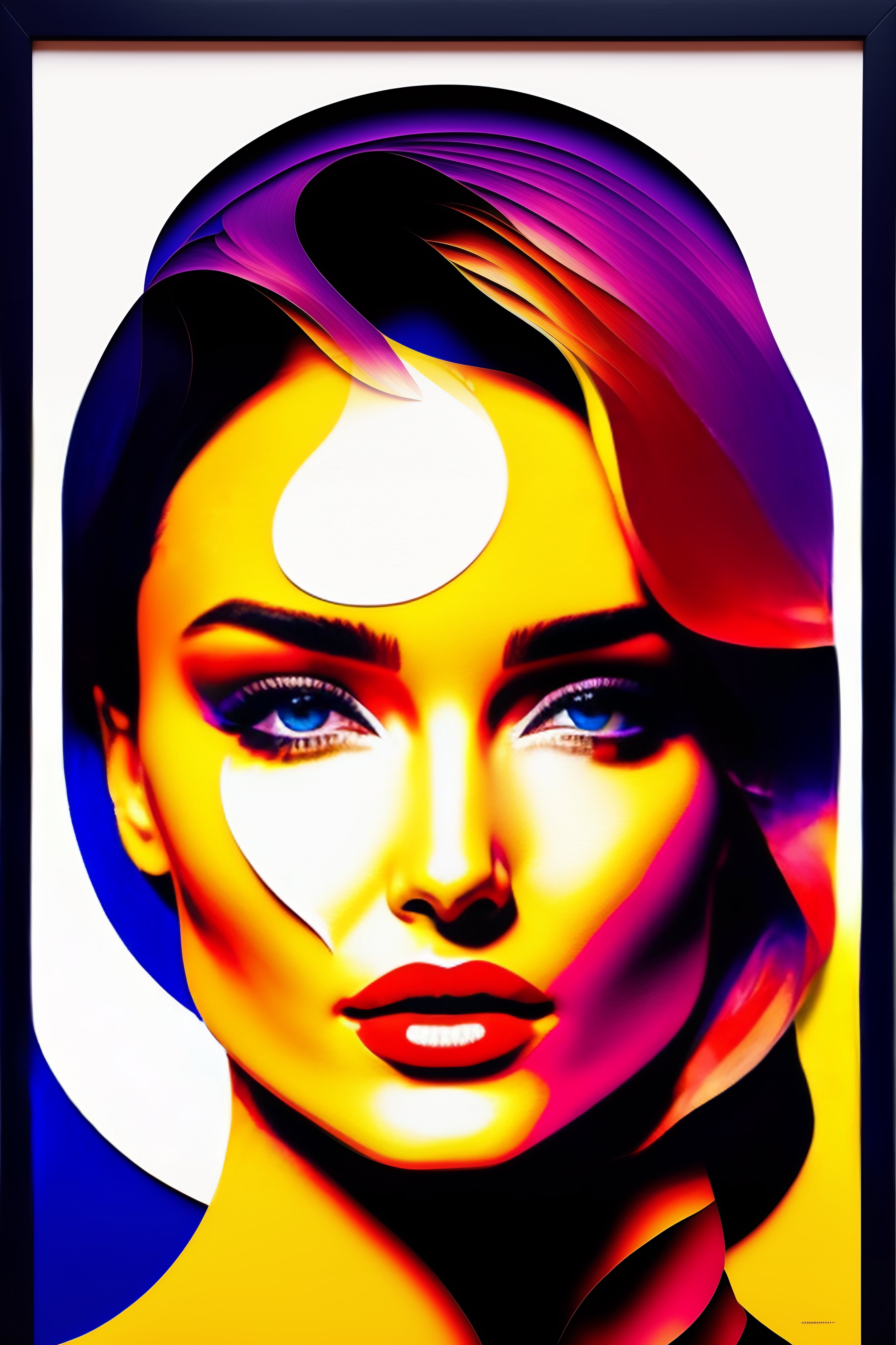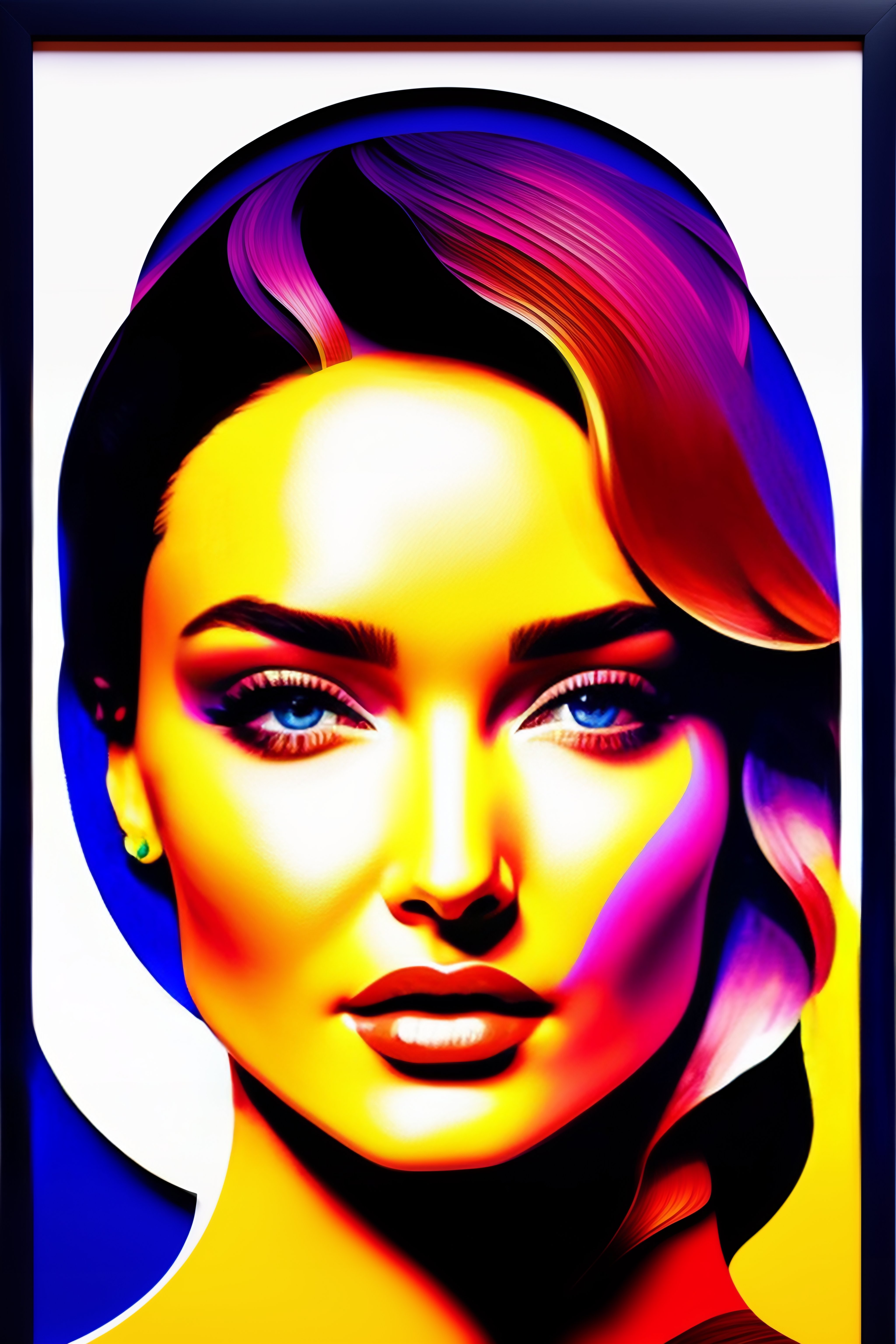 Portrait of miranda kerr, high relief, cut paper portrait 3d highly stylized in a box german expressionism pop art colors