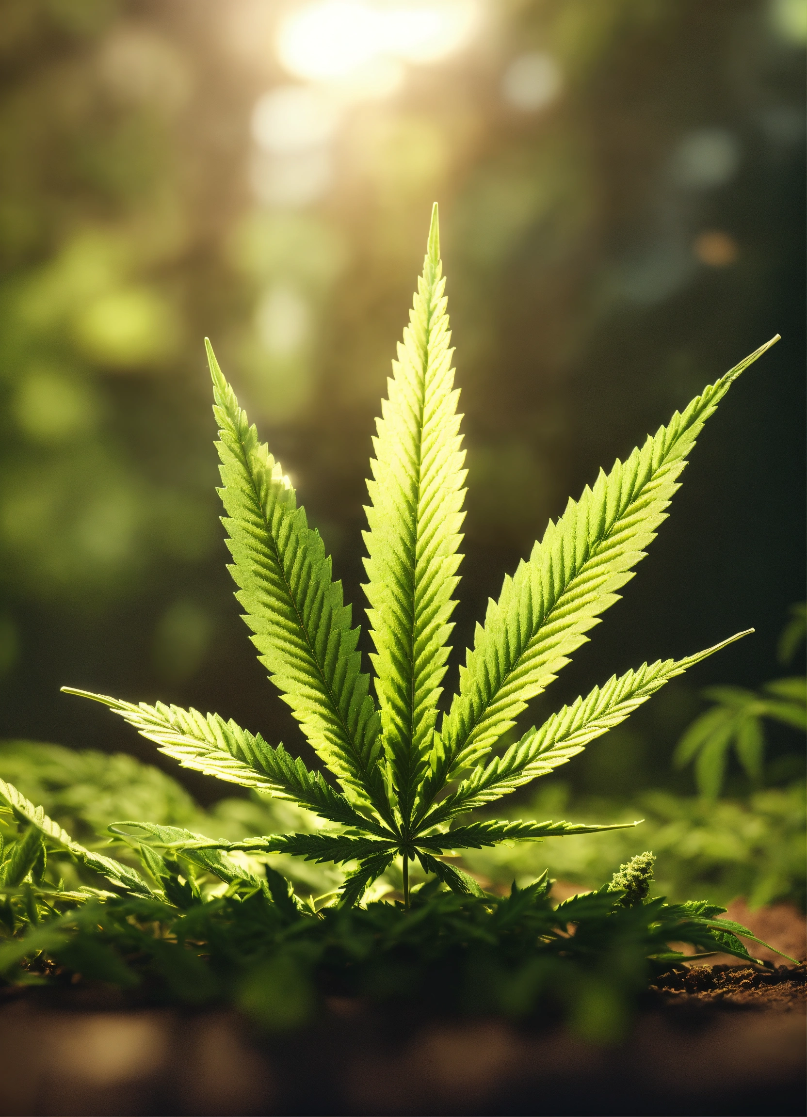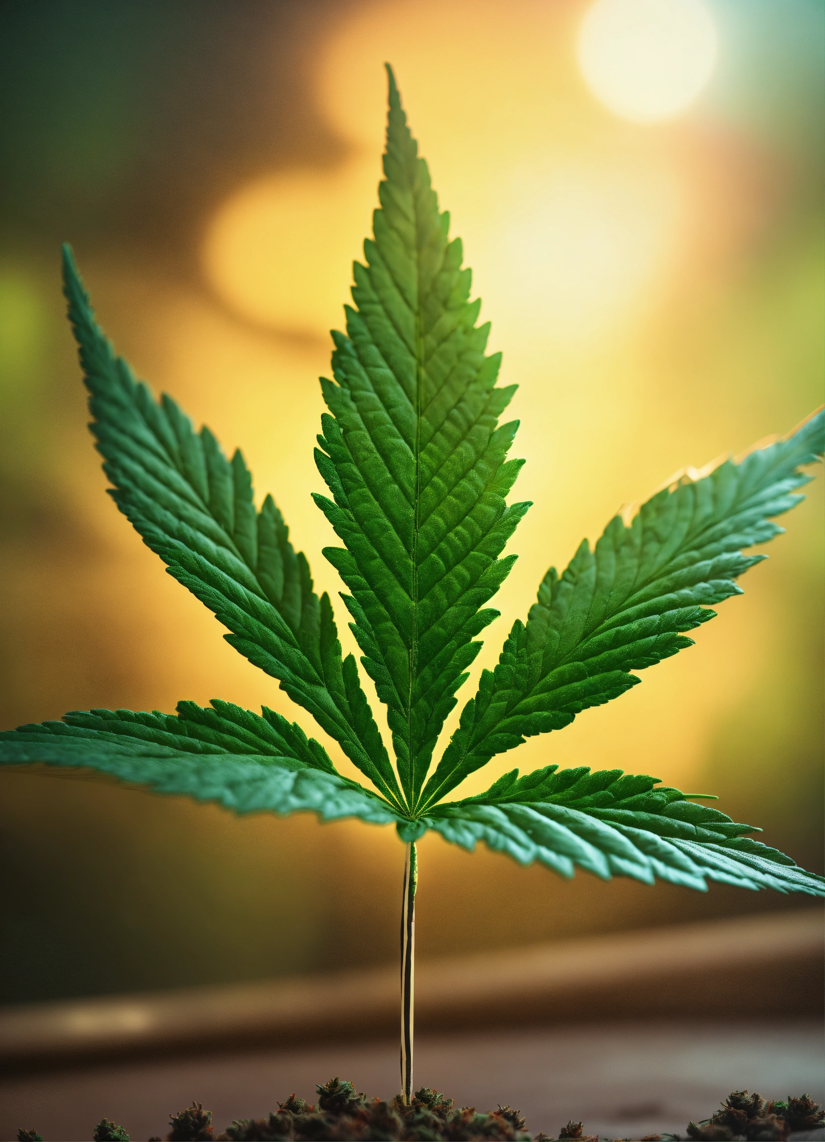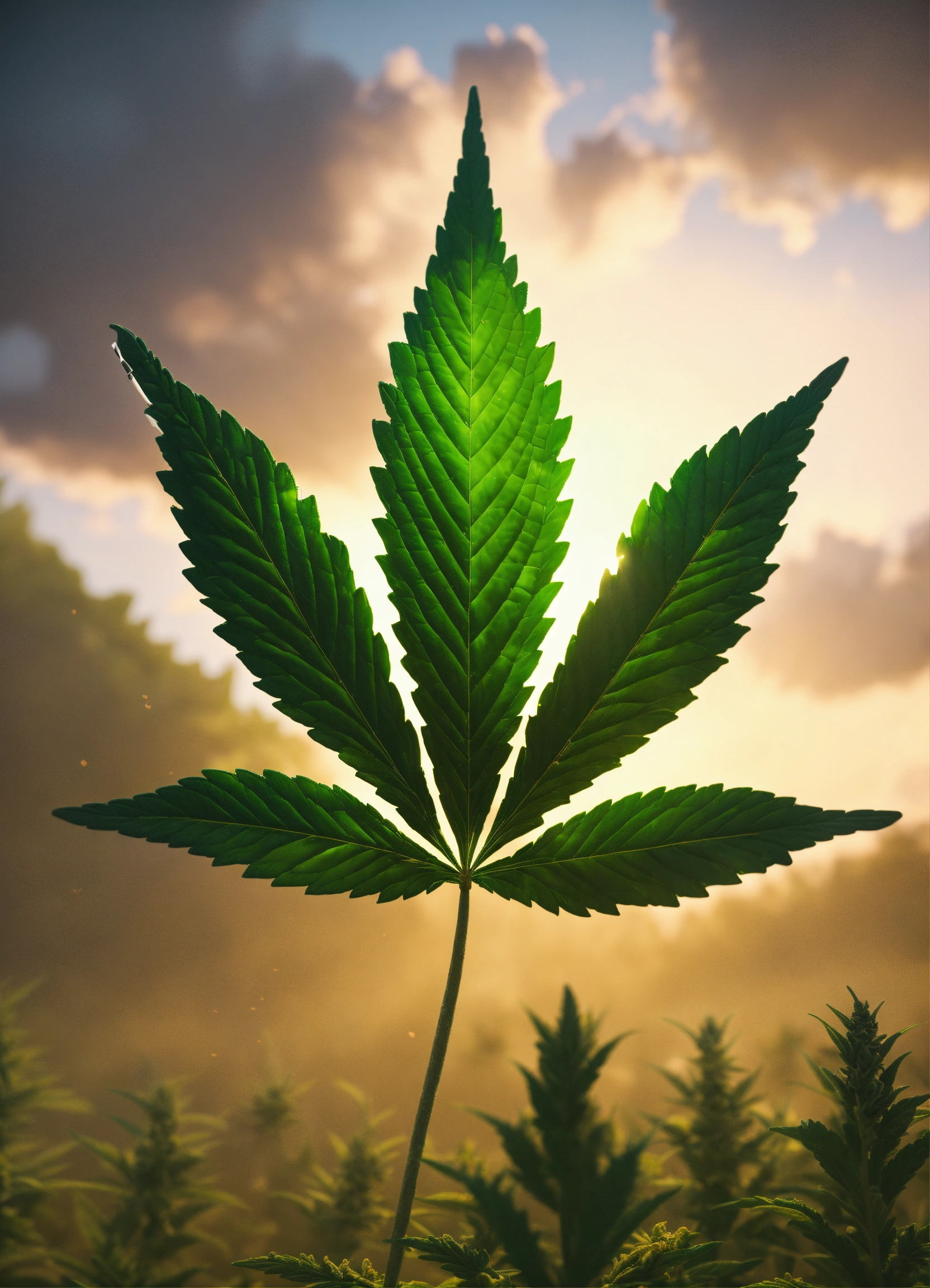 A big marijuana leaf stylized like a hand, holds a marijuana cigarette, unreal engine high definition 8k cinematic award winning