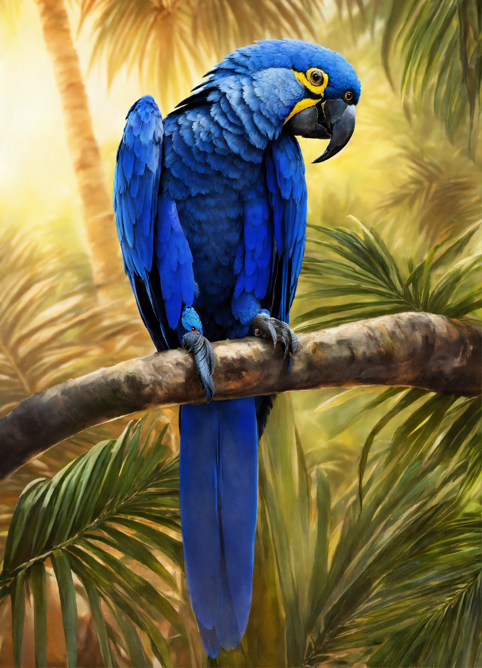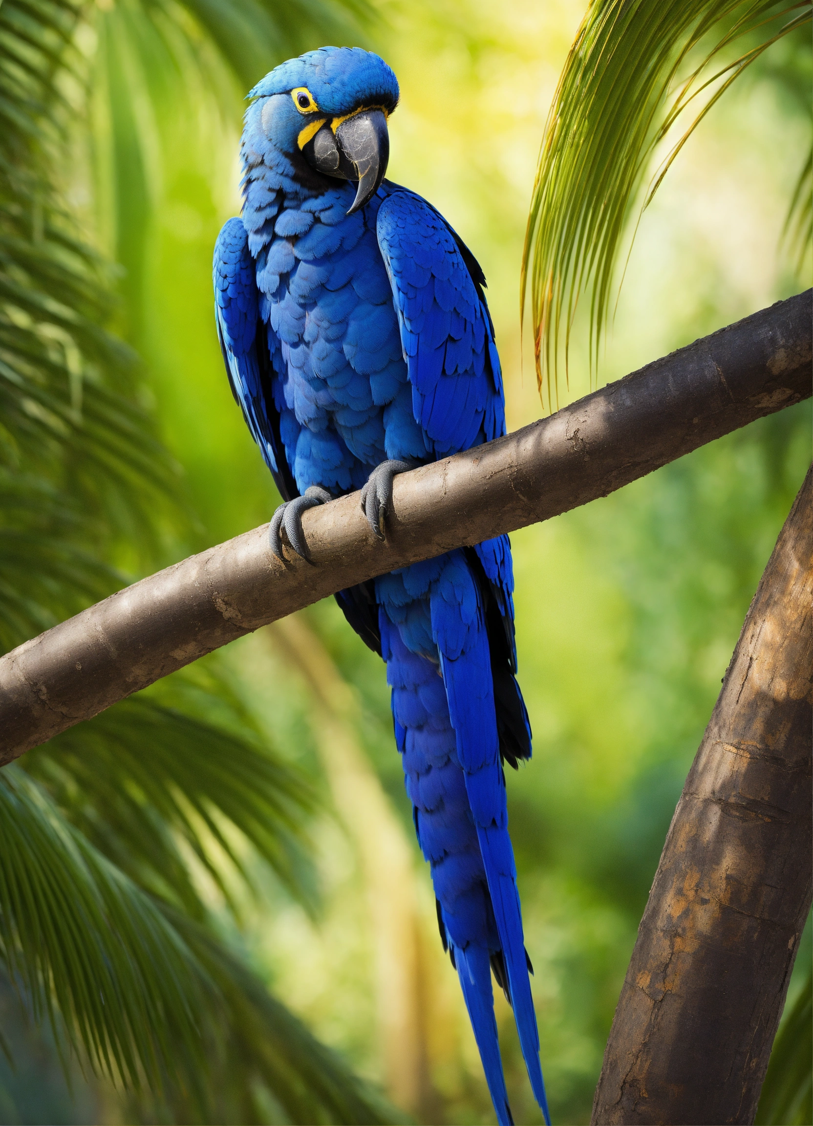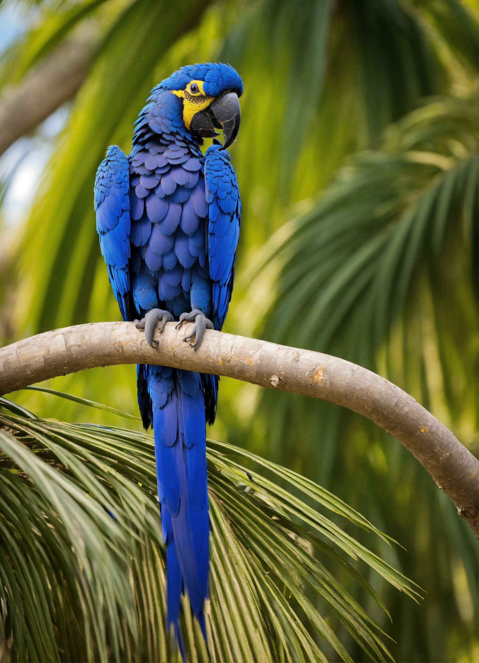 Hyacinth macaw on a palm tree in the nature habitat