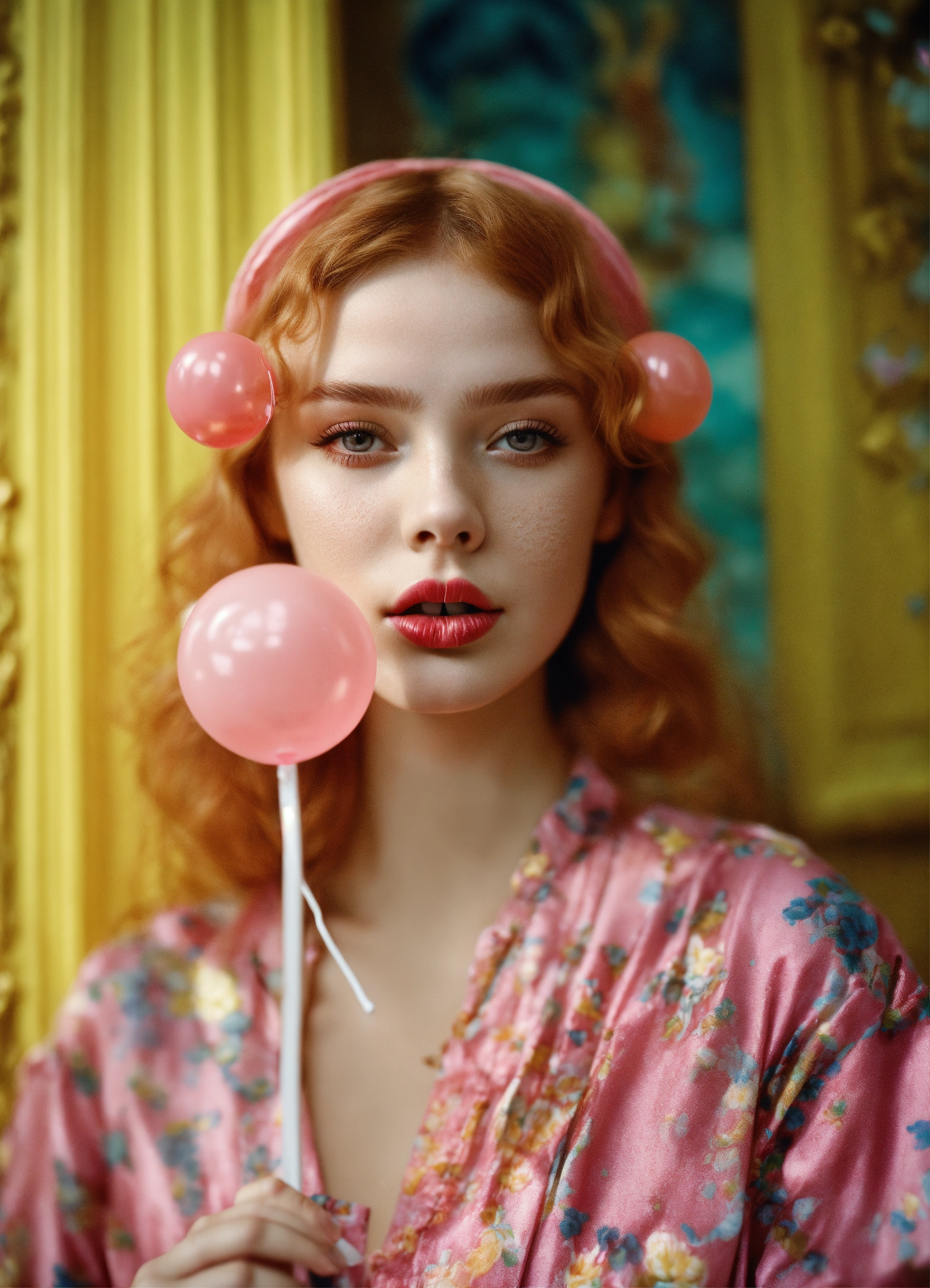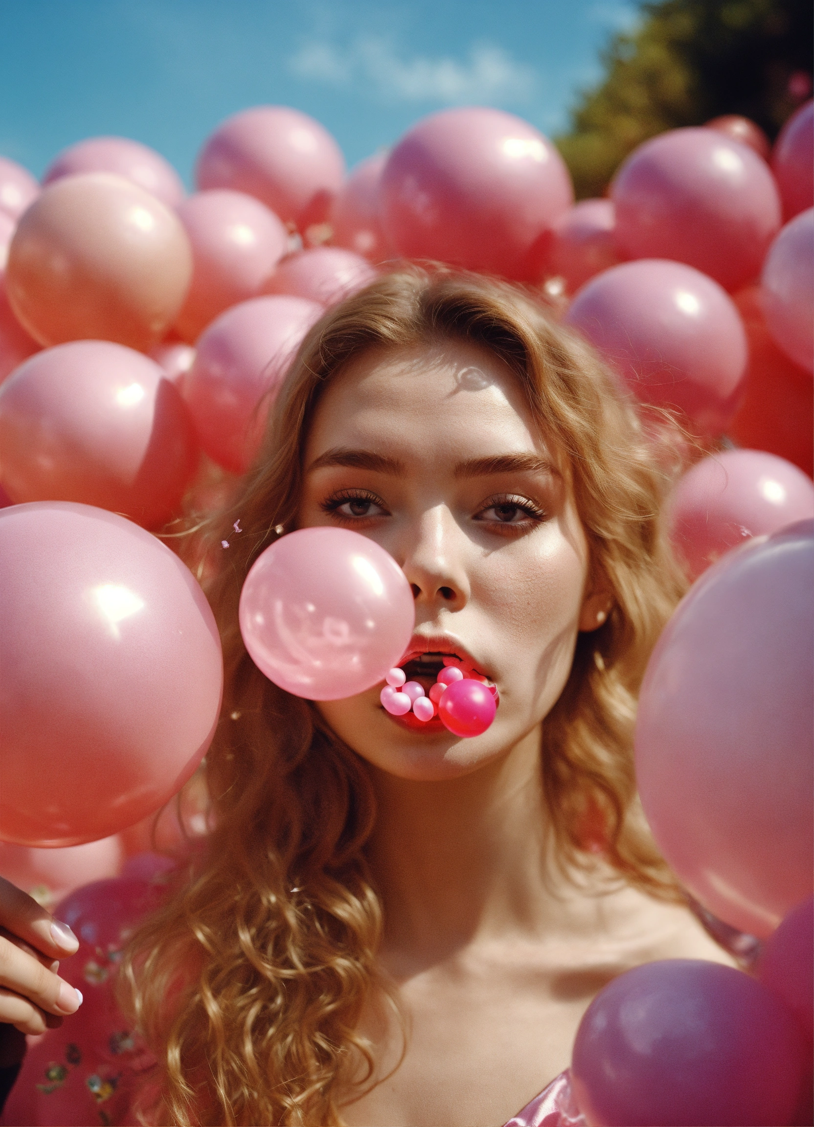Beautiful girl blowing bubblegum by marta bevacqua and david lachapelle