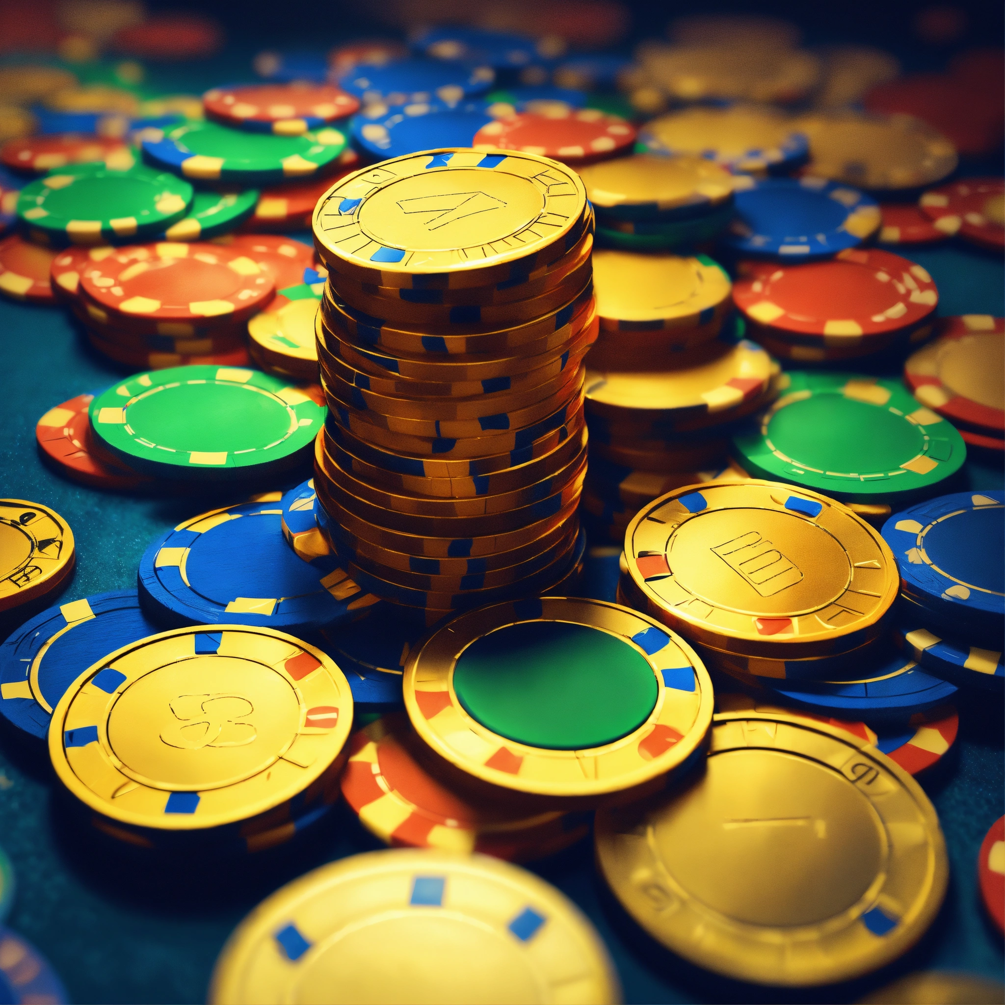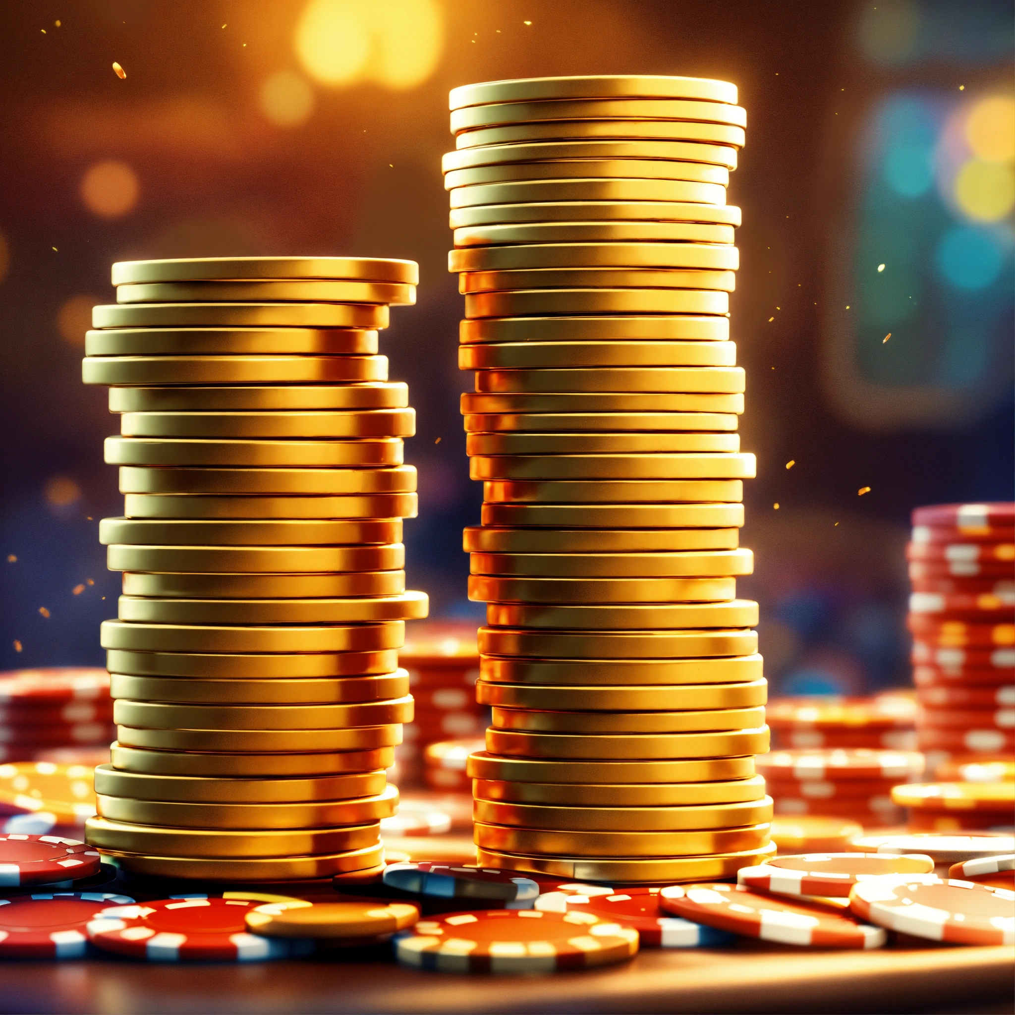 Stacks of golden poker chips on the table (pixar art style)++ highly detailed digital painting, art stations, concept art, game art, 3d, cartoon, colorful, magical, mysterious, minimalism