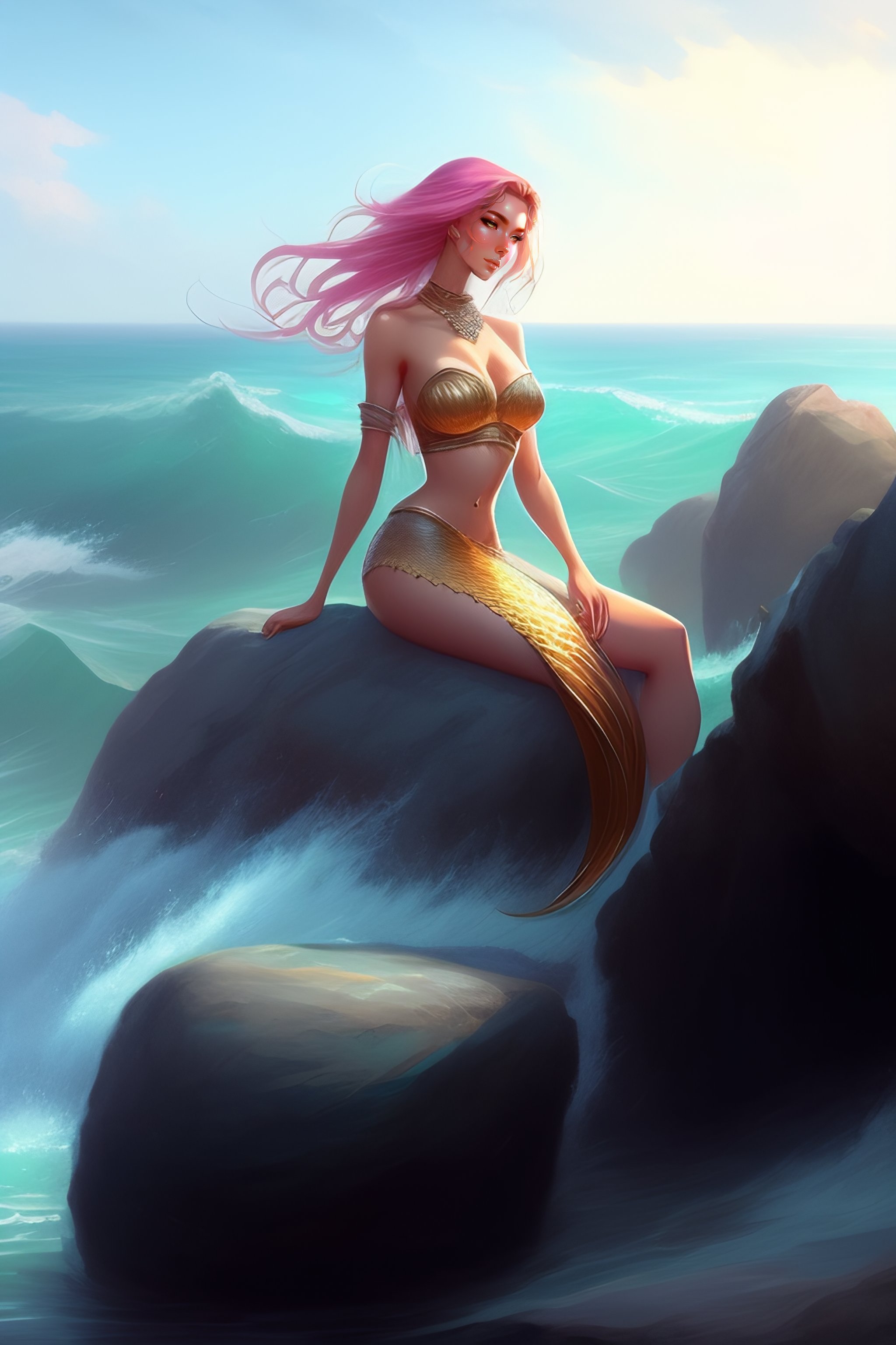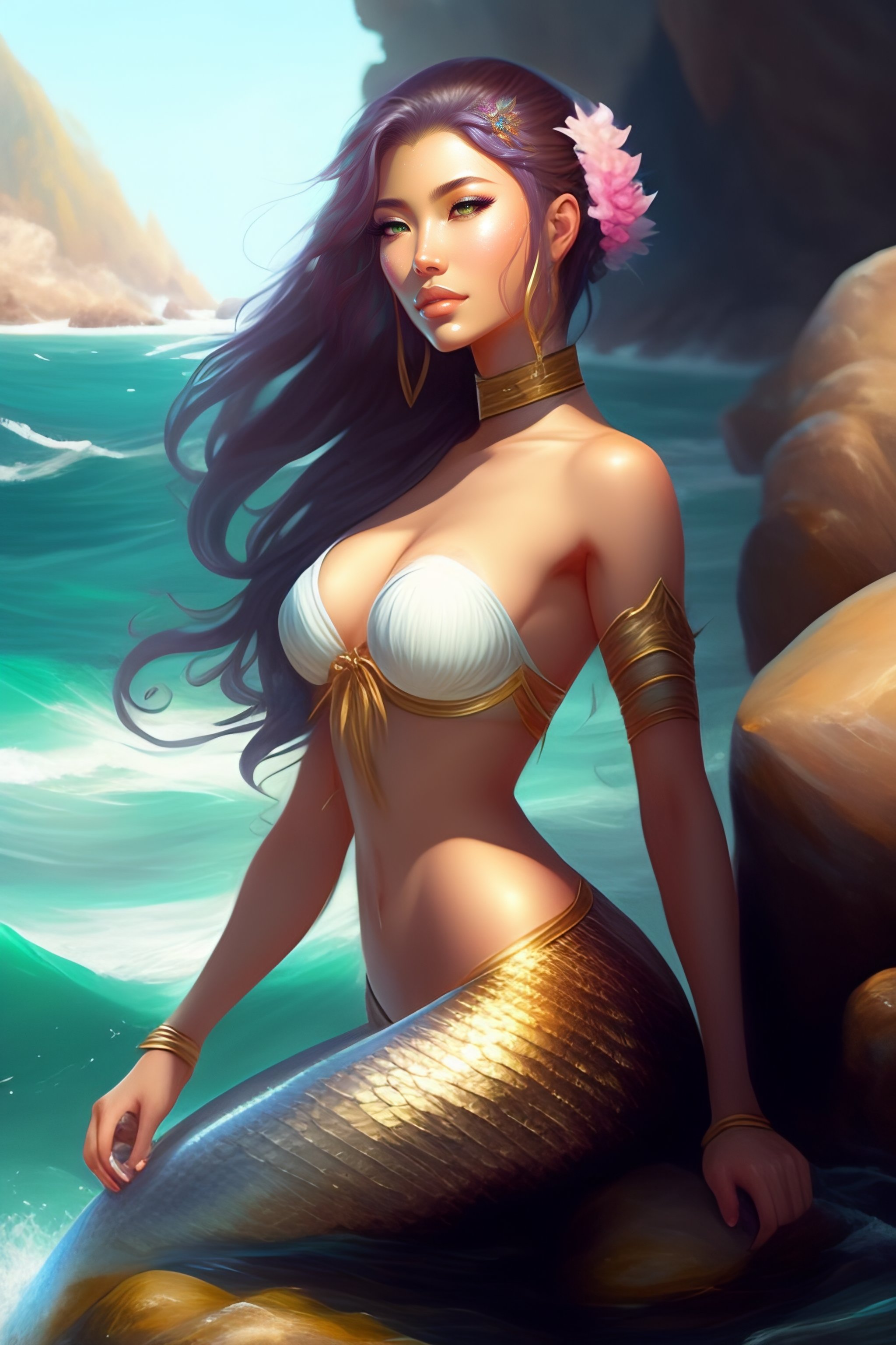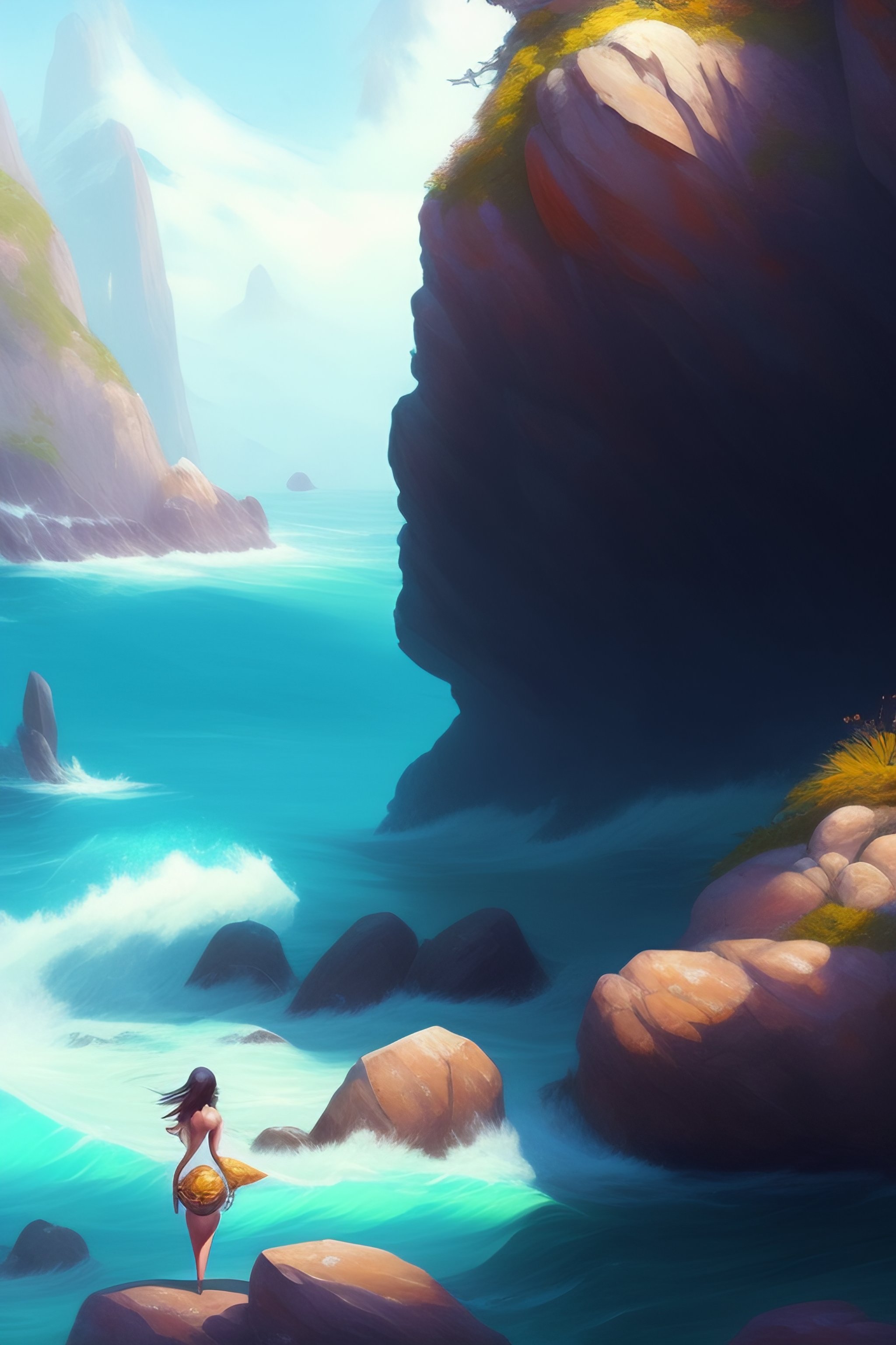 A mermaid on a rock at the sea, concept art by ross tran, featured on deviantart, fantasy art, 2d game art, artstation hd, anime
