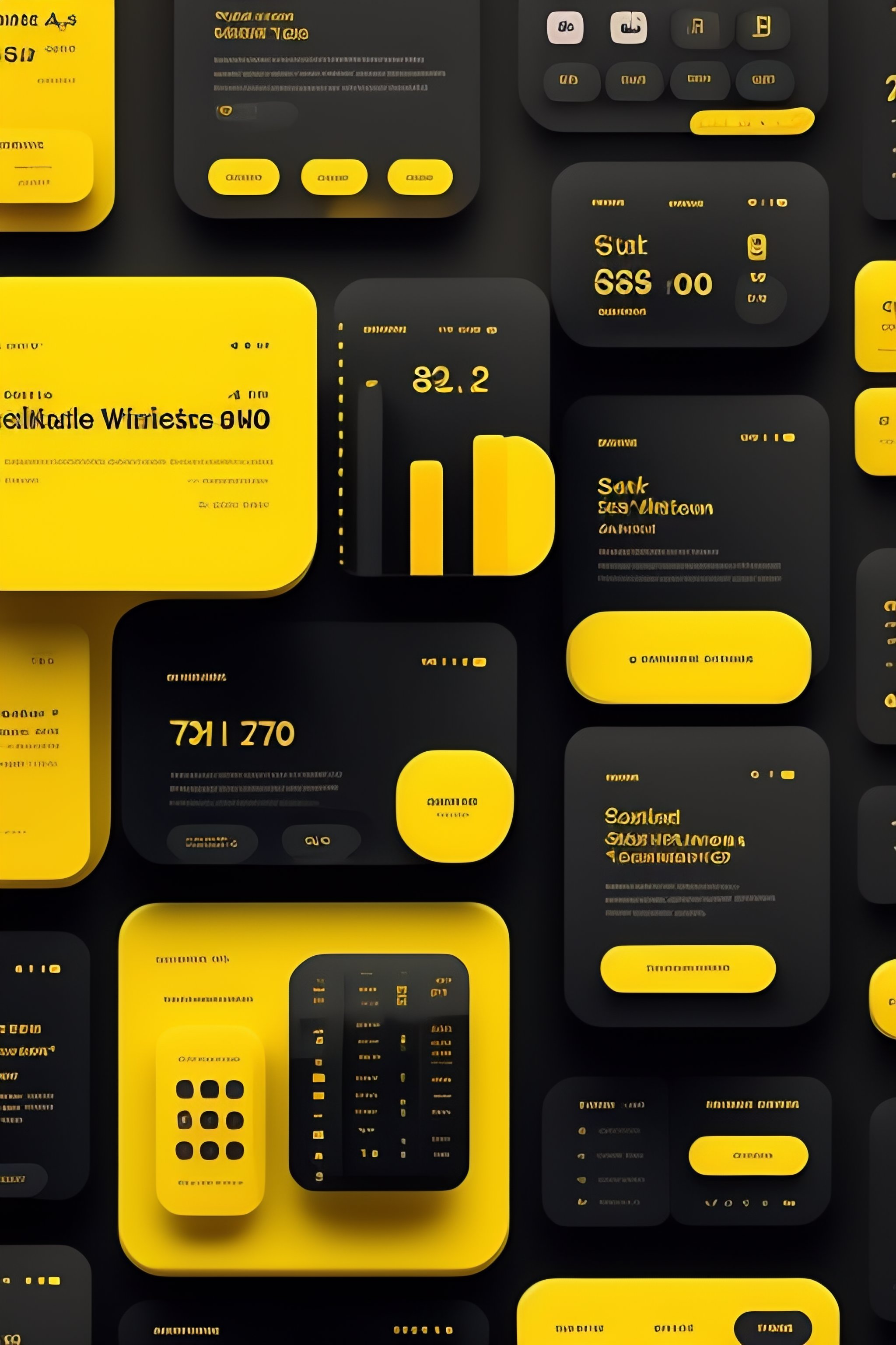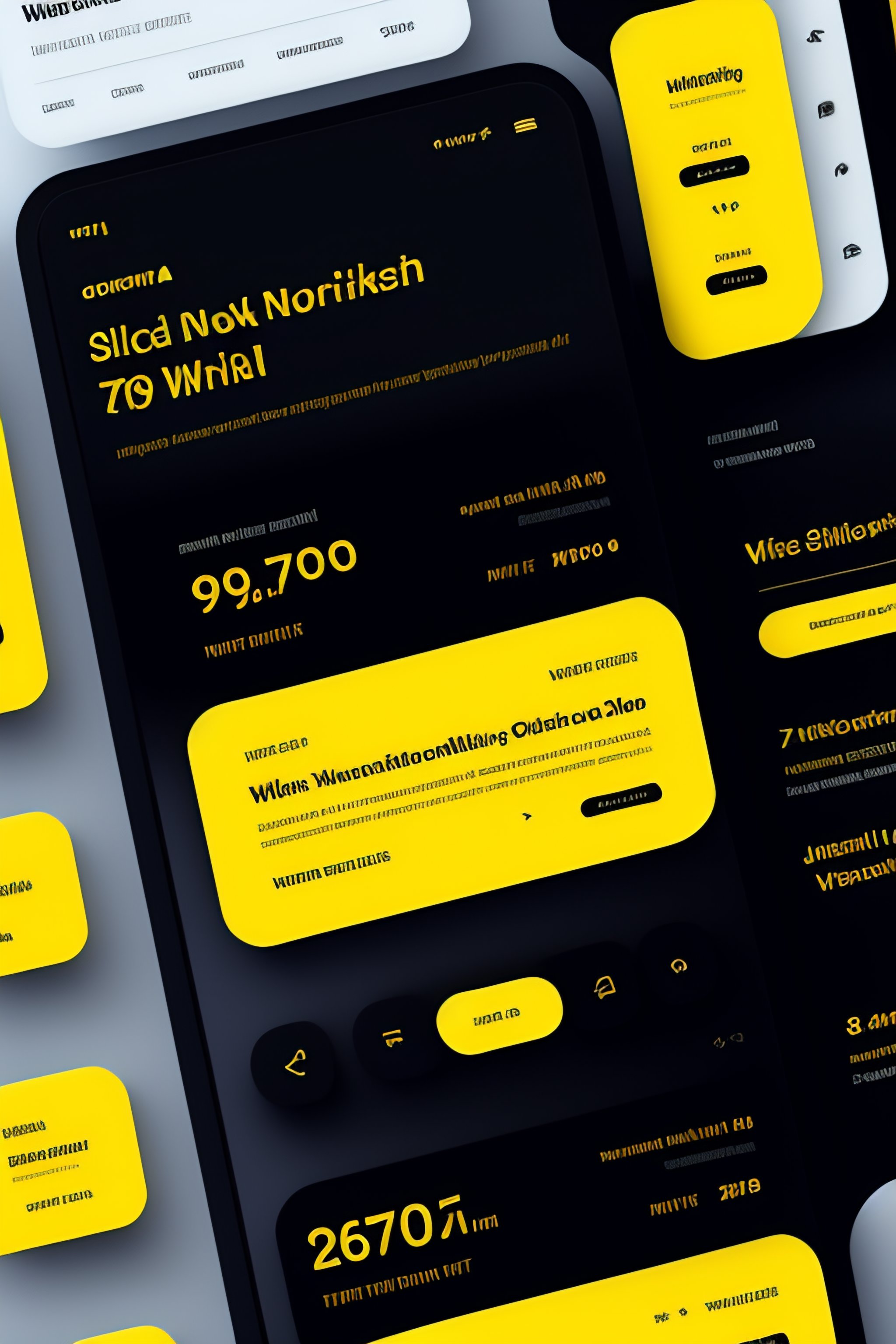 Slick, layout, ui/ux design, ux research, mobile ui ux, wireframe background black, yellow accent, dashboard bold --stylish 700