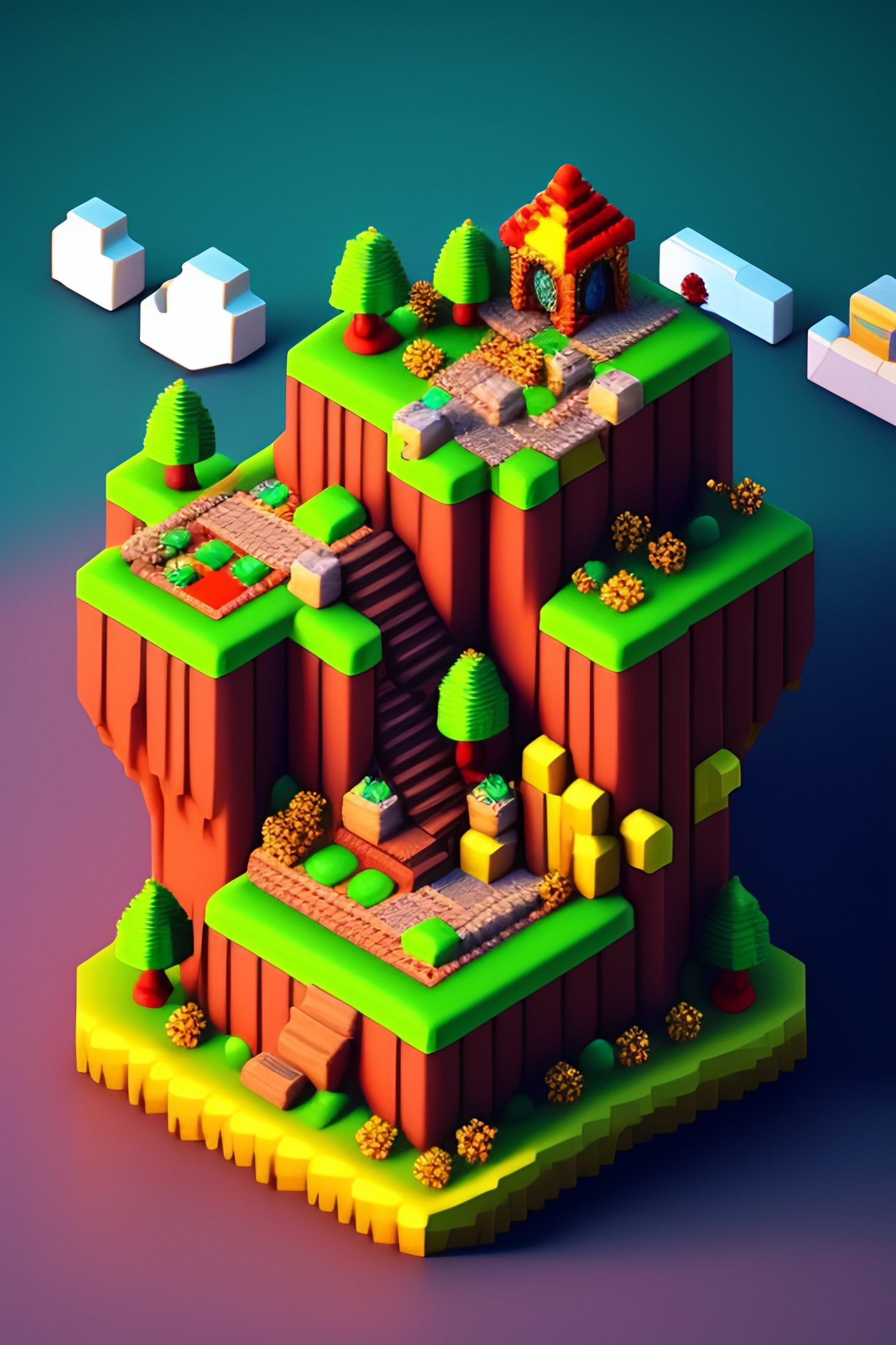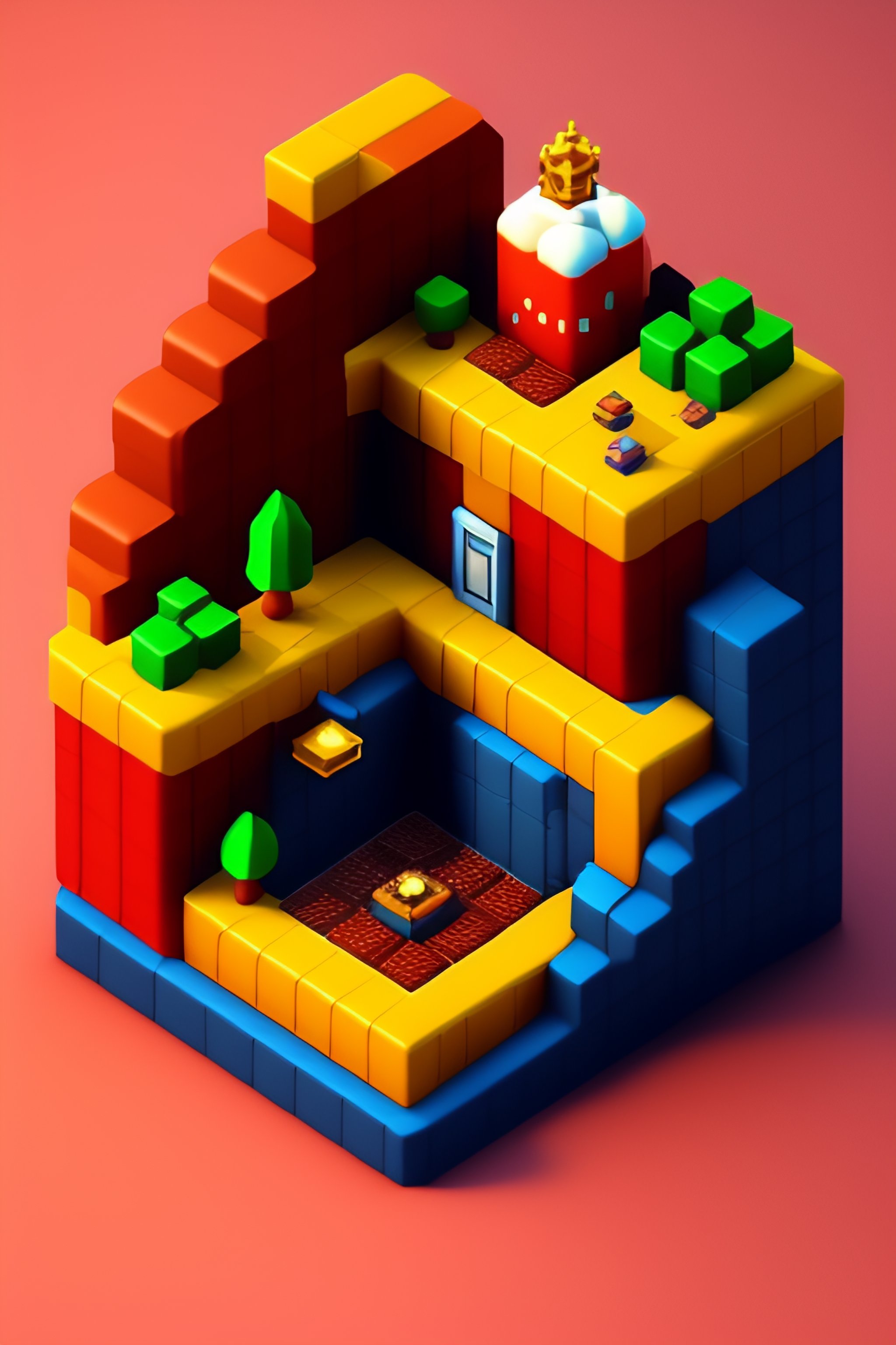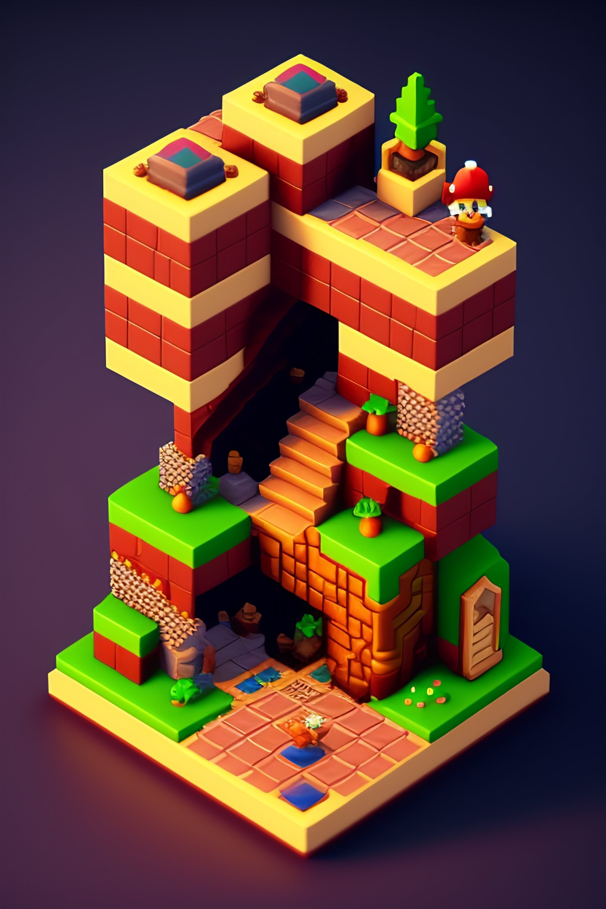 Detailed isometric super mario bros level