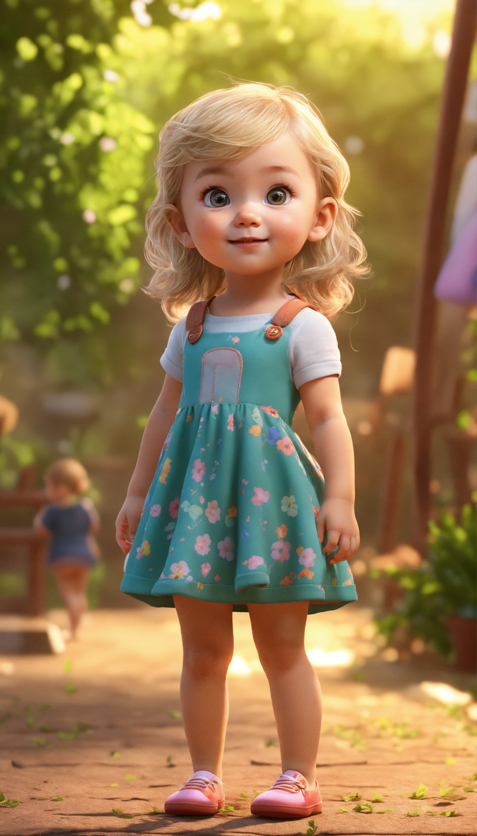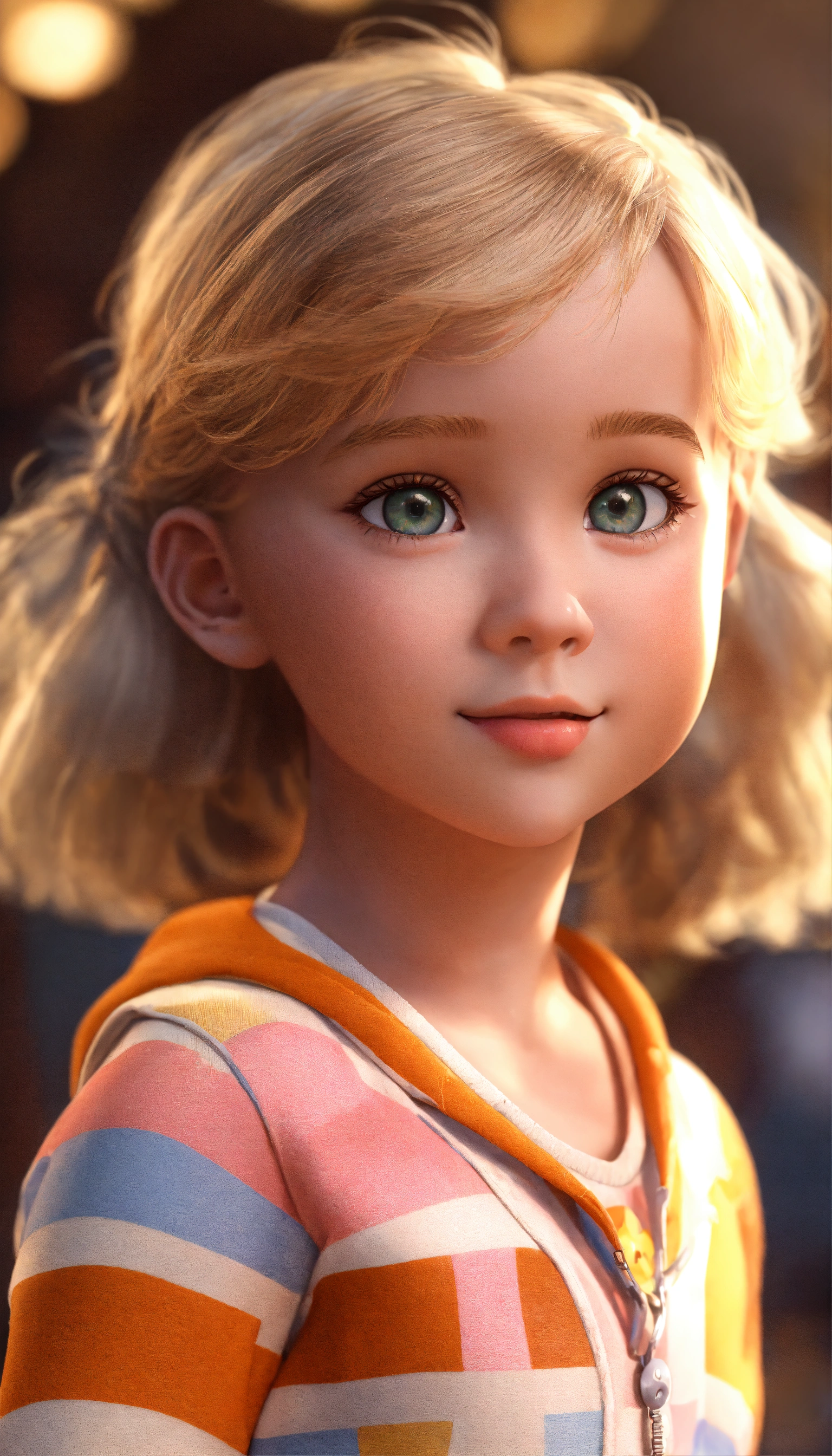 A very beautiful young baby girl old, full body image of a cute little girl realistic, vivid colors octane render trending on artstation, beautiful 3 d rendering, pixar cute, blond girl, andrew dickson, realistic, 3d, cartoon style, well shaded, smooth, pixar.