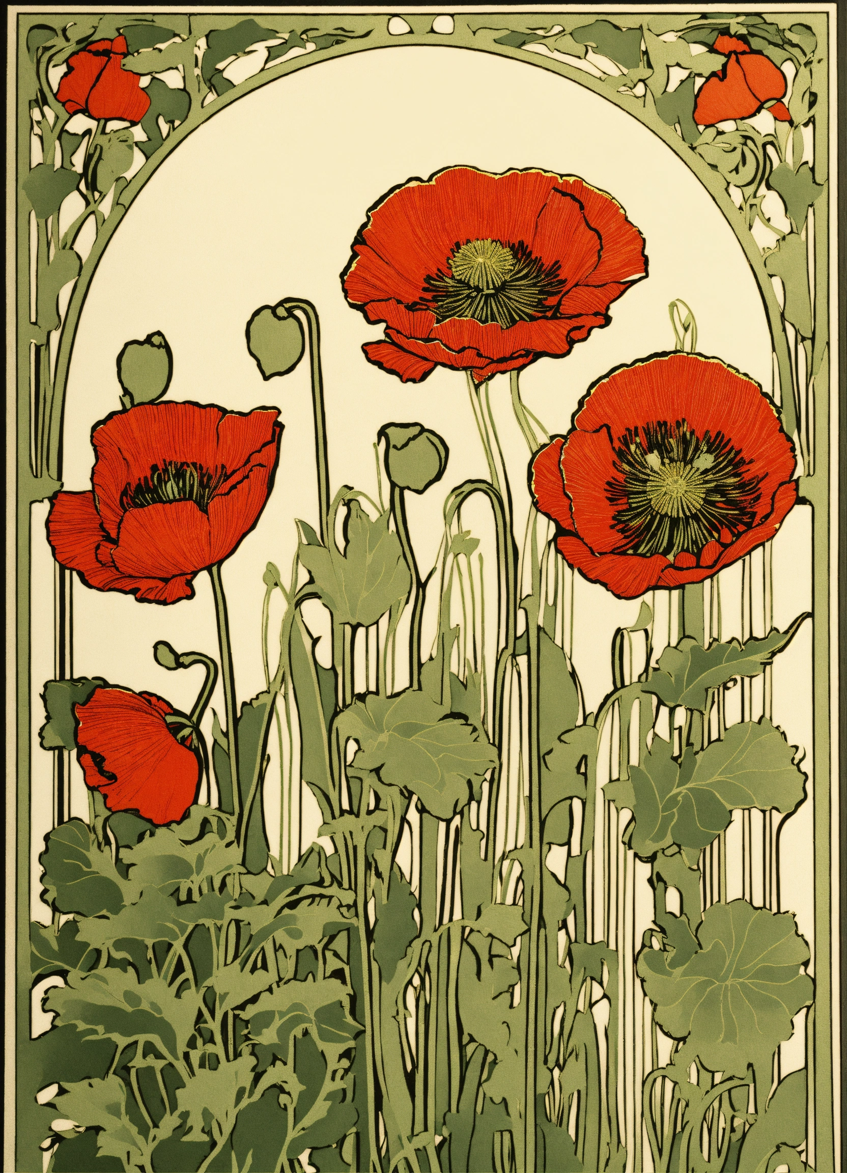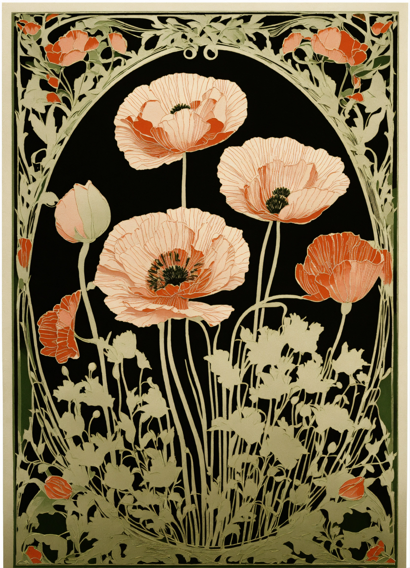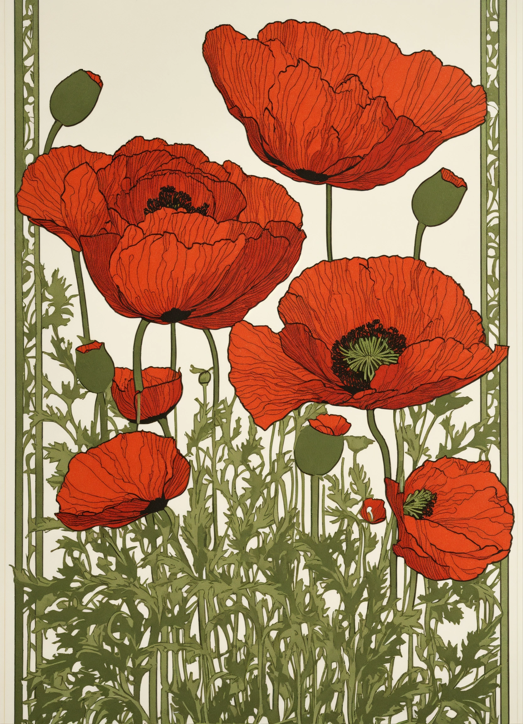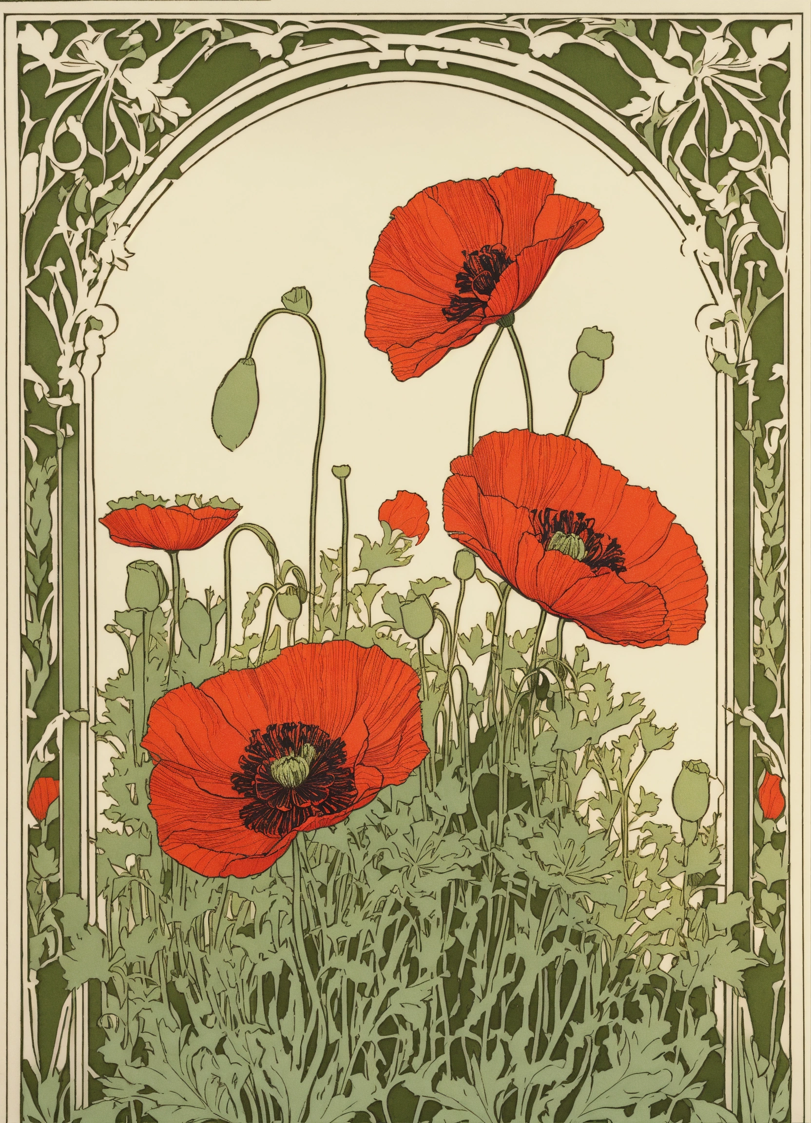 Poppies, excellent, vintage art nouveau style detailed paper cutting, 8k, white background, uncropped image.