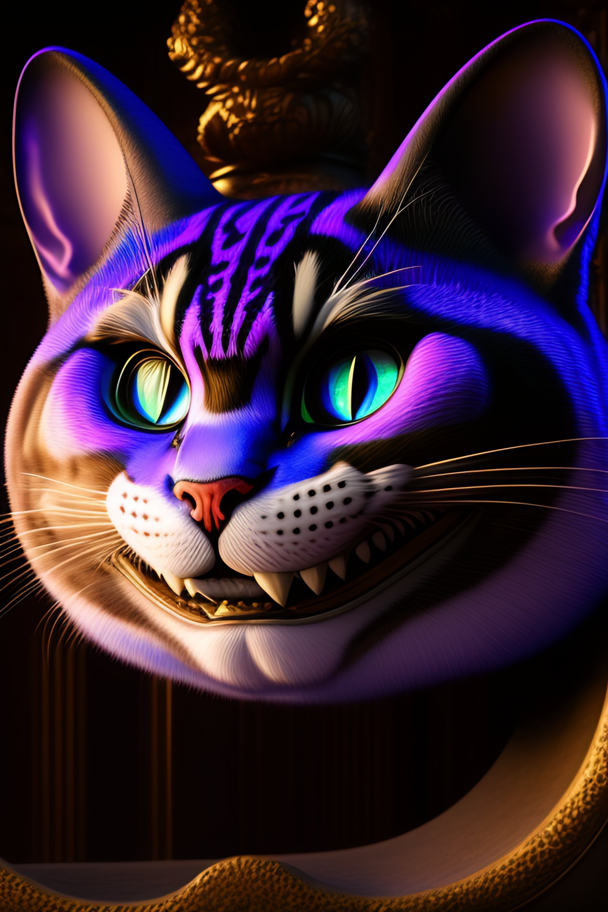 Portrait of the cheshire cat (from alice in wonderland) - a large cat face with a grin