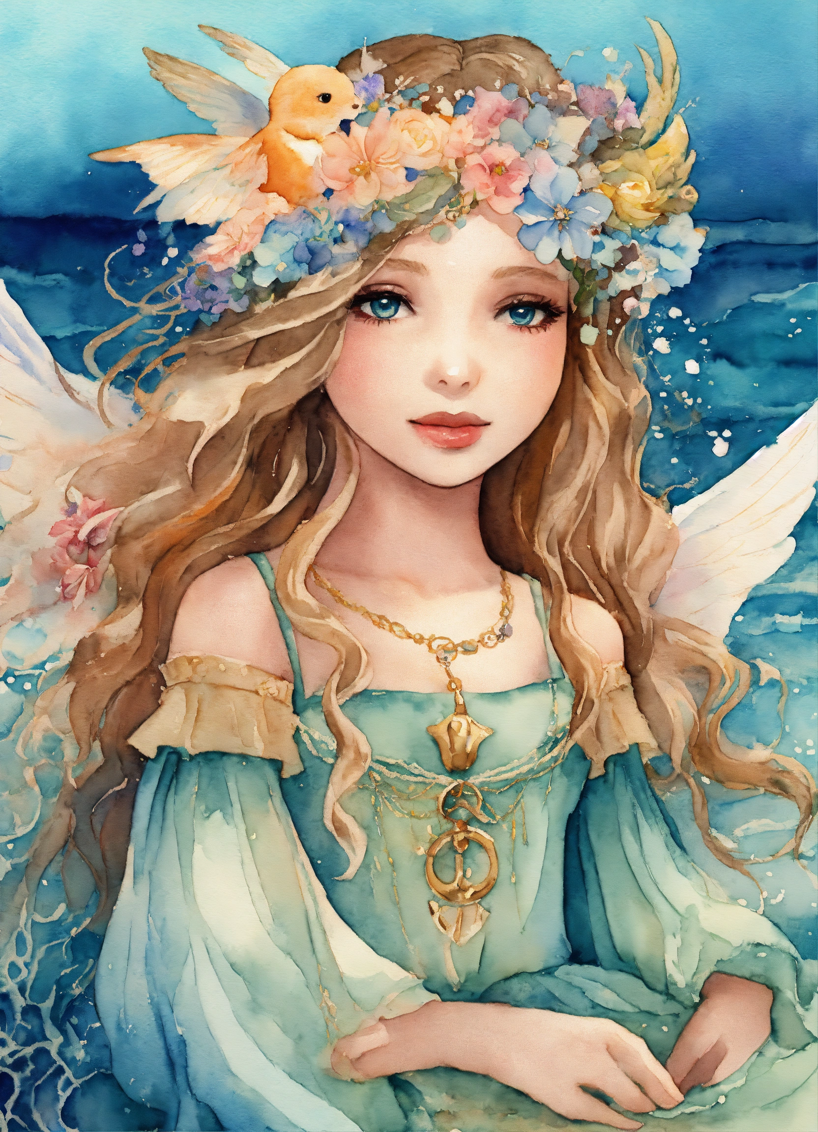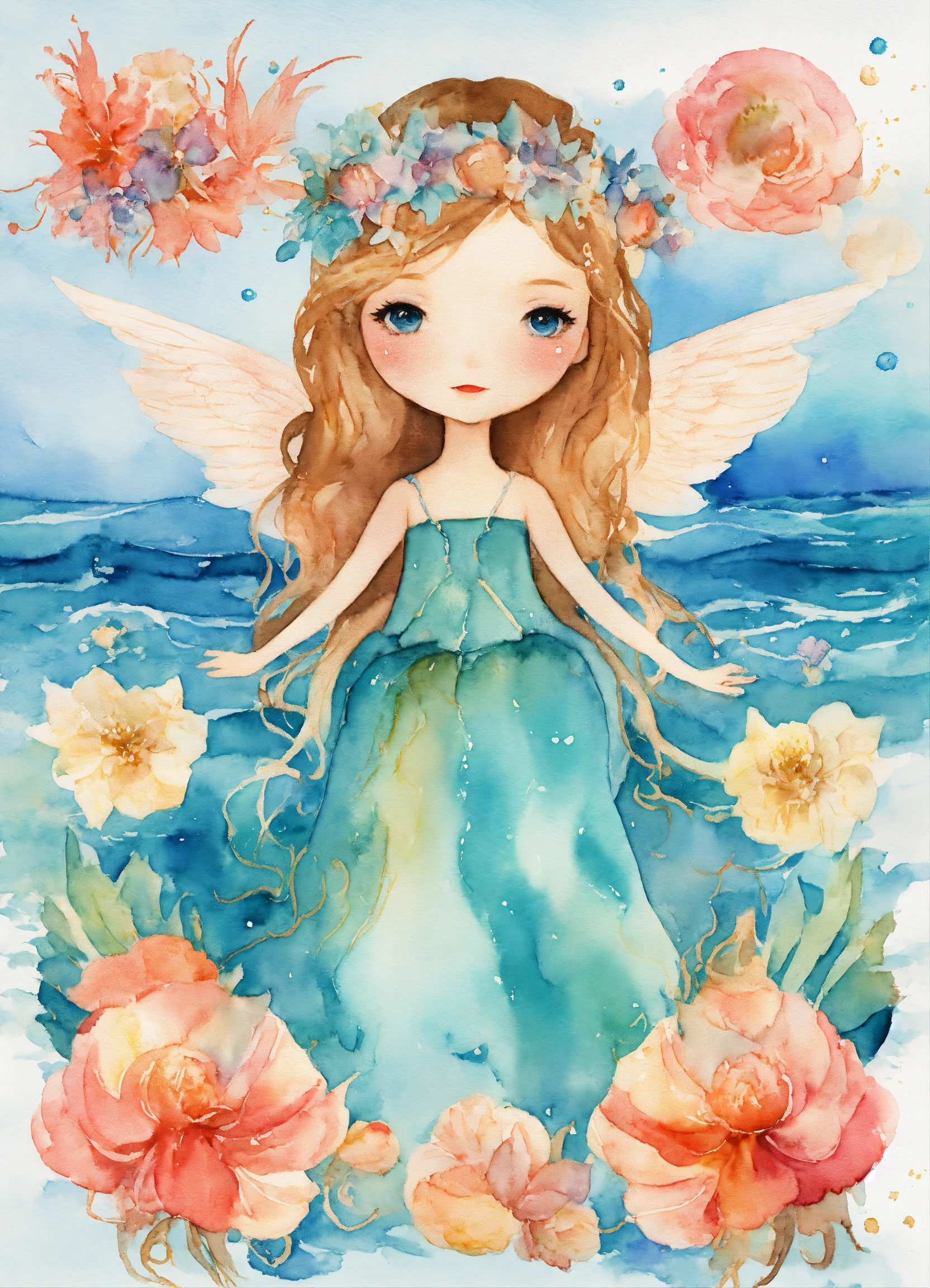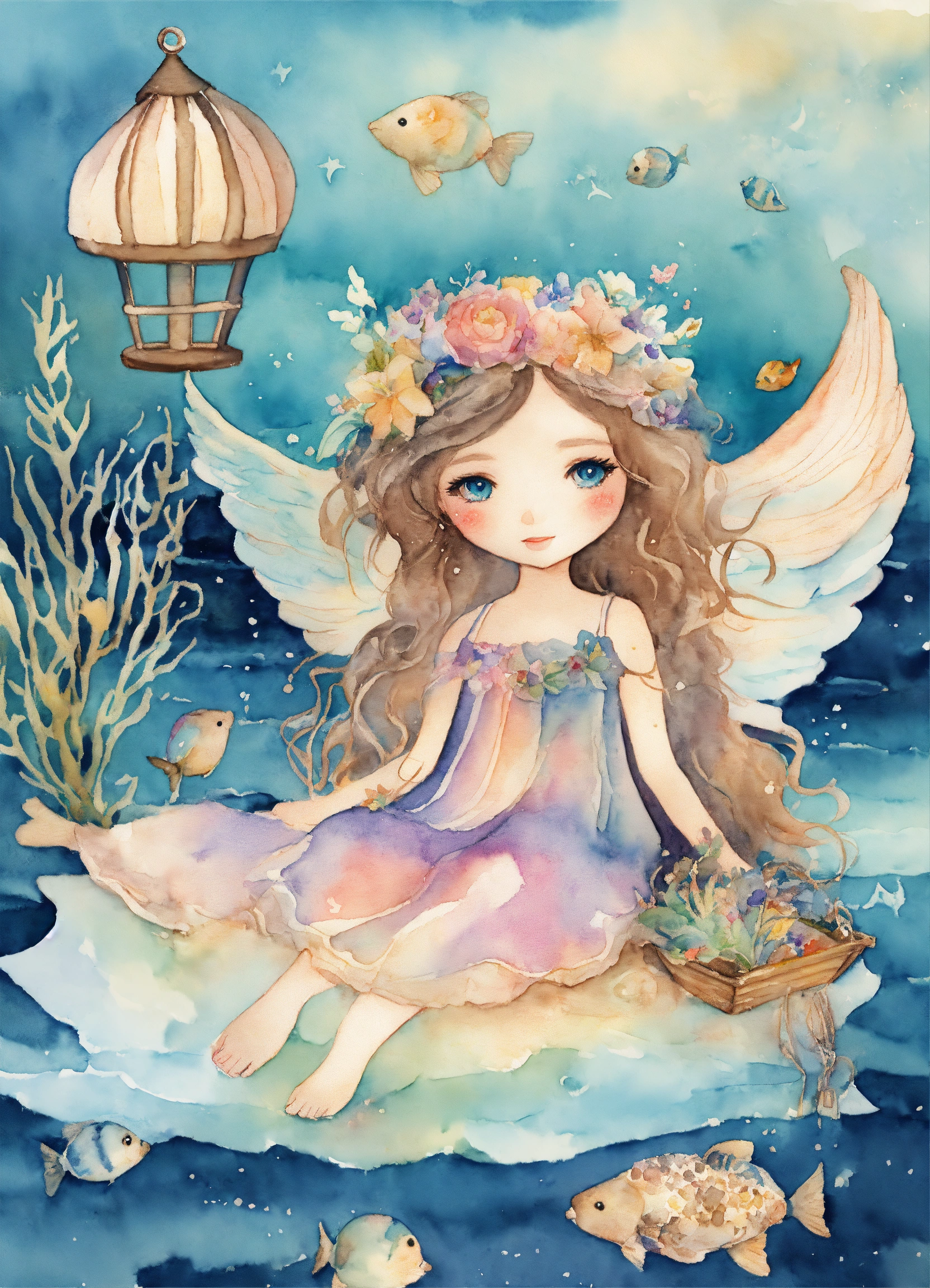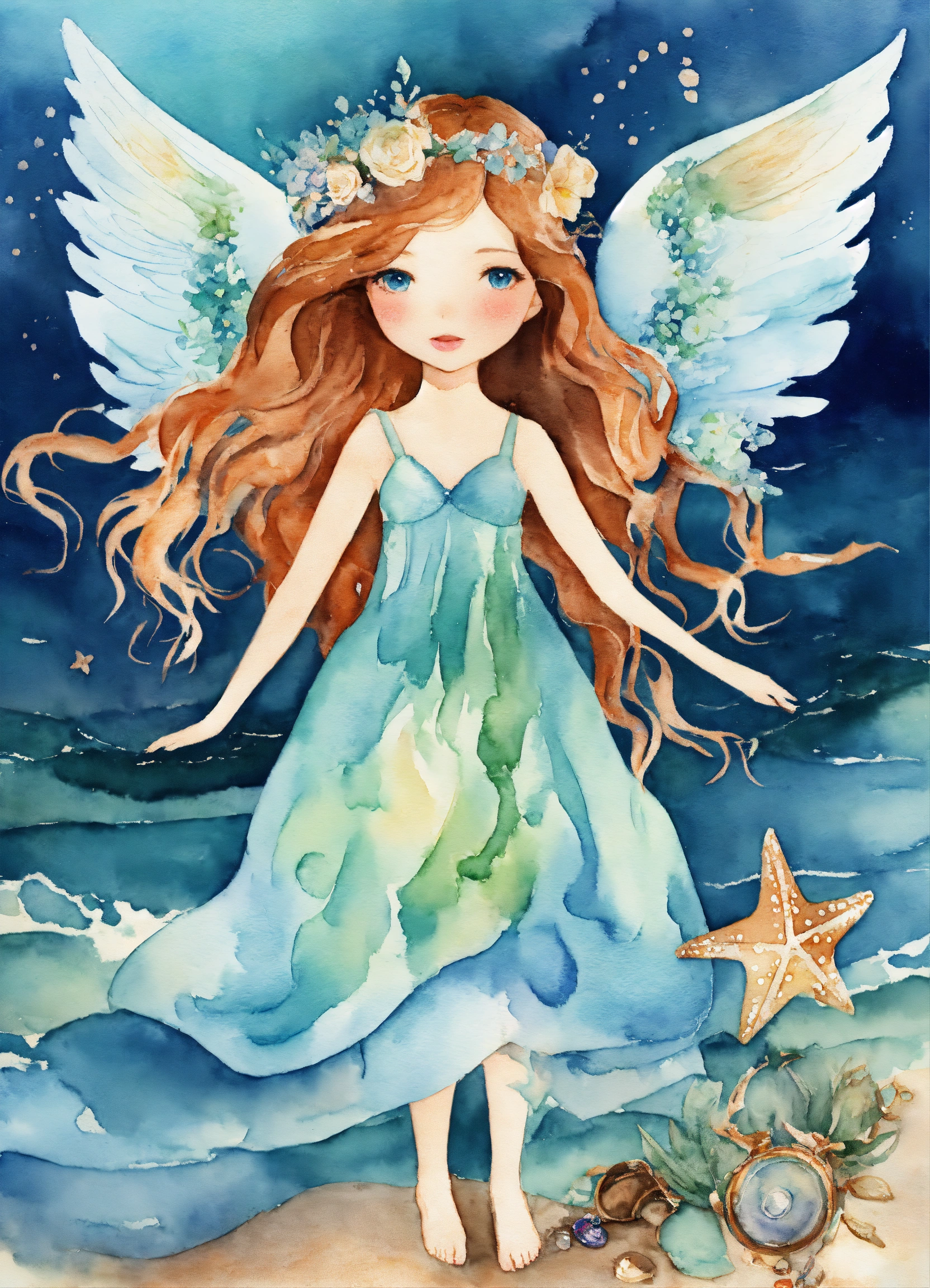 Whimsical sea ocean angel girl, watercolor clipart, fairytale clipart png, fantasy nautical, fantasy art clipart, paper craft - junk journal, scrapbooking
