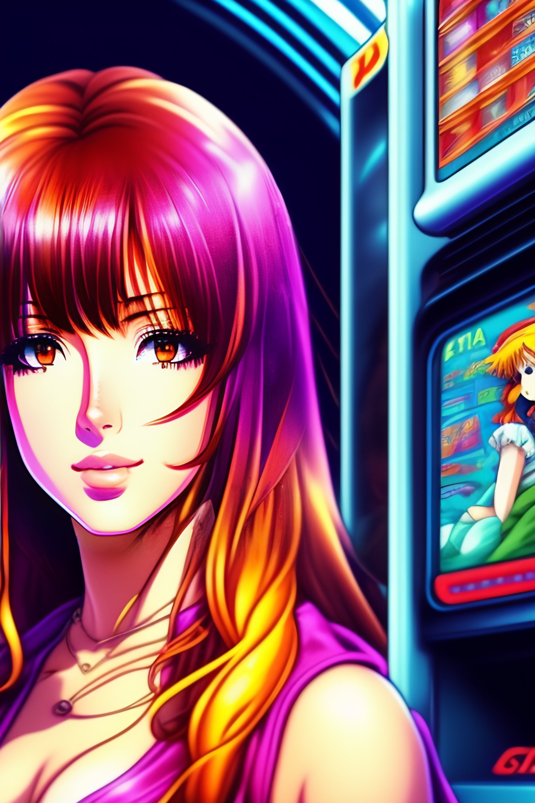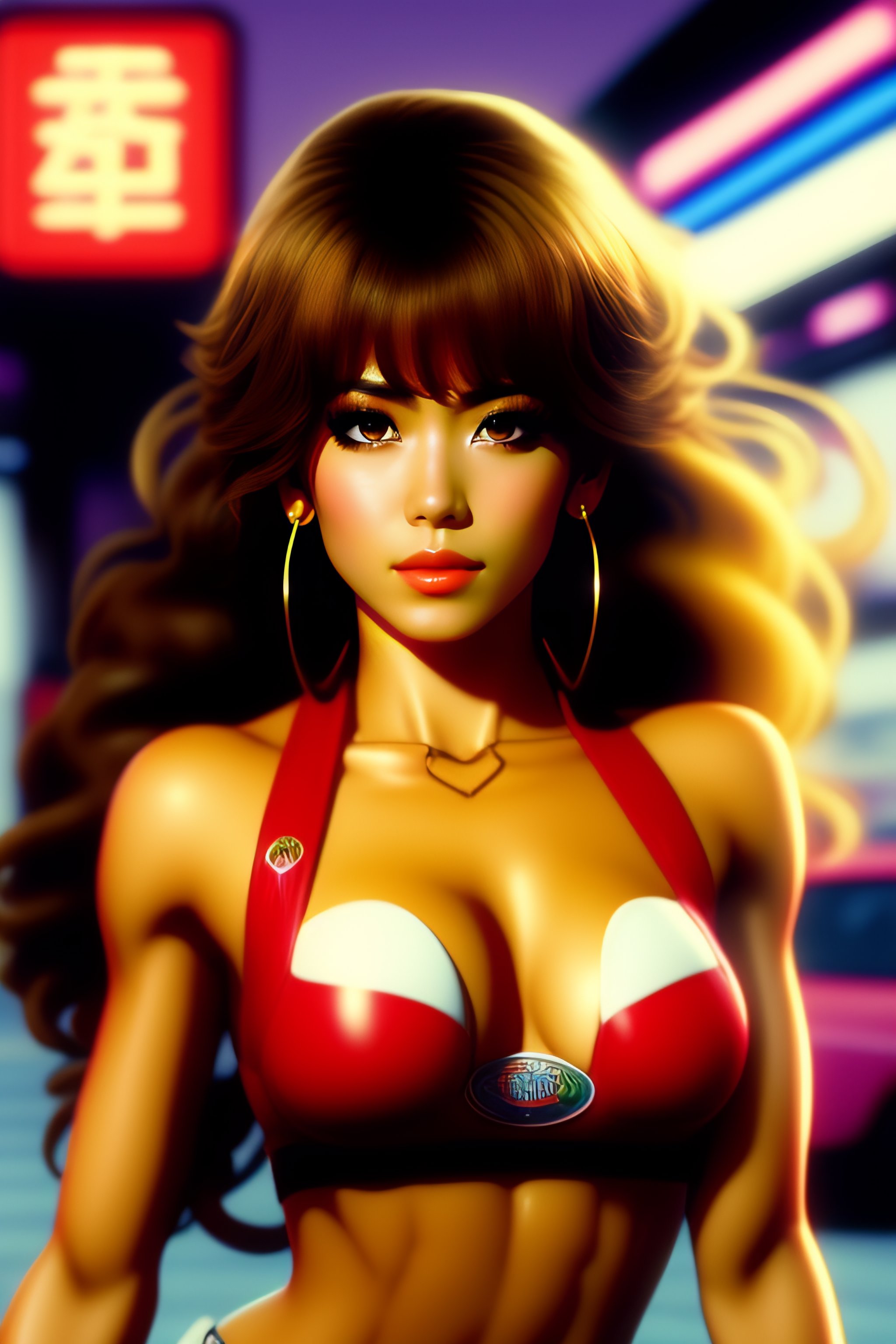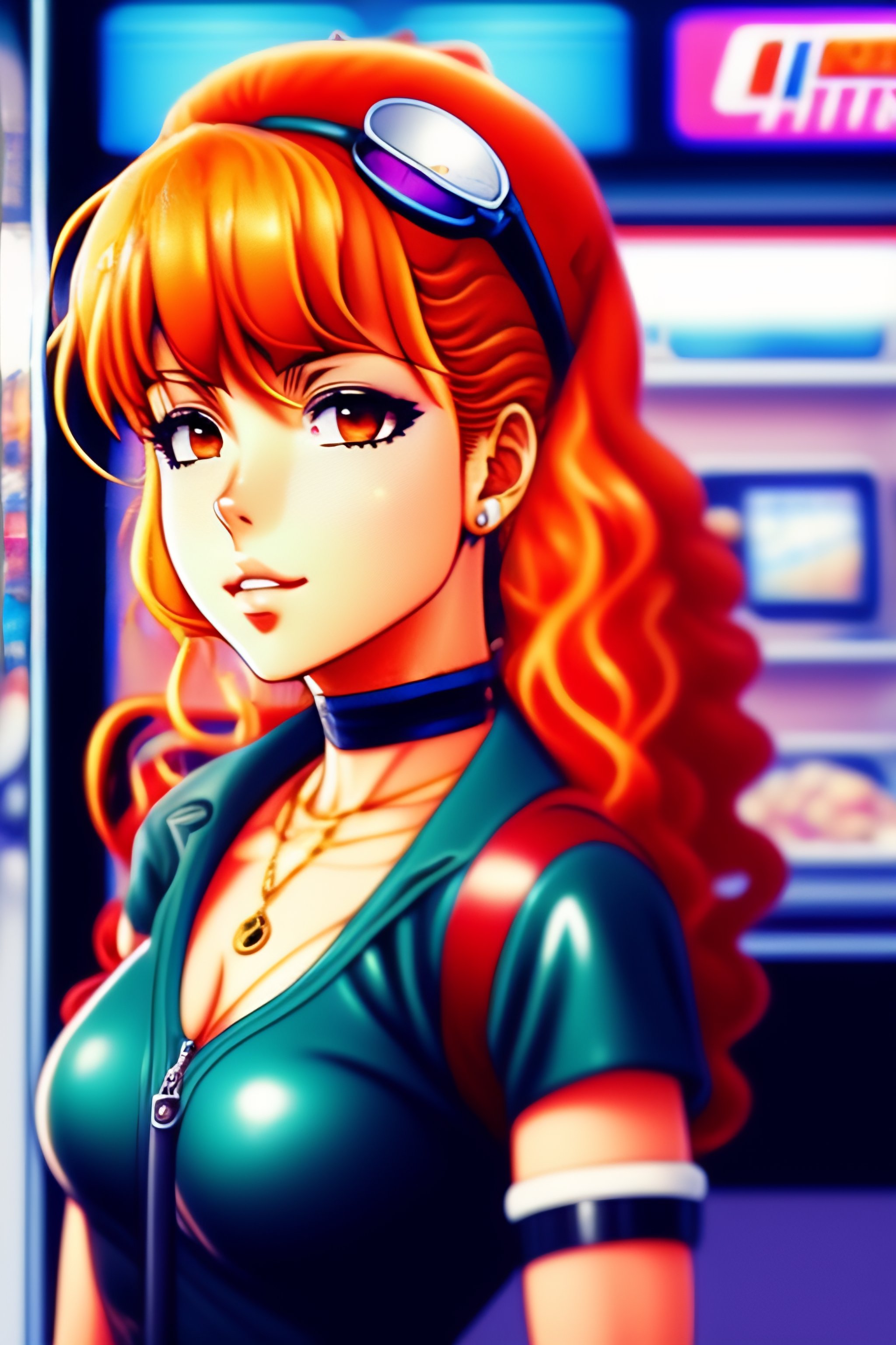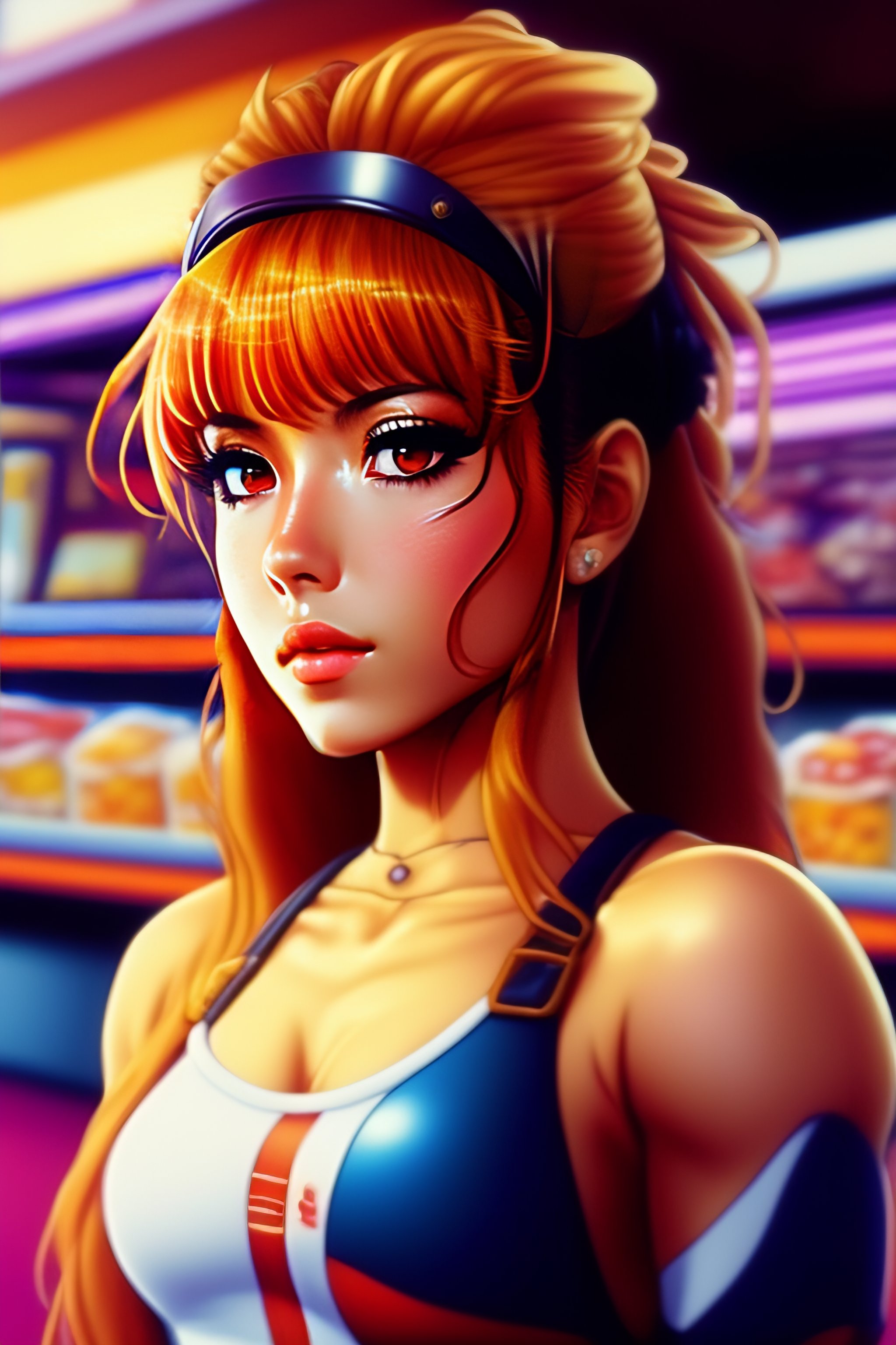 Portrait of shakira vintage 90's anime style. stylish model in 7/11 convenience store.