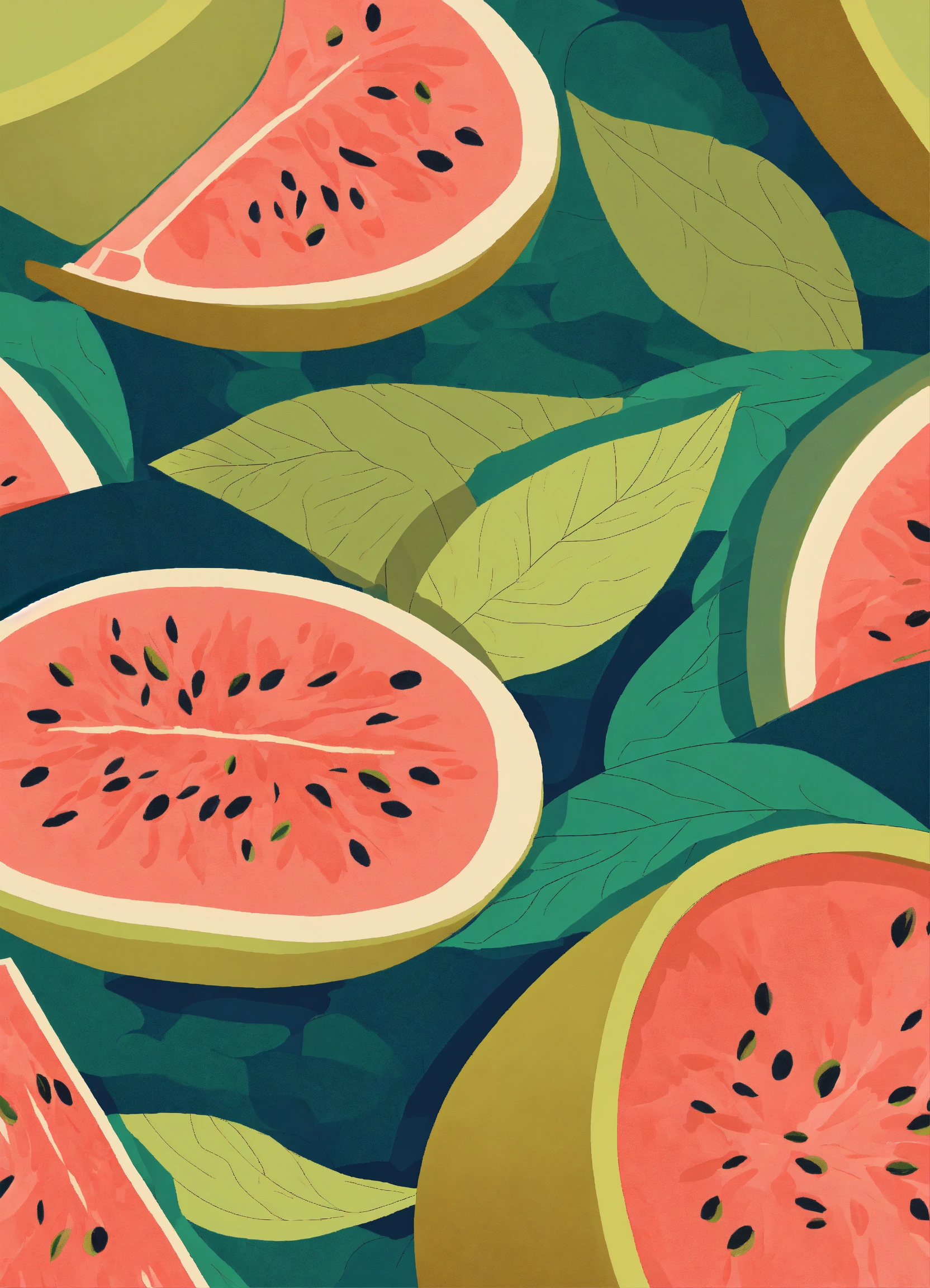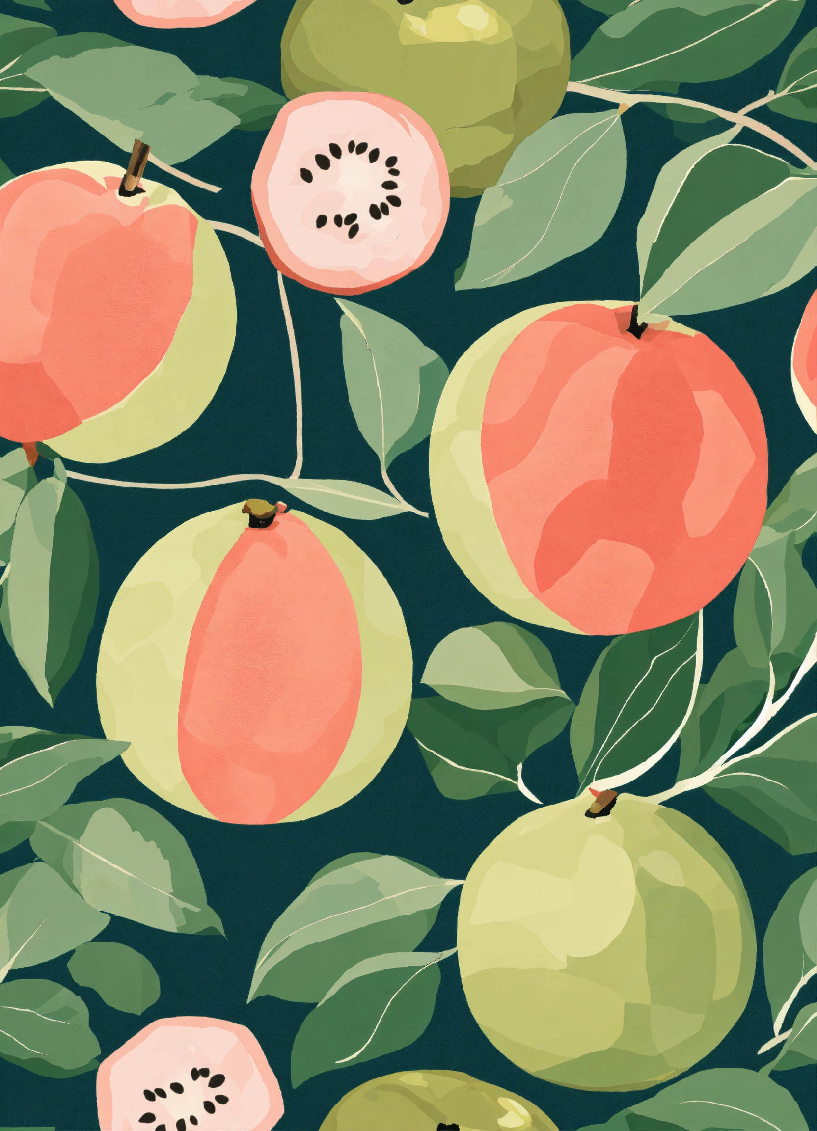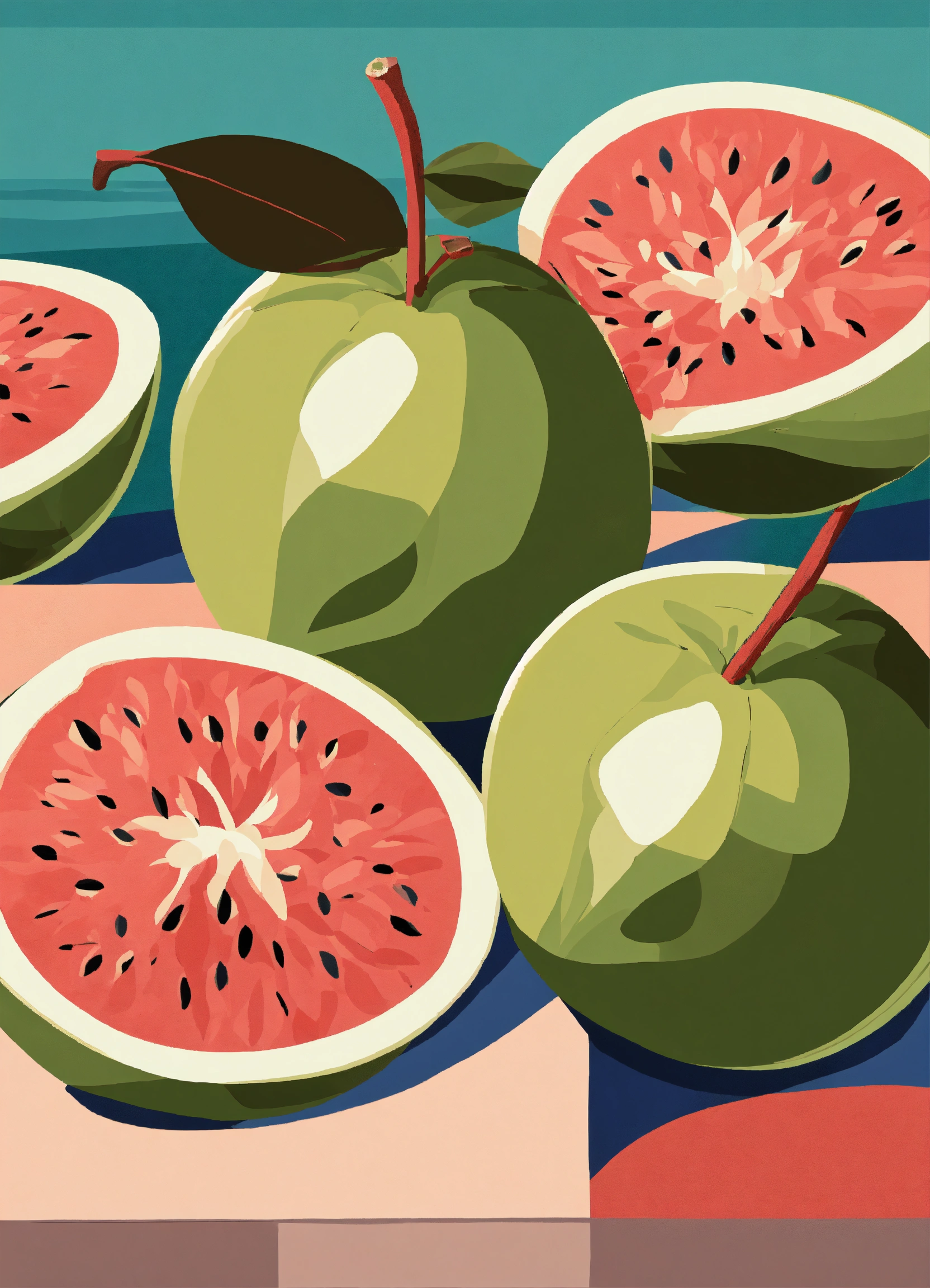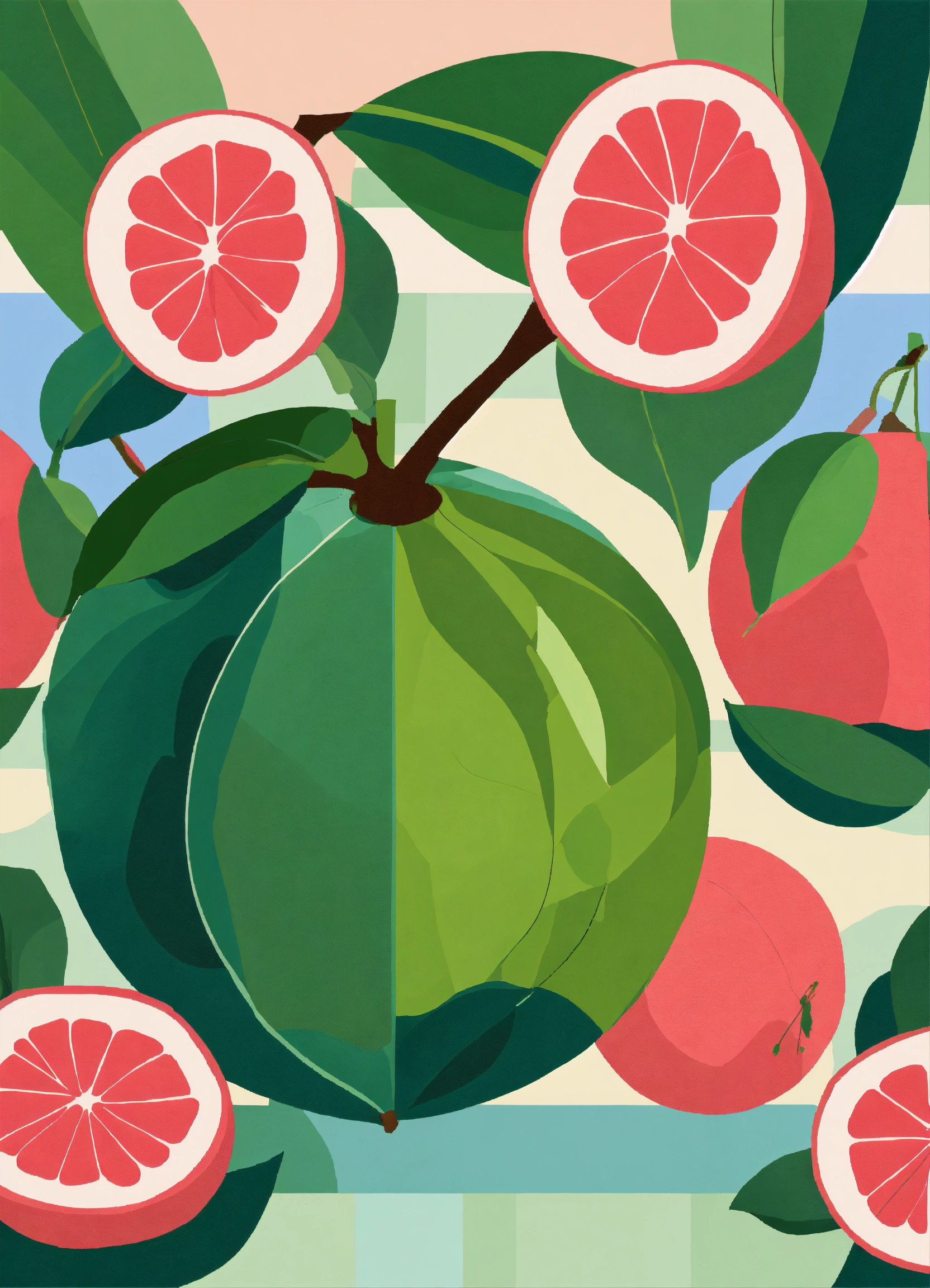 The subdued tones of guava fruit image intertwined seamlessly with oceans, creates de stijl enhancing modern illustration, illustration subdued tones style