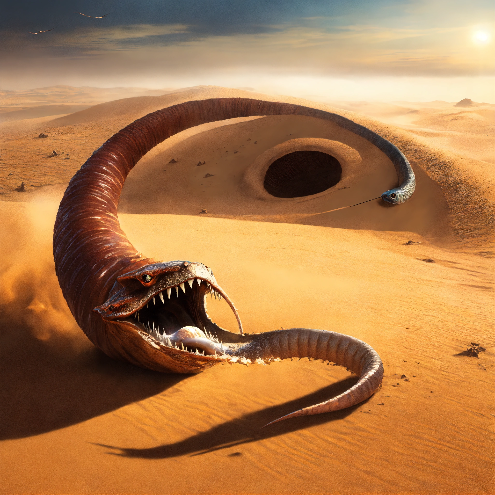 A dune sandworm fighting a graboid sandworm