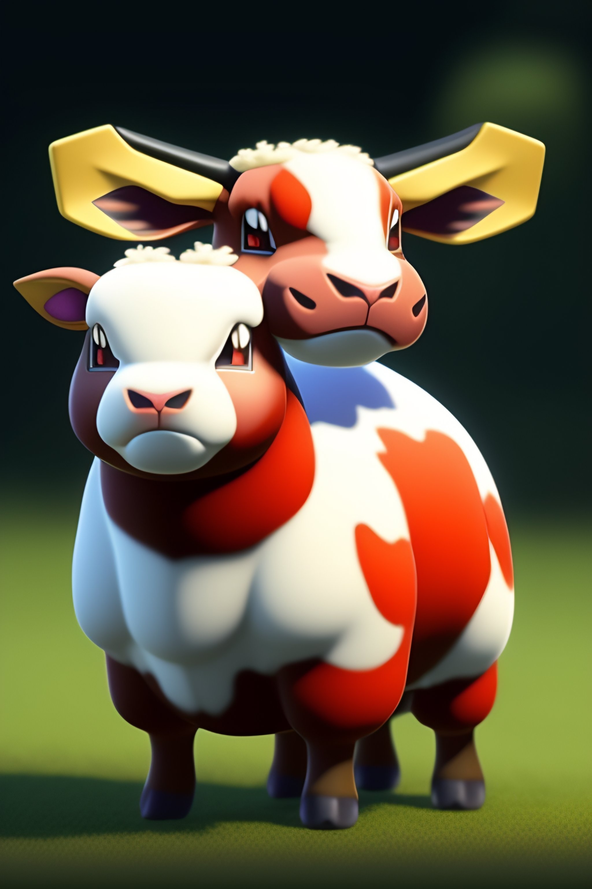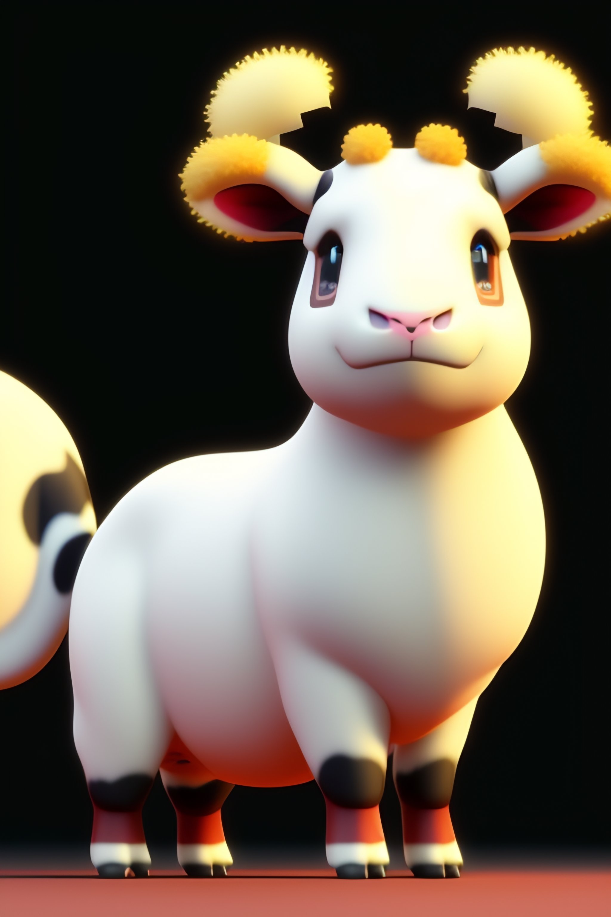 A pokemon that looks like a cow mixed with a sheep in the style of award winning pokemon anime