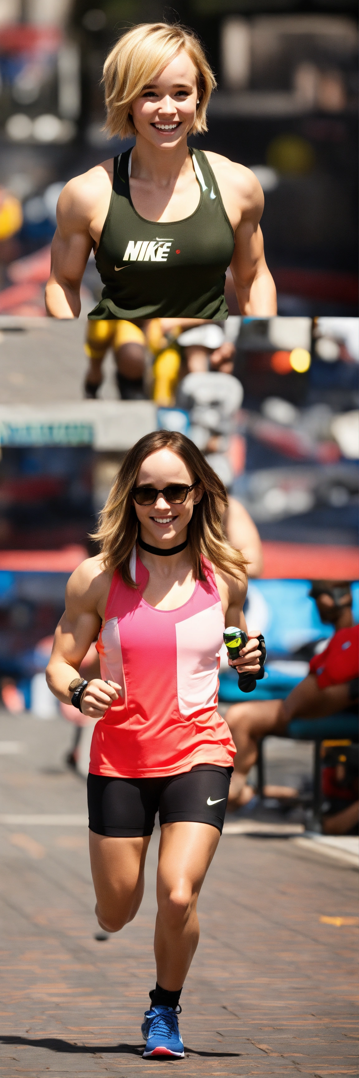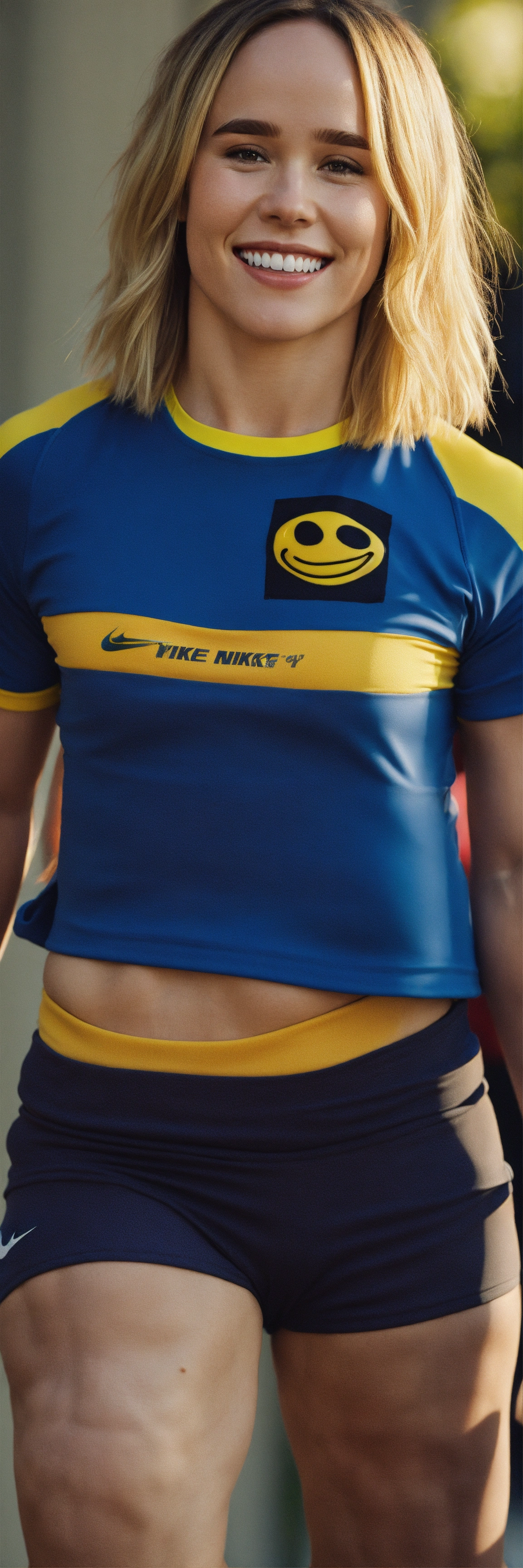 Bodybuilder nike fitness wear short blonde hair smiley ellen page