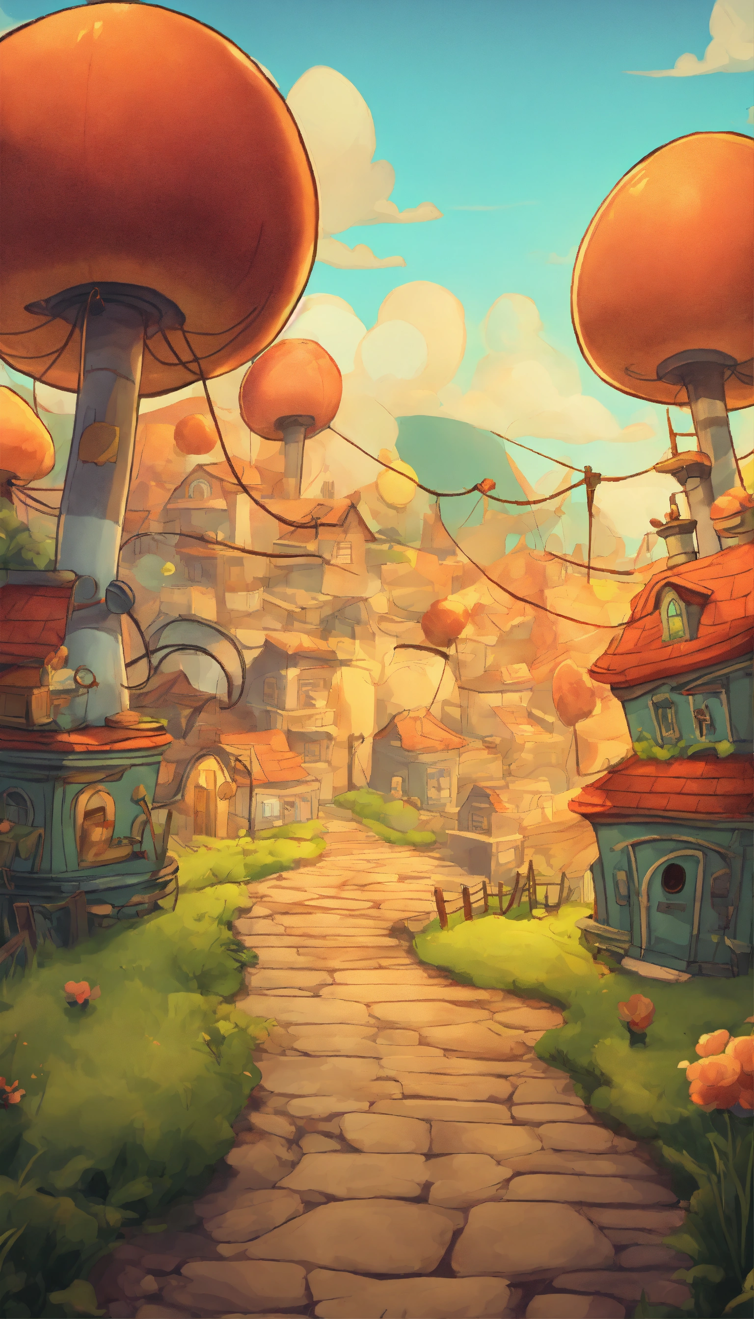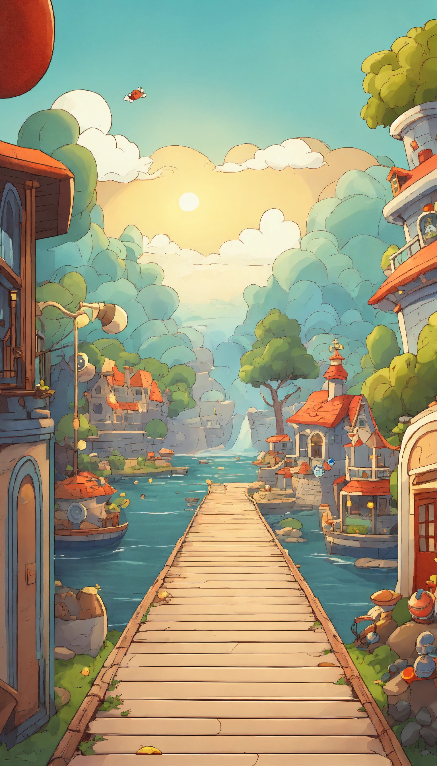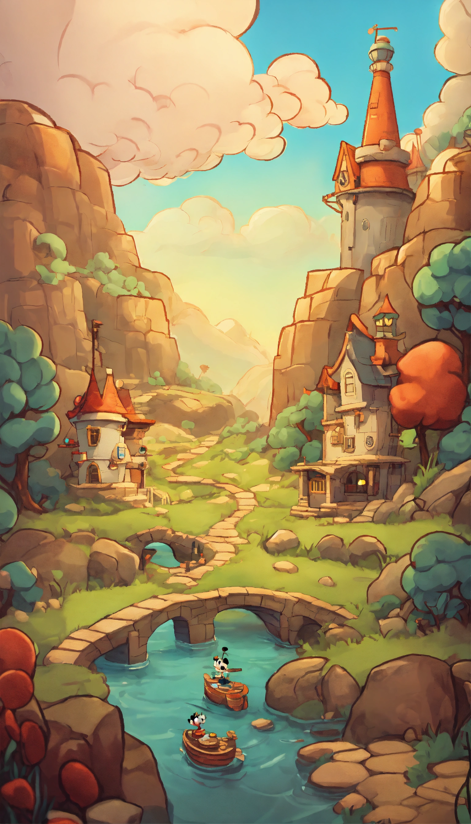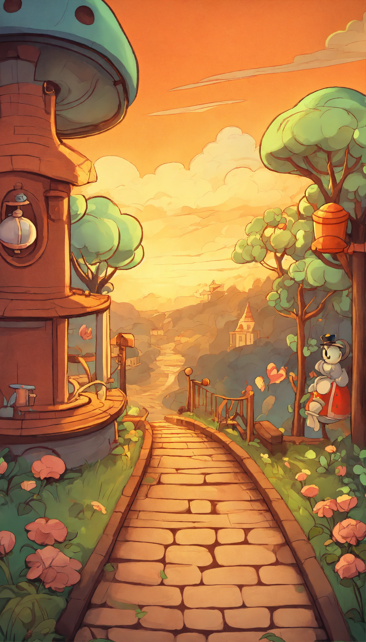 Background for 2d platform game cuphead style with realistic digital painting illustrated lines, to create a parallax effect