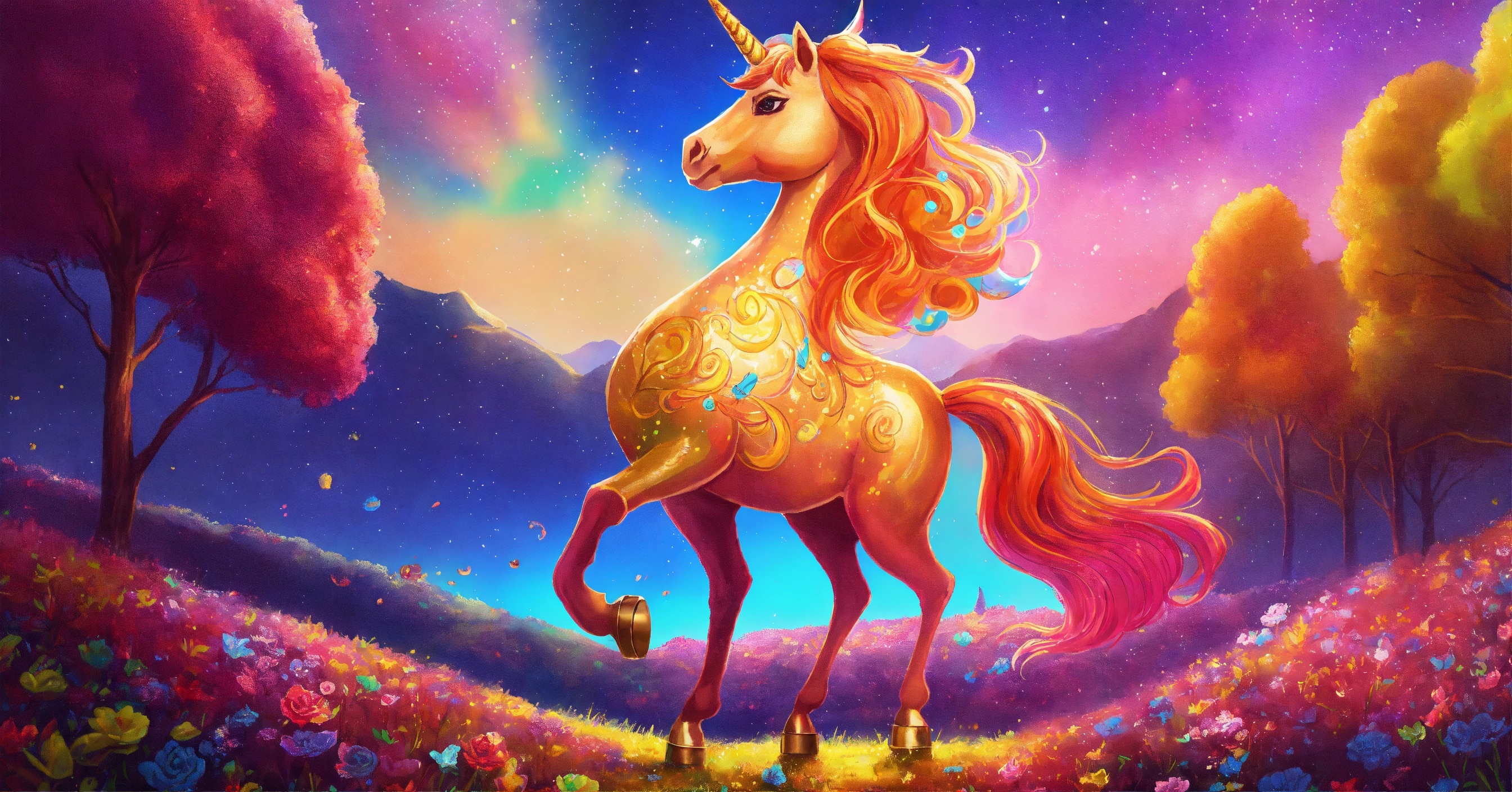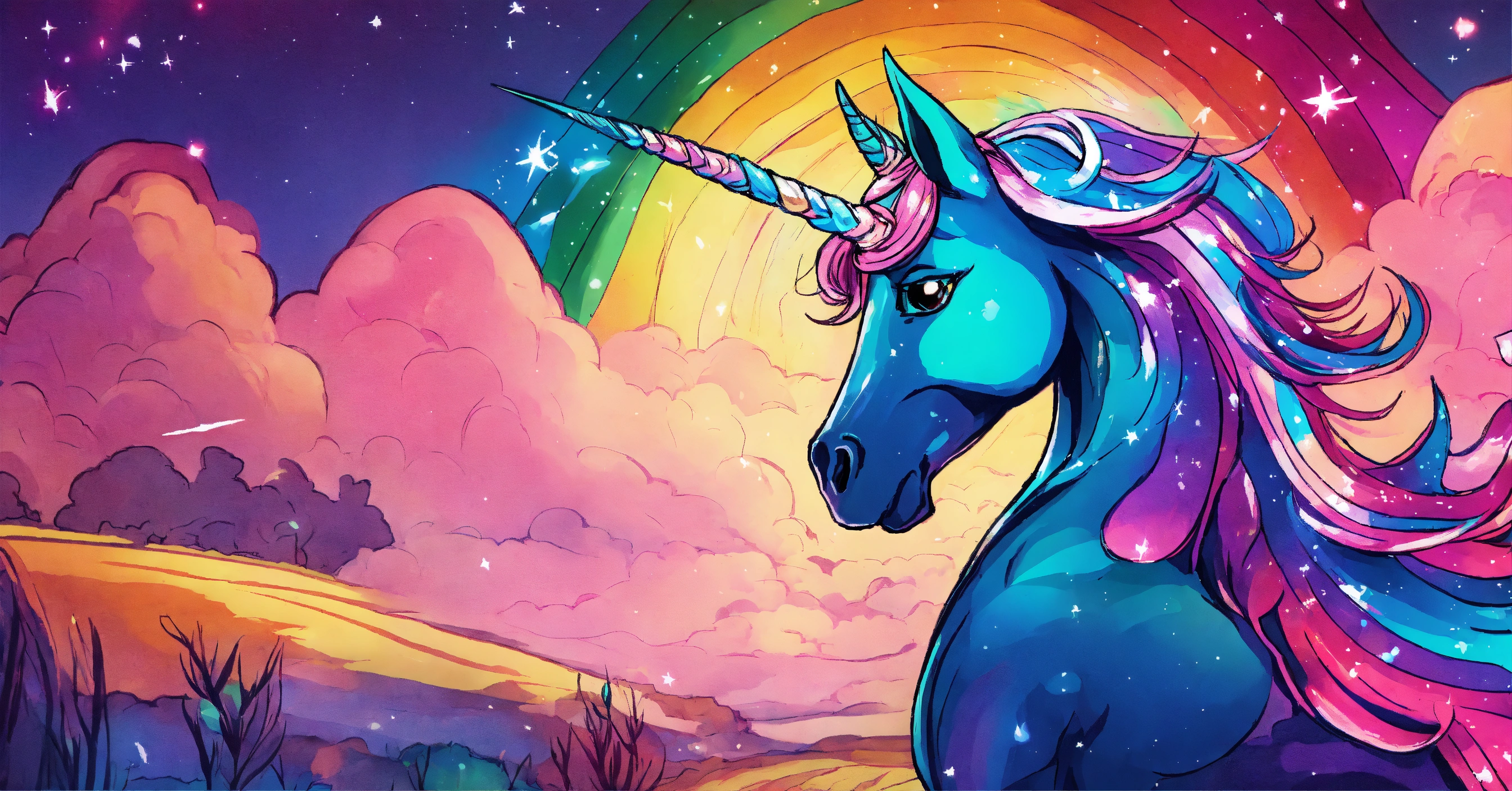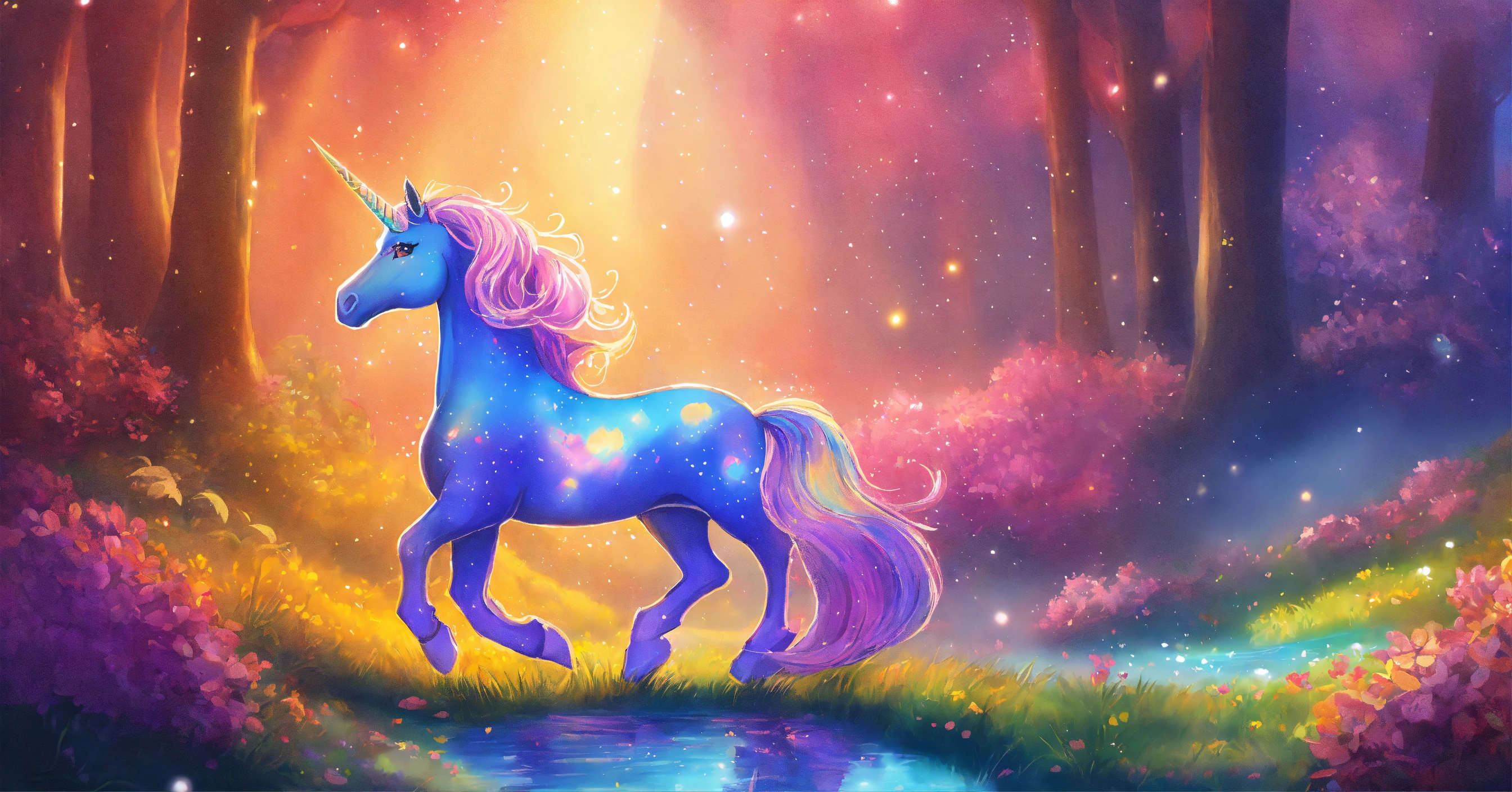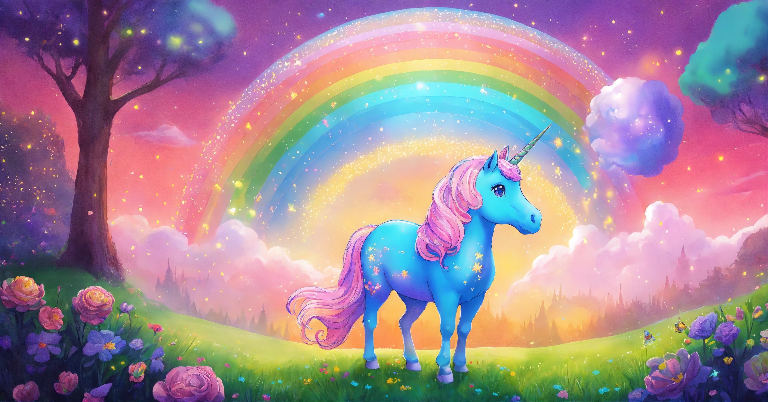 Dibuja una imagen que simbolice la singularidad de brillo el unicornio y cómo cada uno de nosotros puede brillar a su manera, 8k, colores vbrantes, estilo cuento para niños.