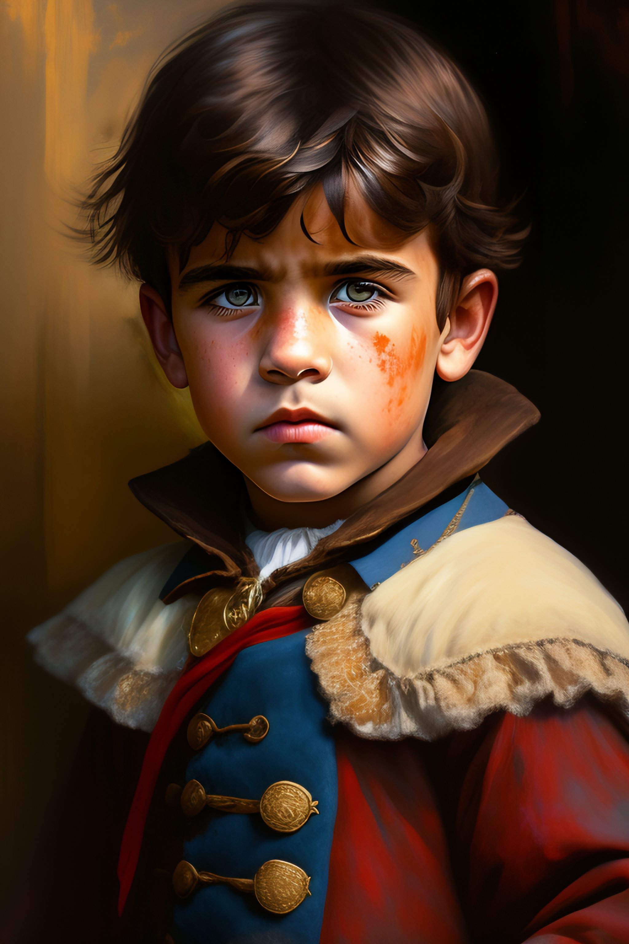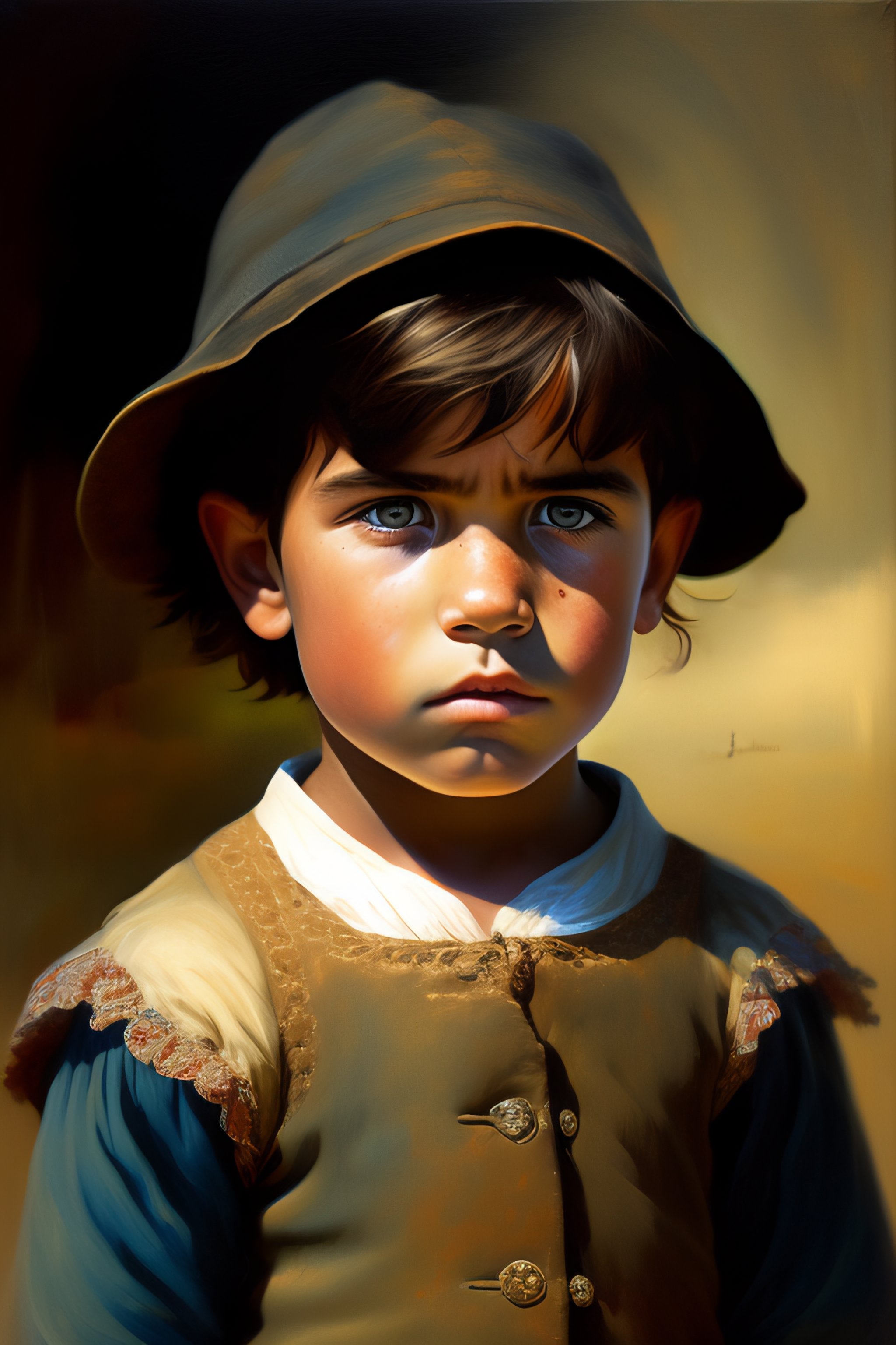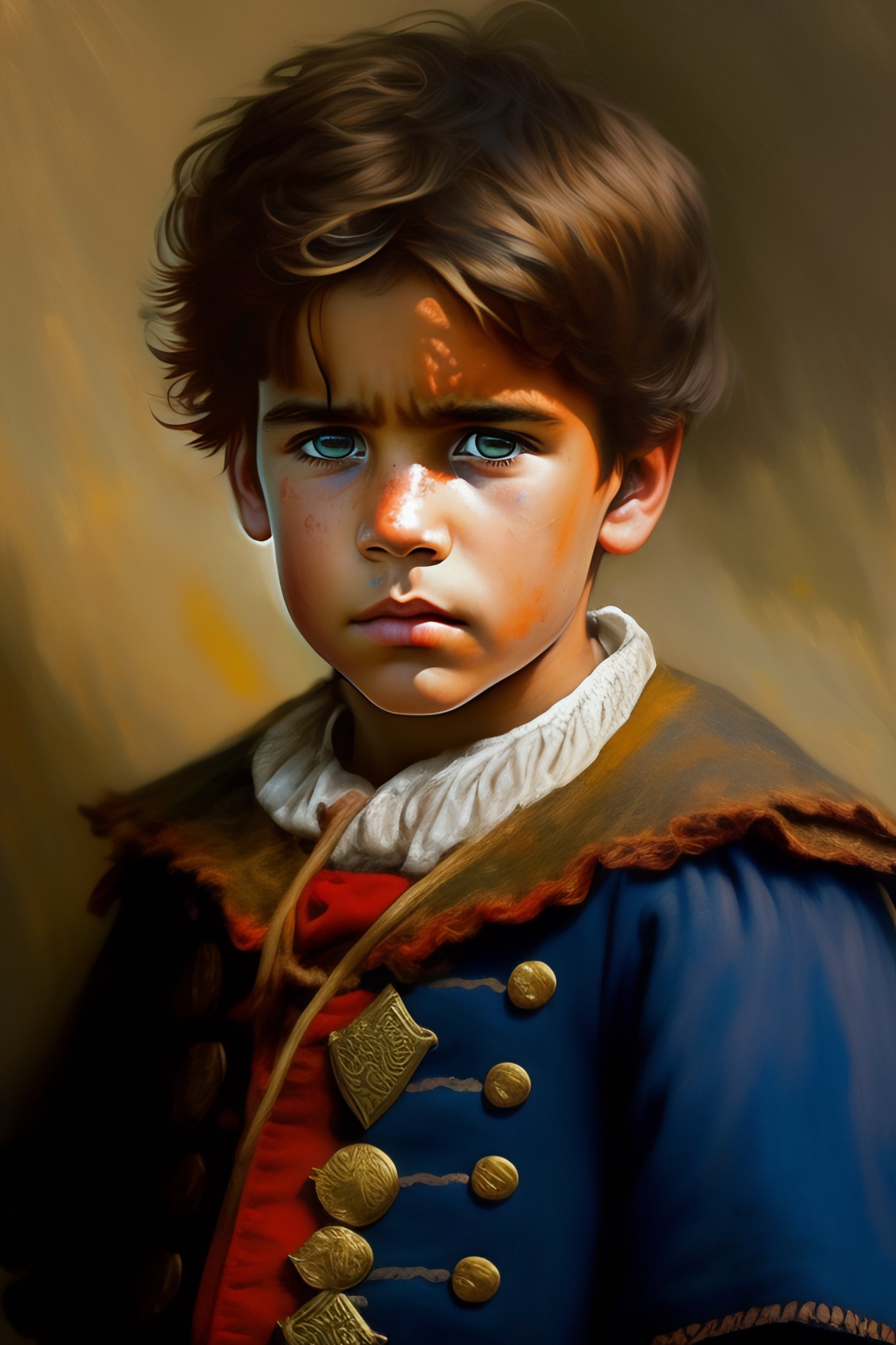 A portrait of poor peasant child in old used 1800 london british peasant clothing, crazy mad aggressive face and eyes, fantasy, concept art, acrylic painting, dark colors, gritty, messy style