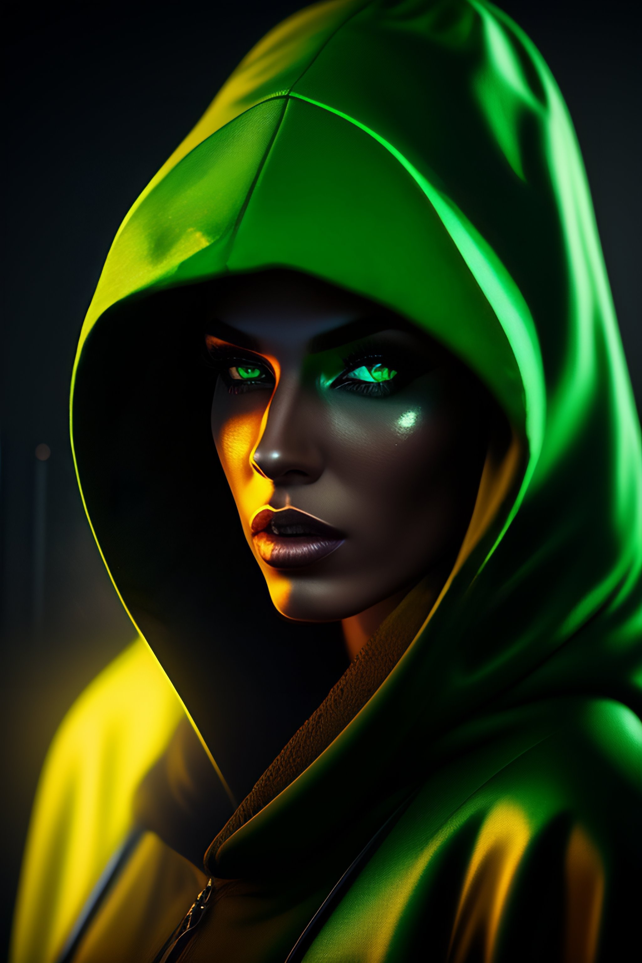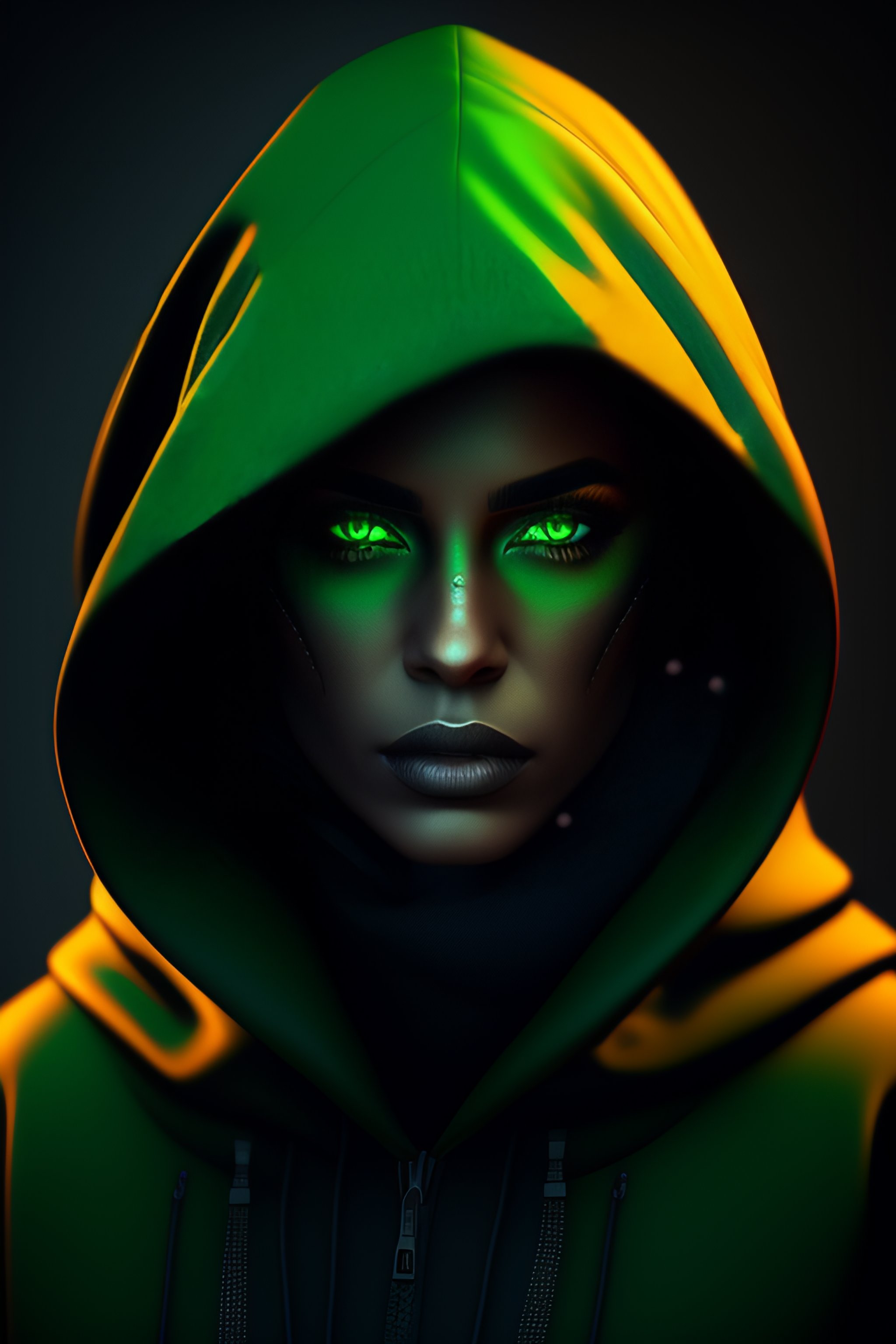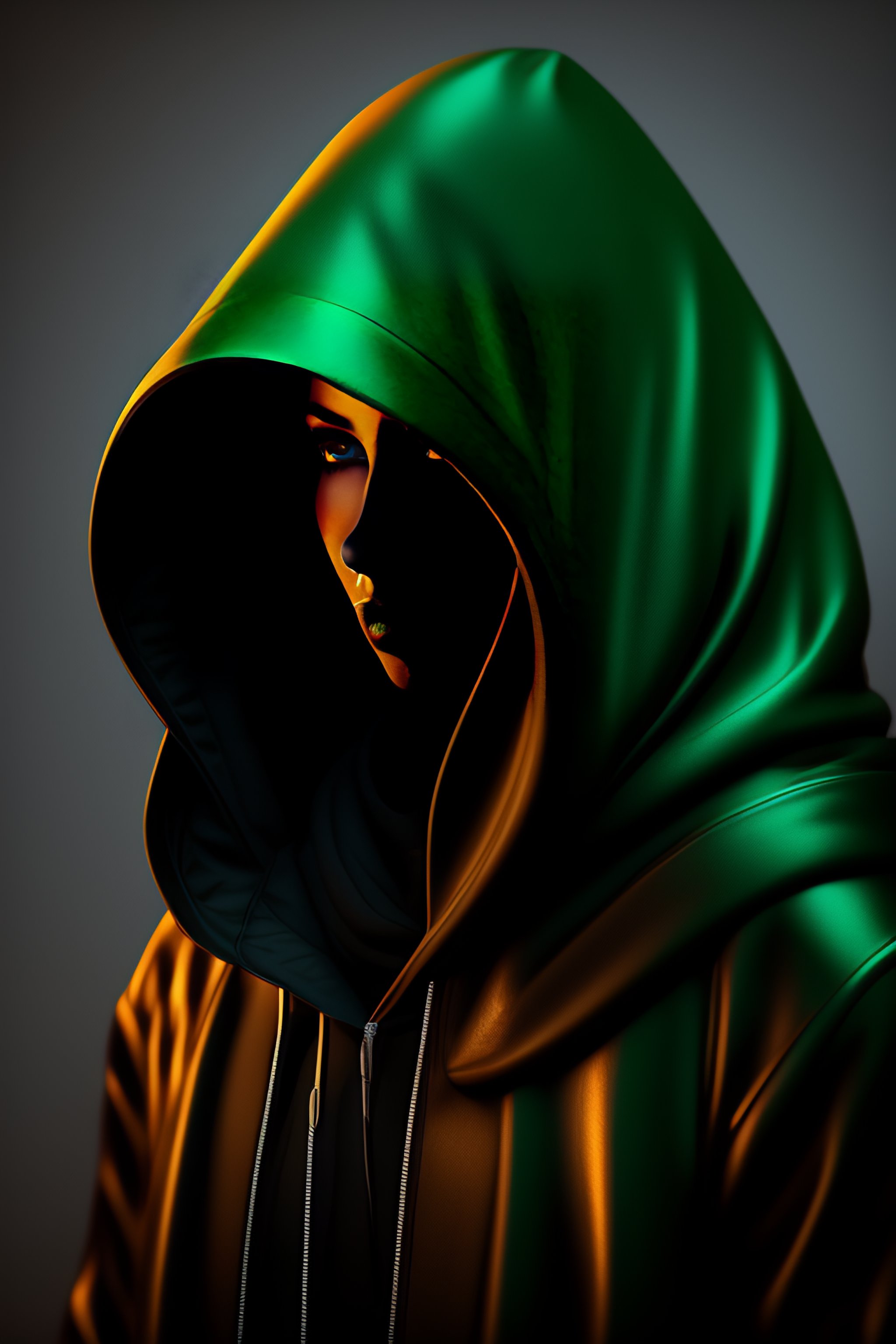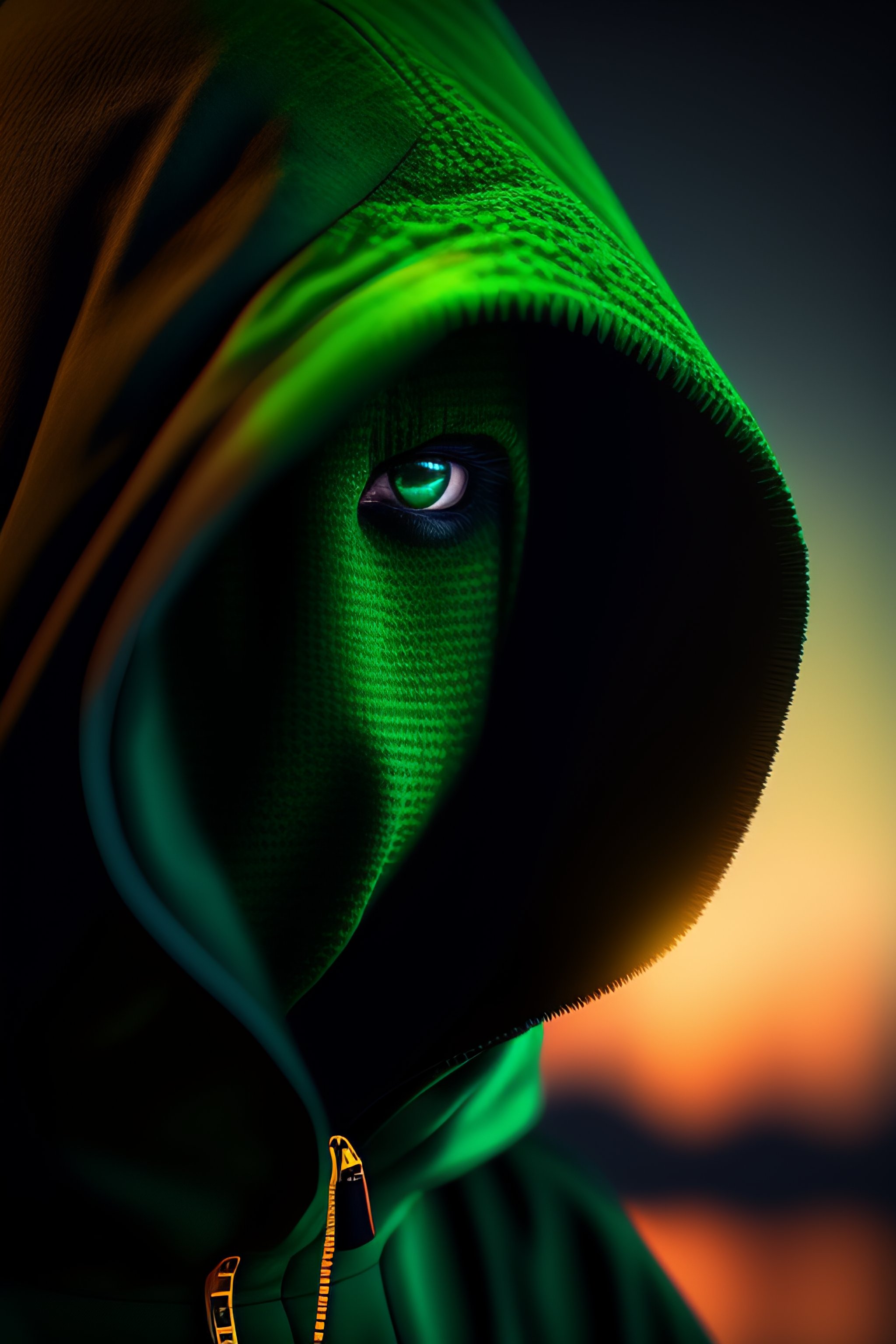 Pixel art, green eye, hooded figure, dark, creepy, ominous, hyper-realistic, 4k, 8k, unreal engine, high resolution