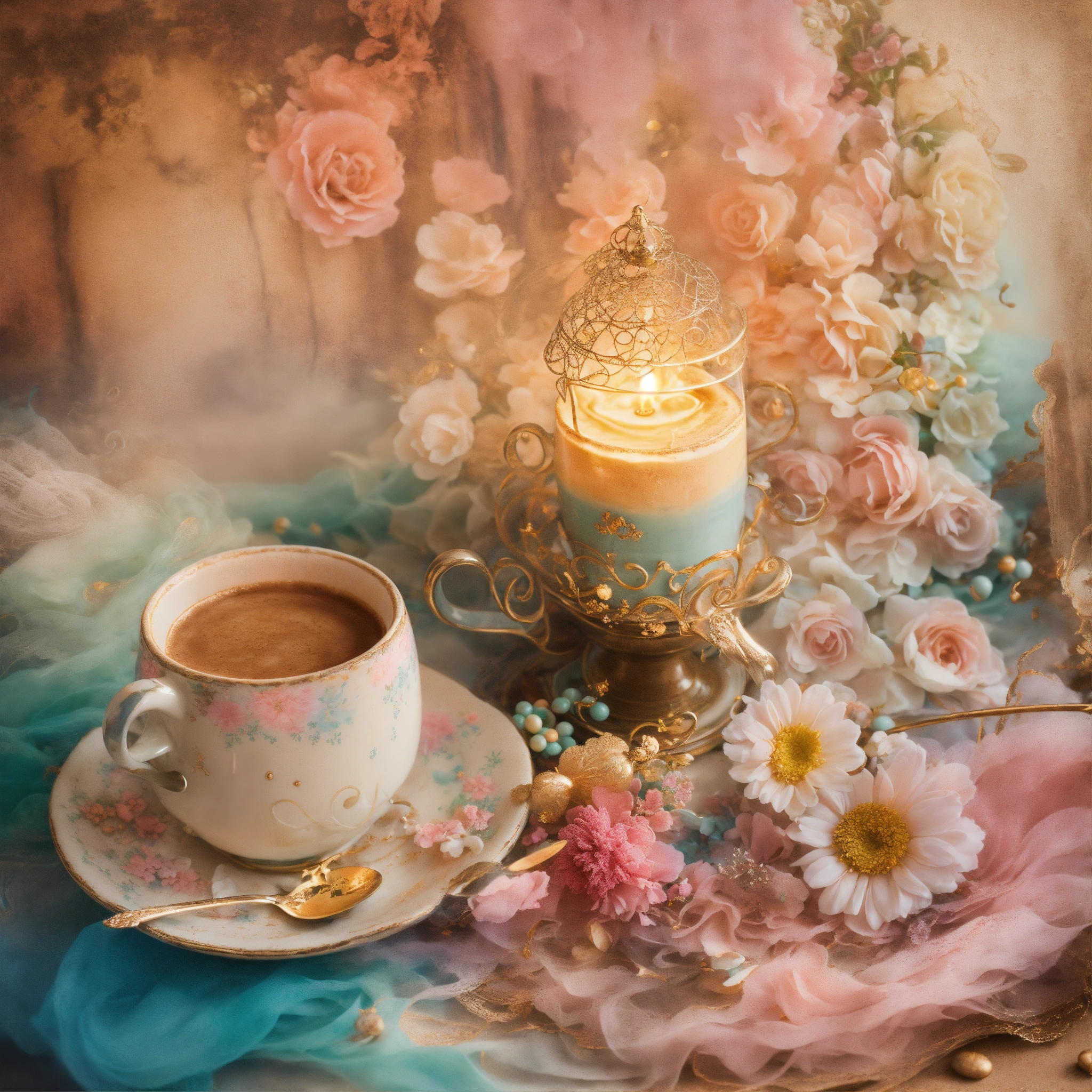 Shabby chic dreamy mist pastel junk journals latte coffee tea the te swirling magical fairytale abstract art style