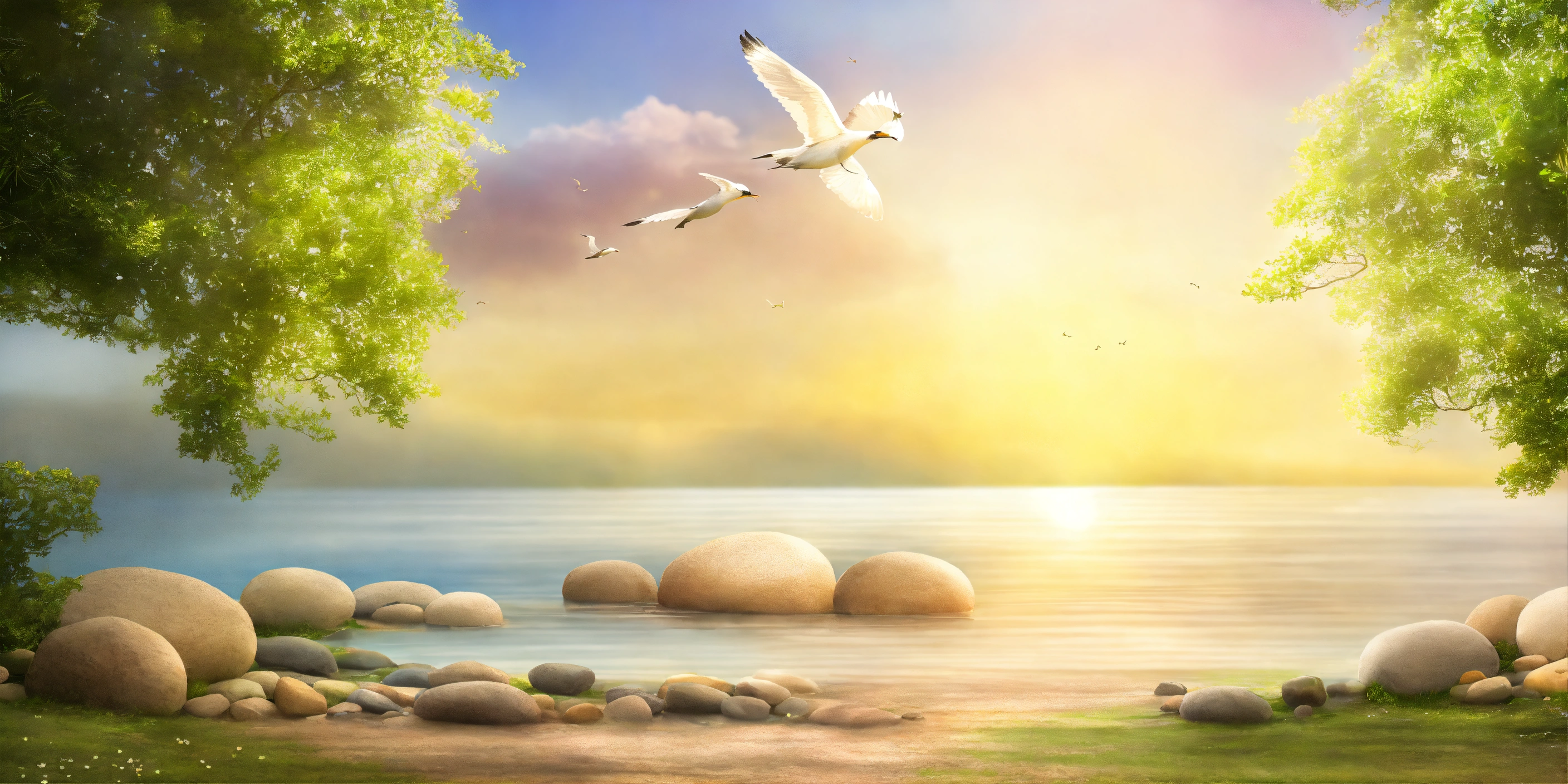 Serene blissful background with elements of positive thinking and meditation in photorealistic style and neutral colors