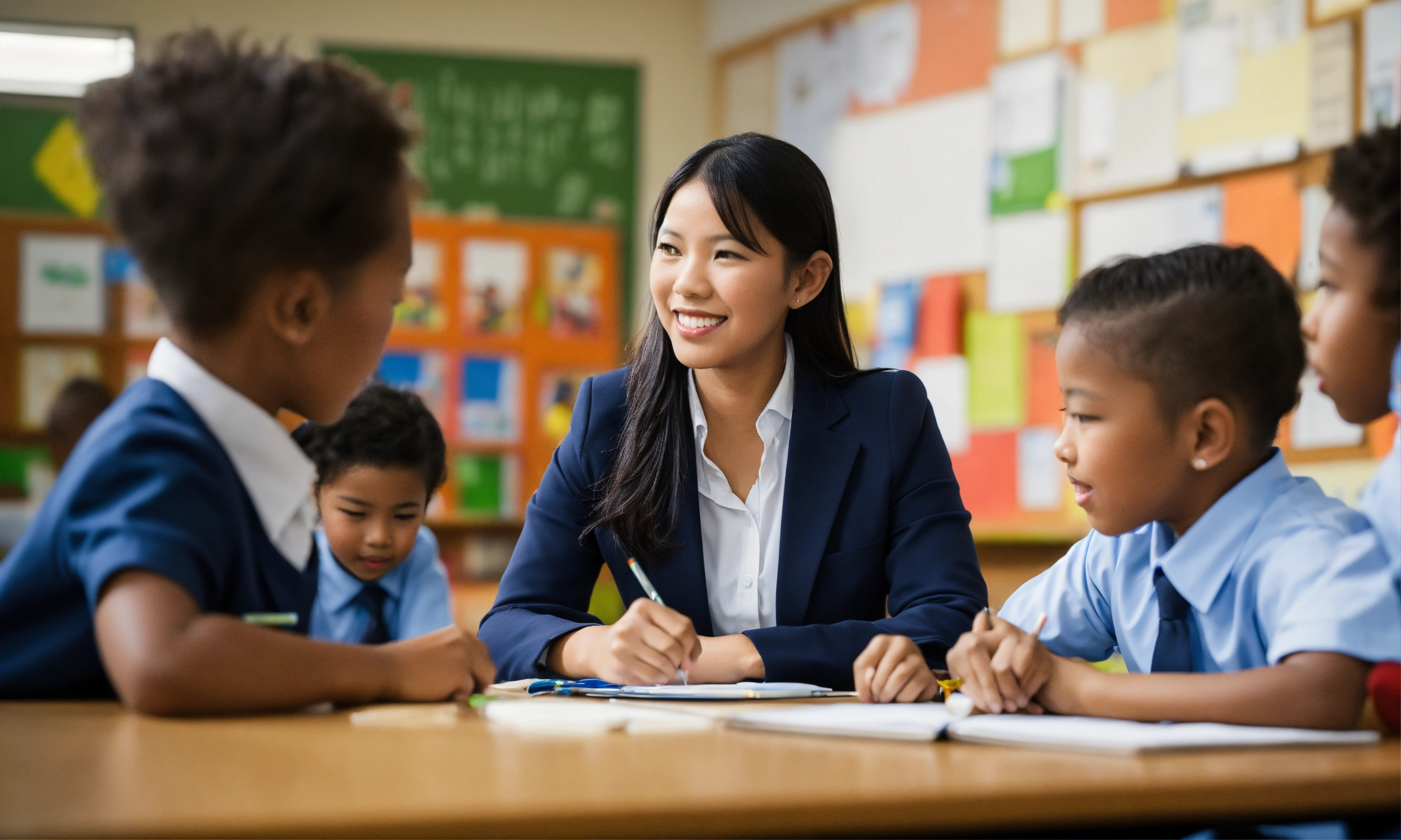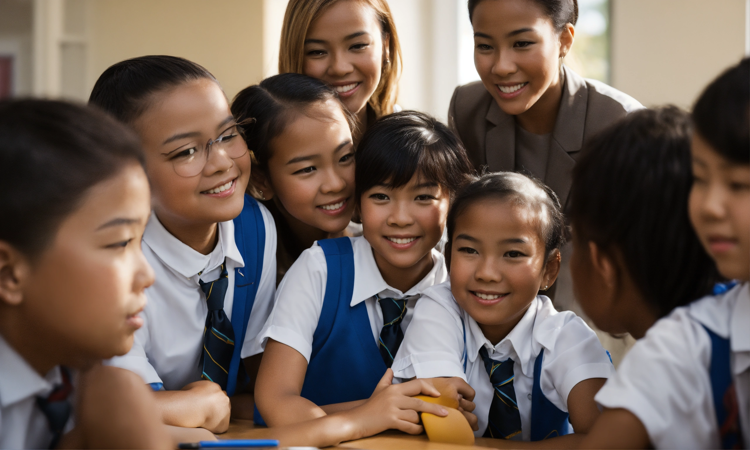 I am creating stock images of an executive school leadership principal website, i am creating the hero images, i need ultra photorealistic photos of white asian and black children in a group photos, some of the photos can have a female principal interacting with the students