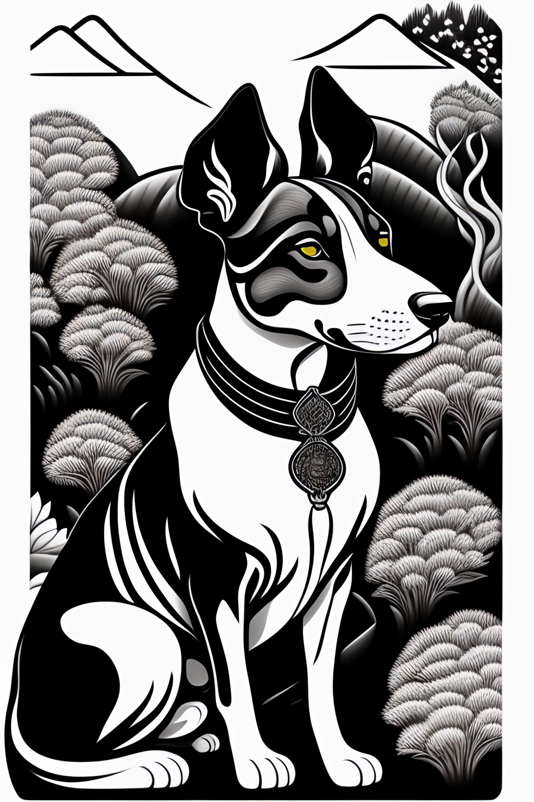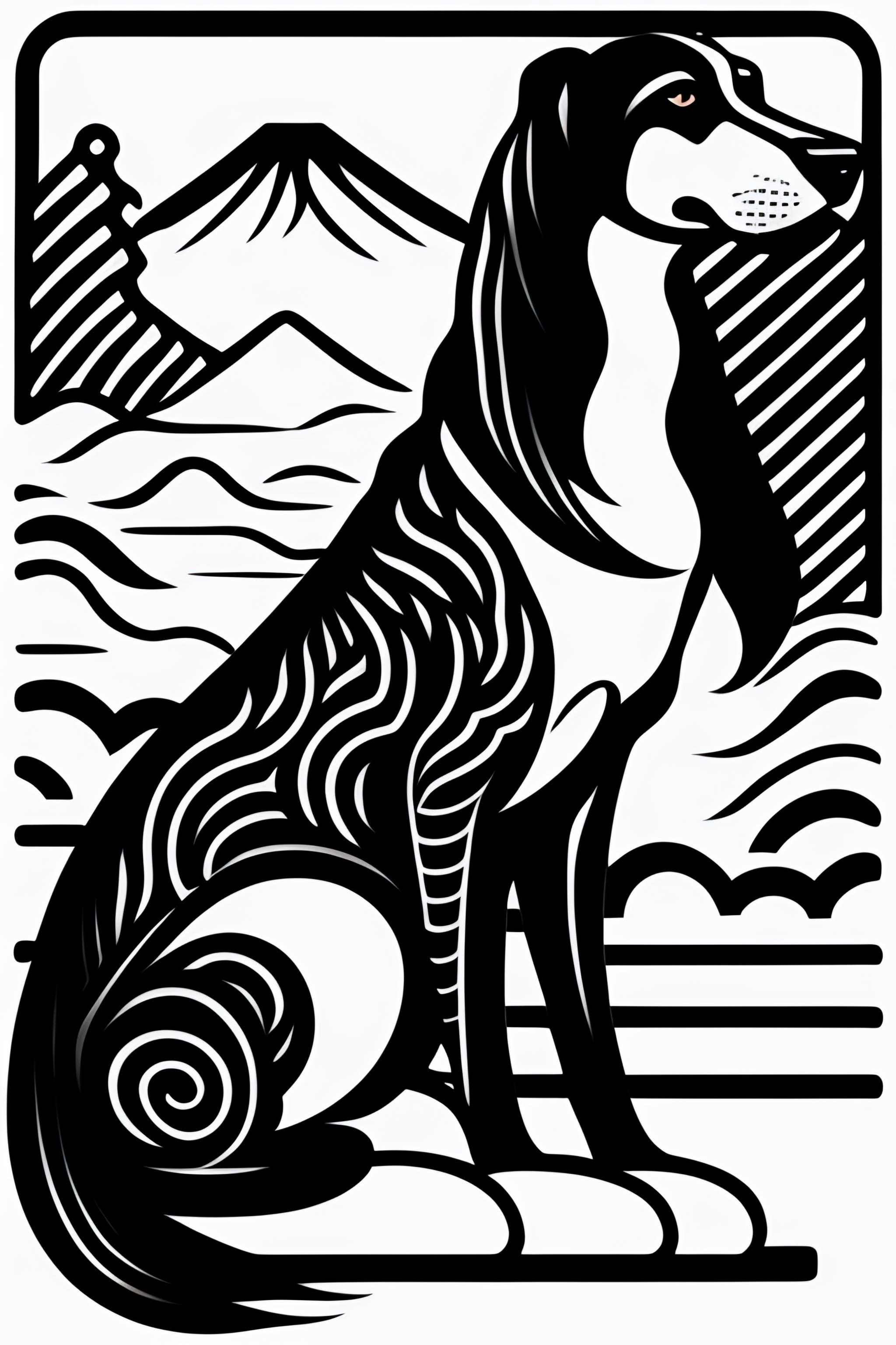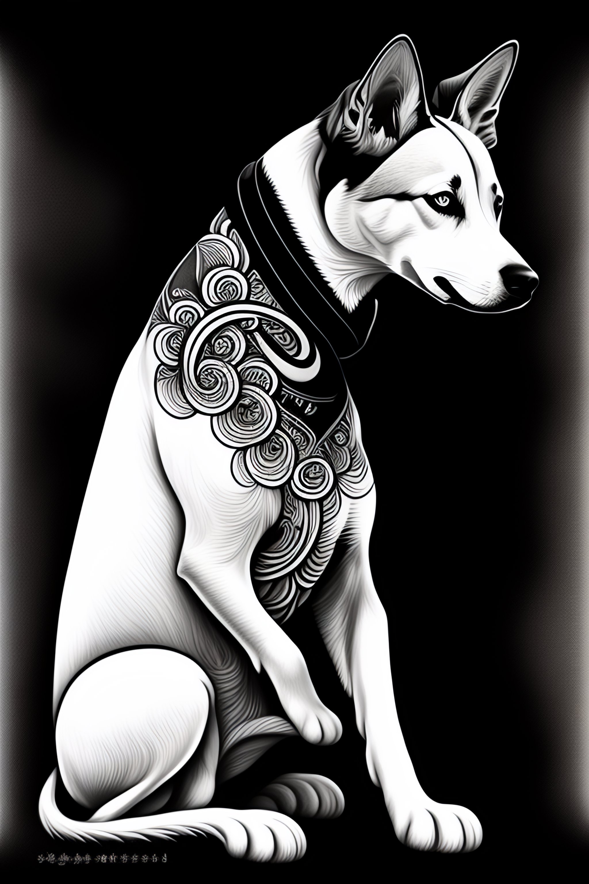 A geyhound dog, irezumi, japan, japanese style, drawing, line work, outline, simple line style, black and white
