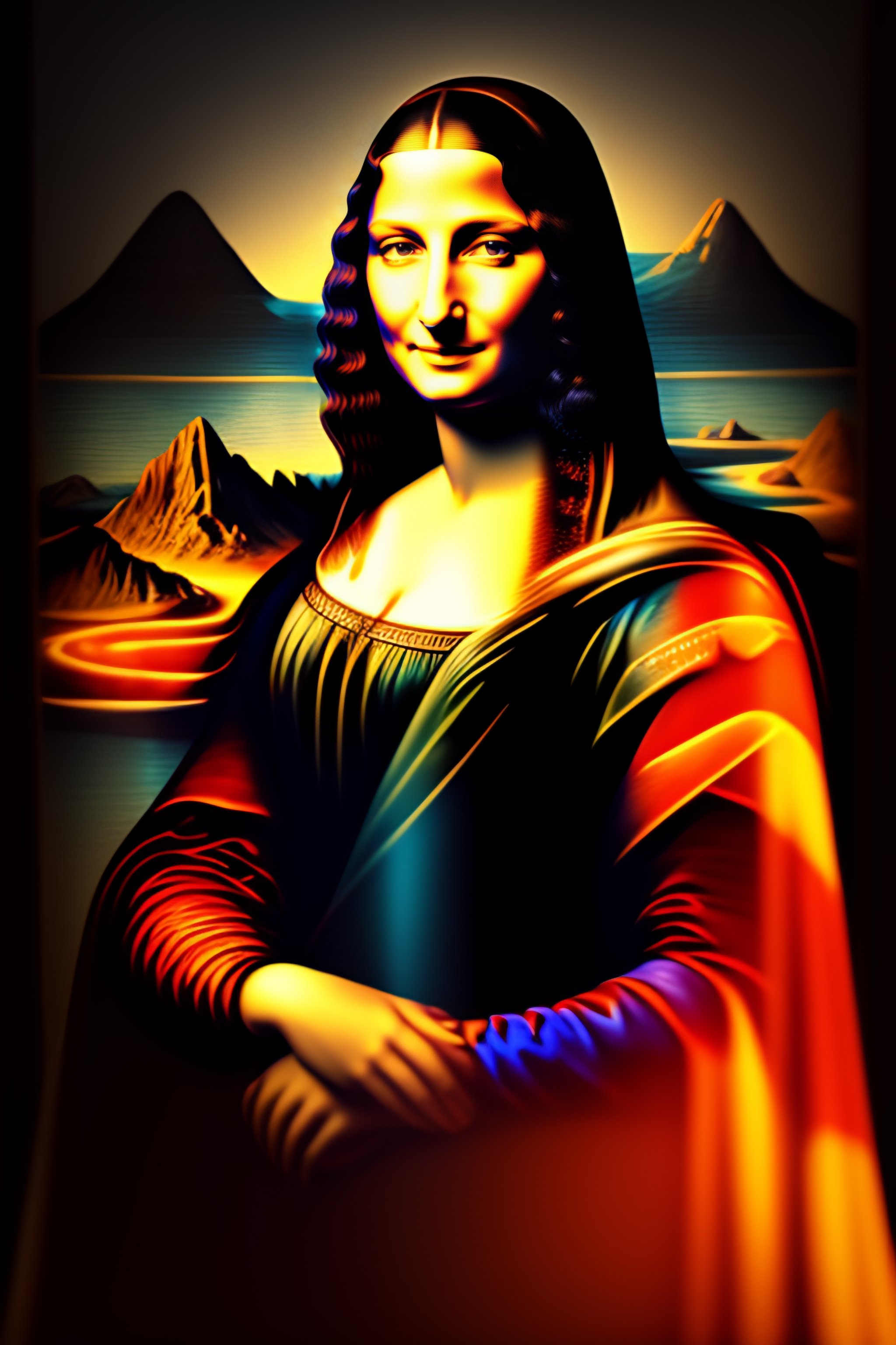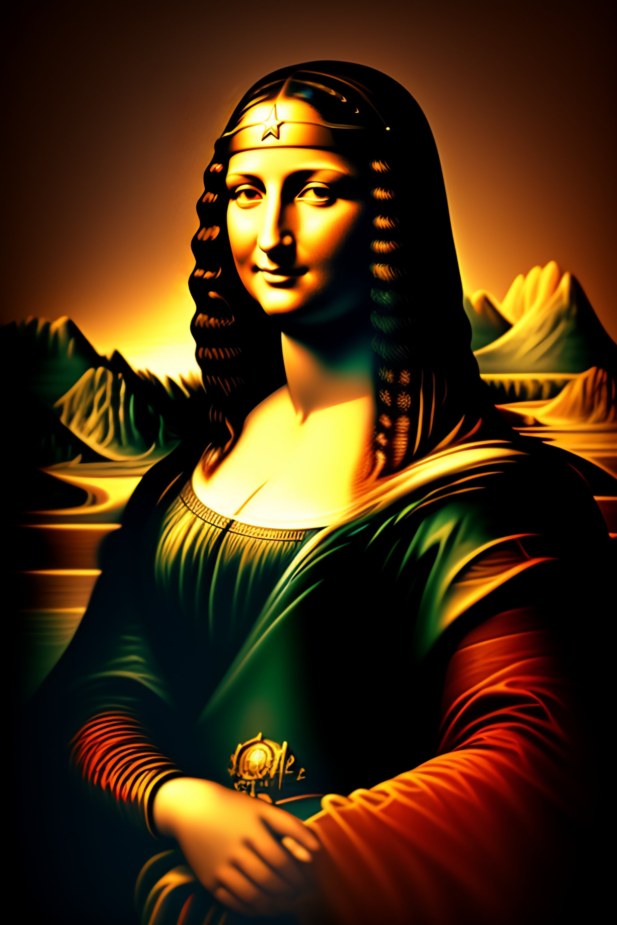 Mona lisa as captain america blender 4k nikon 35mm hyper realistic cell shaded volumetric lighting