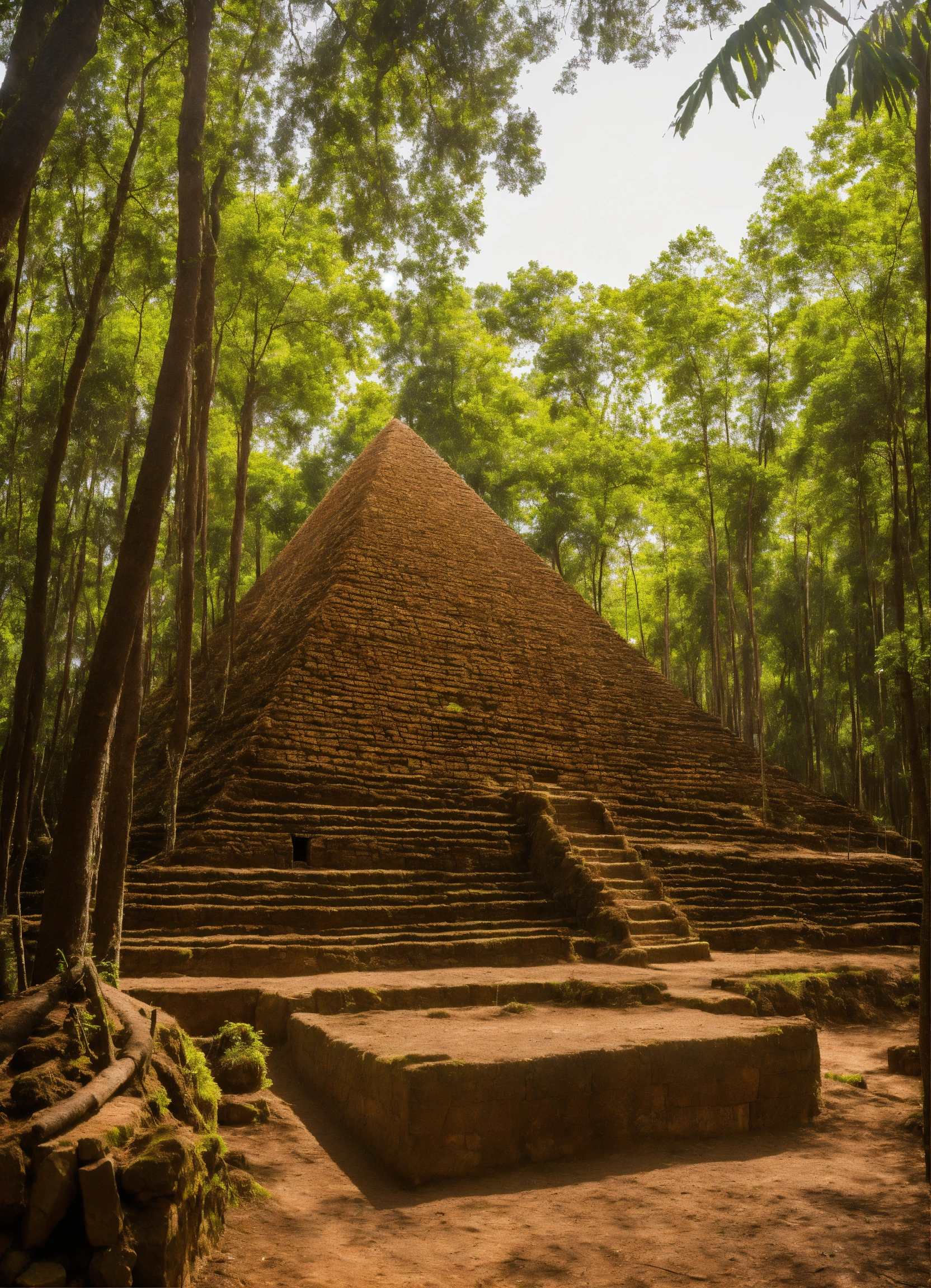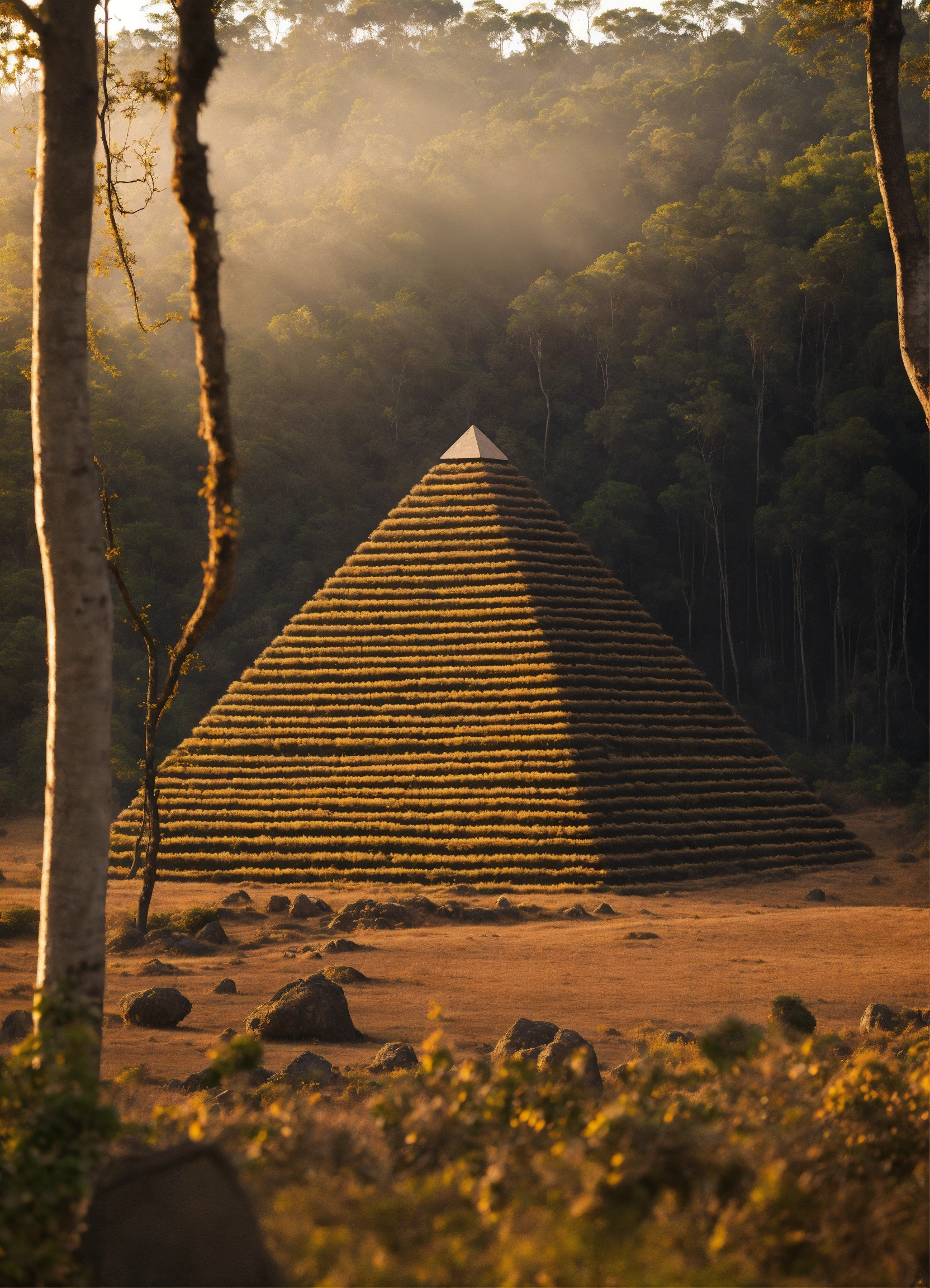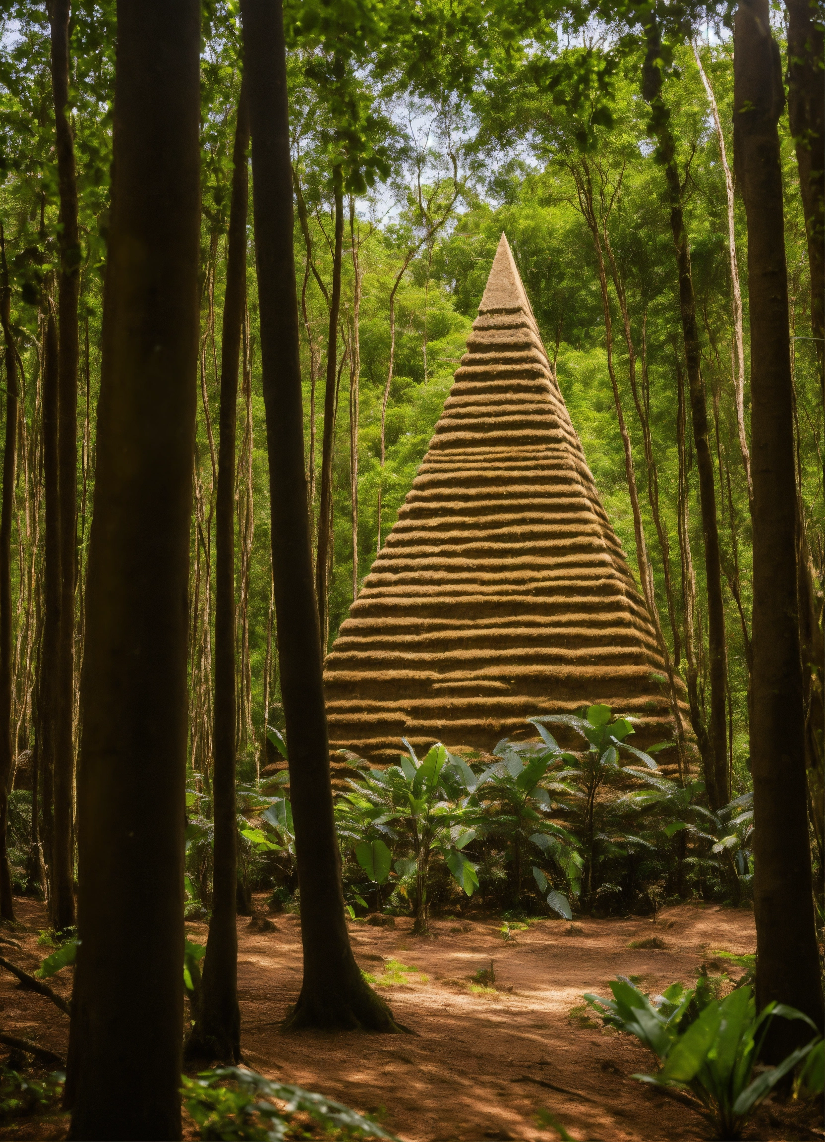 Hogares en forma de piramides en una aldea en la selva