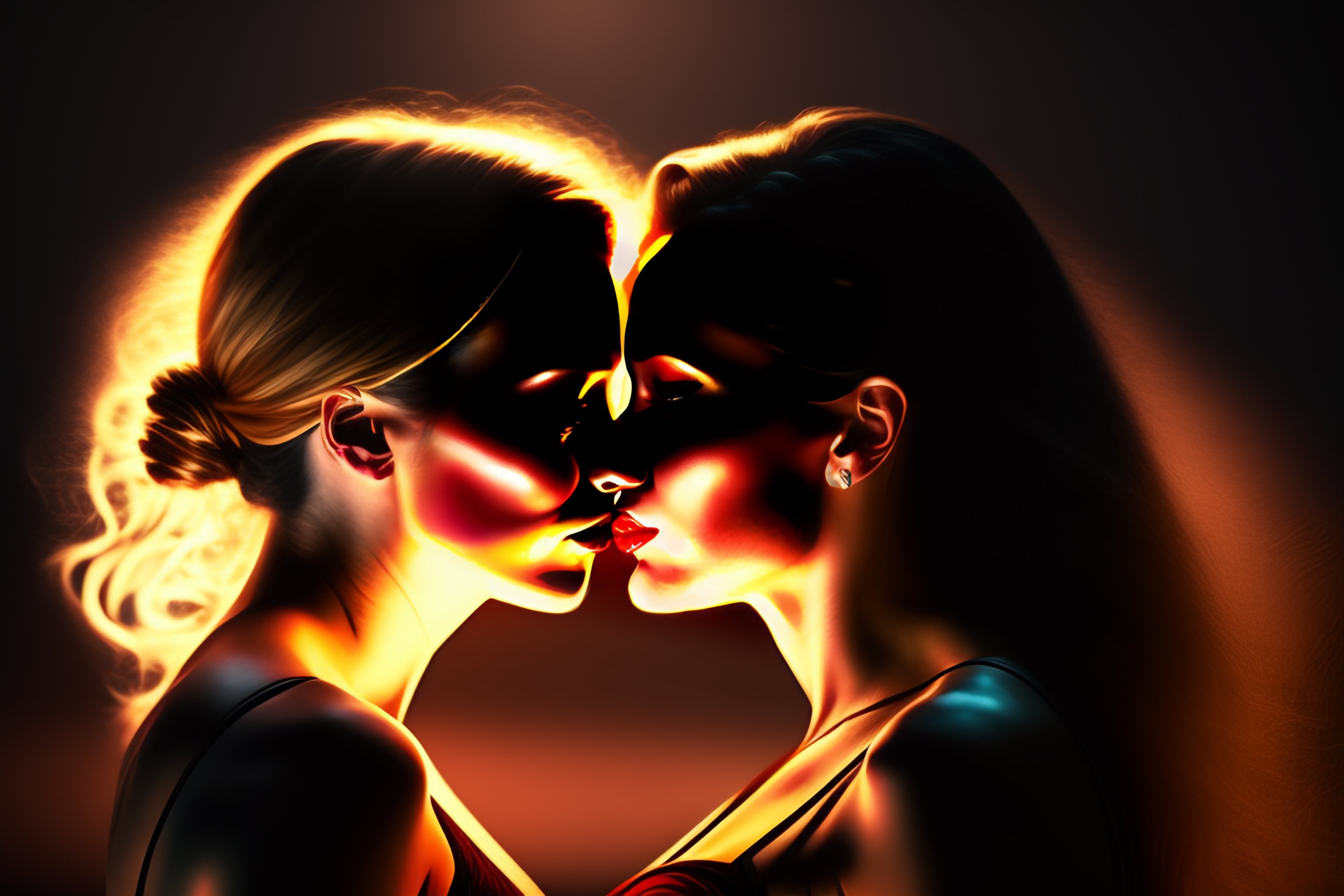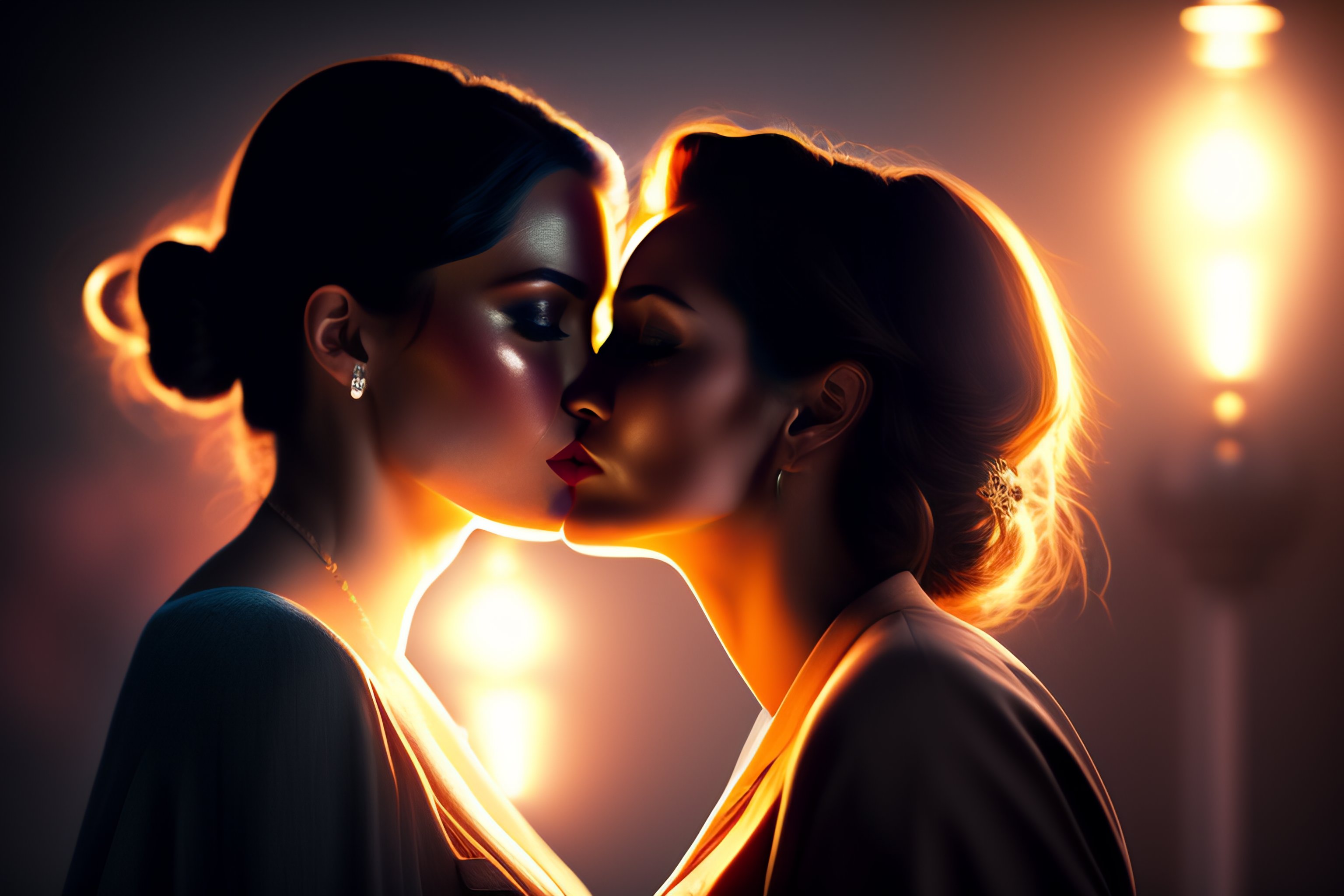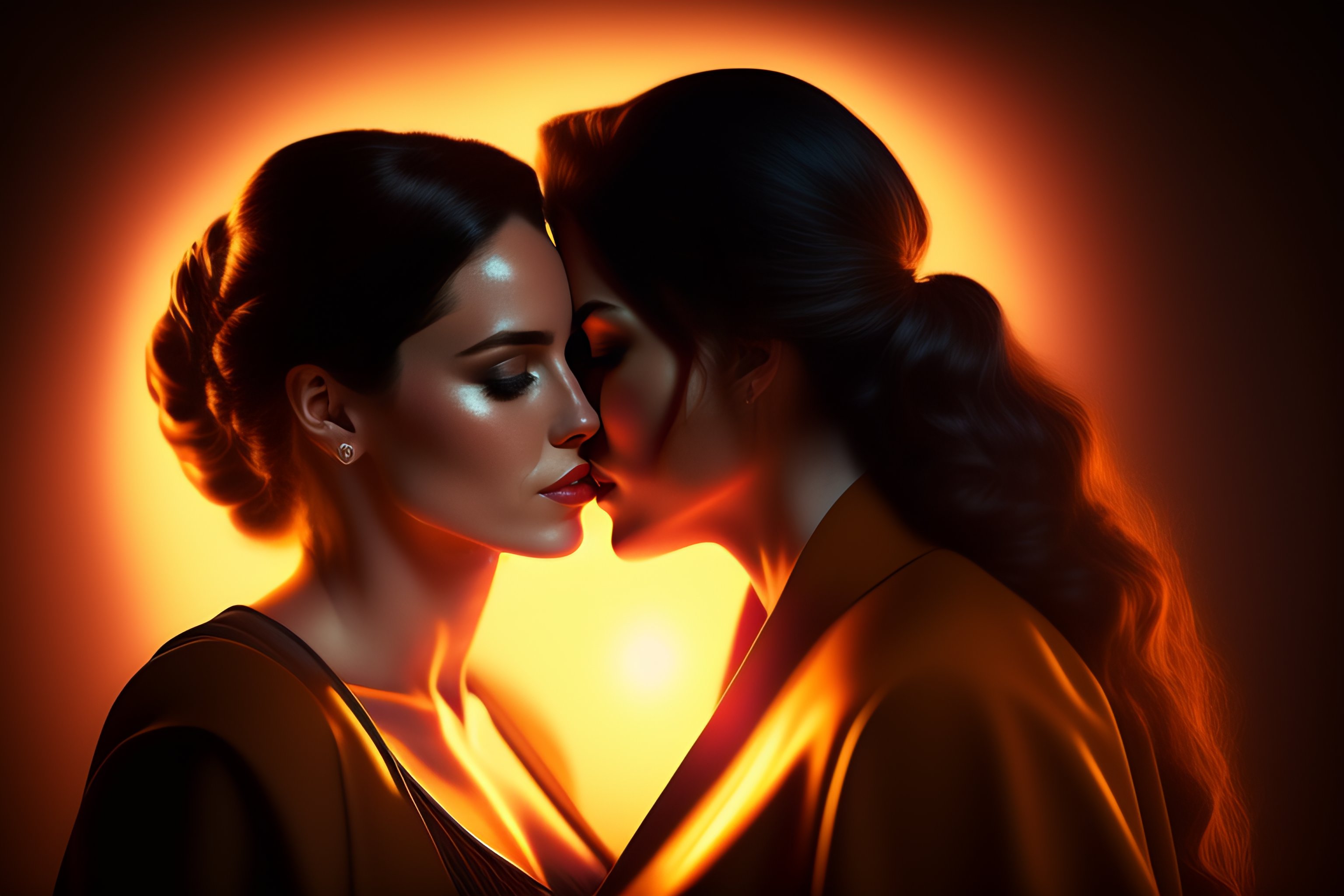 Women kiss mystery realistic lighting cinematic lighting art lllustration