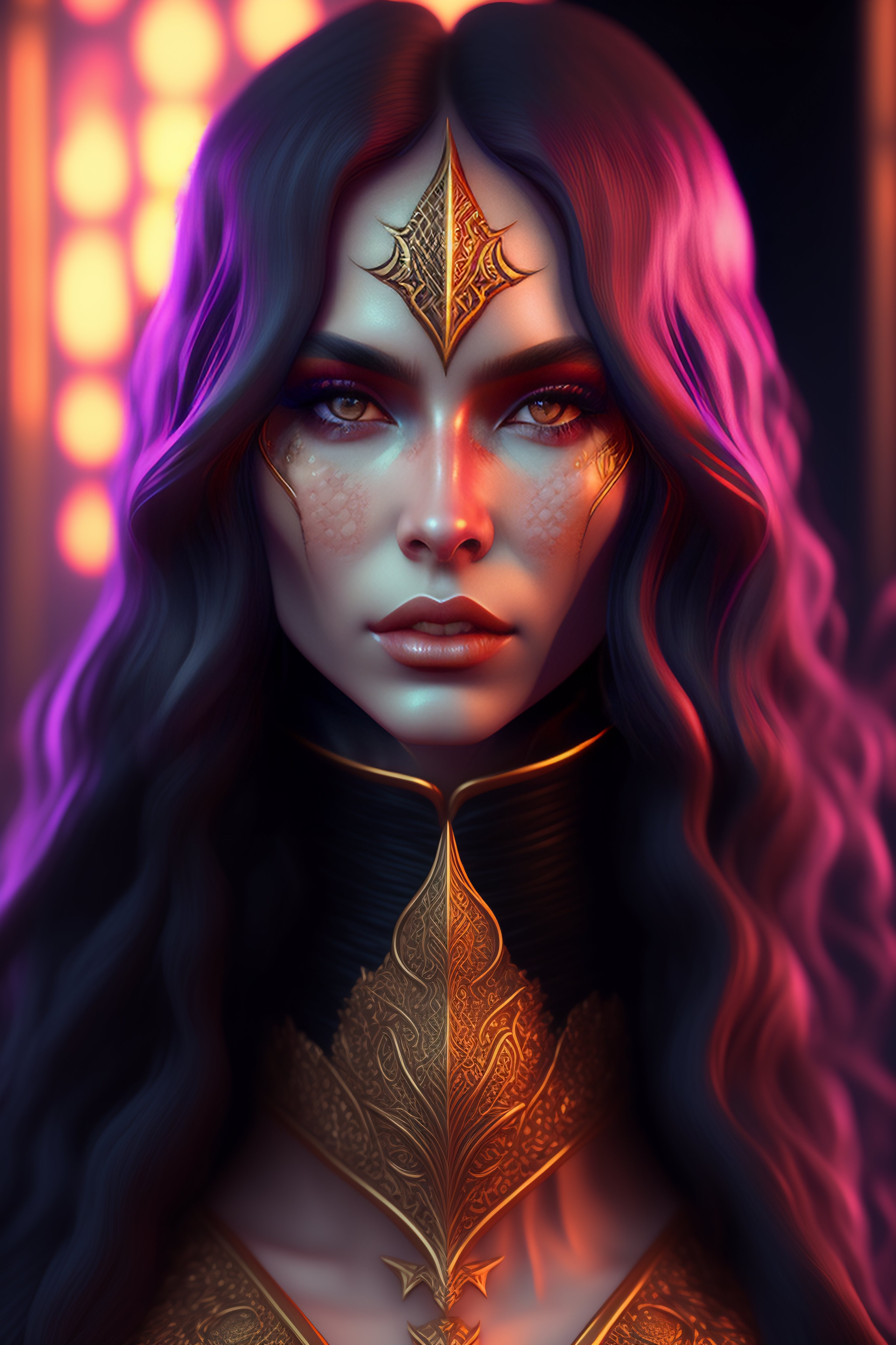 Demon wizard girl. concept art portrait of casey weldon, olga kvashi, miho hirano, super-detailed intricately-detailed gothic graphics in the artstation process color trend. unreal engine 5., 8k resolution, deviantart gothic masterpiece