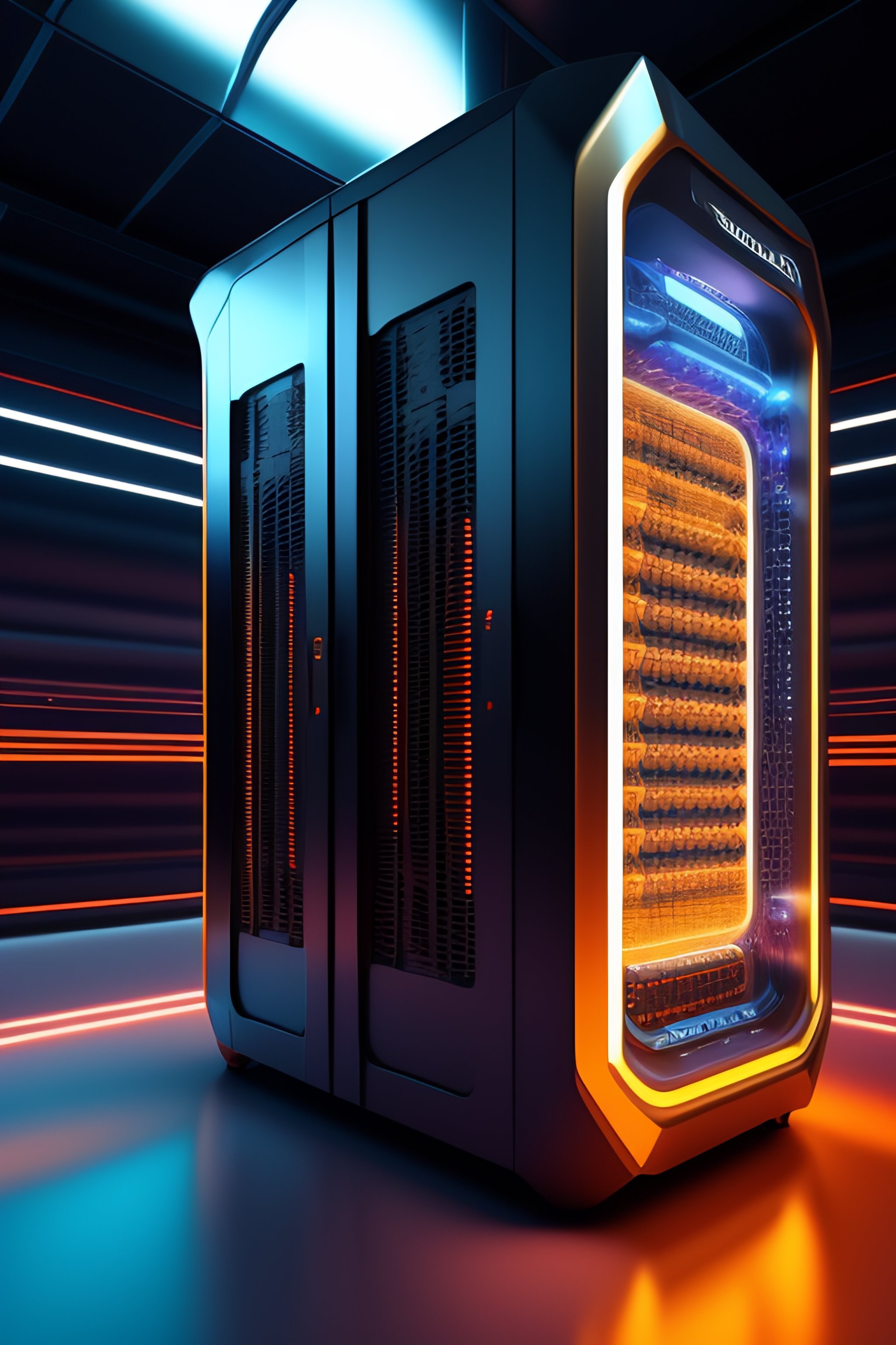 A futuristic super computer about to explode
