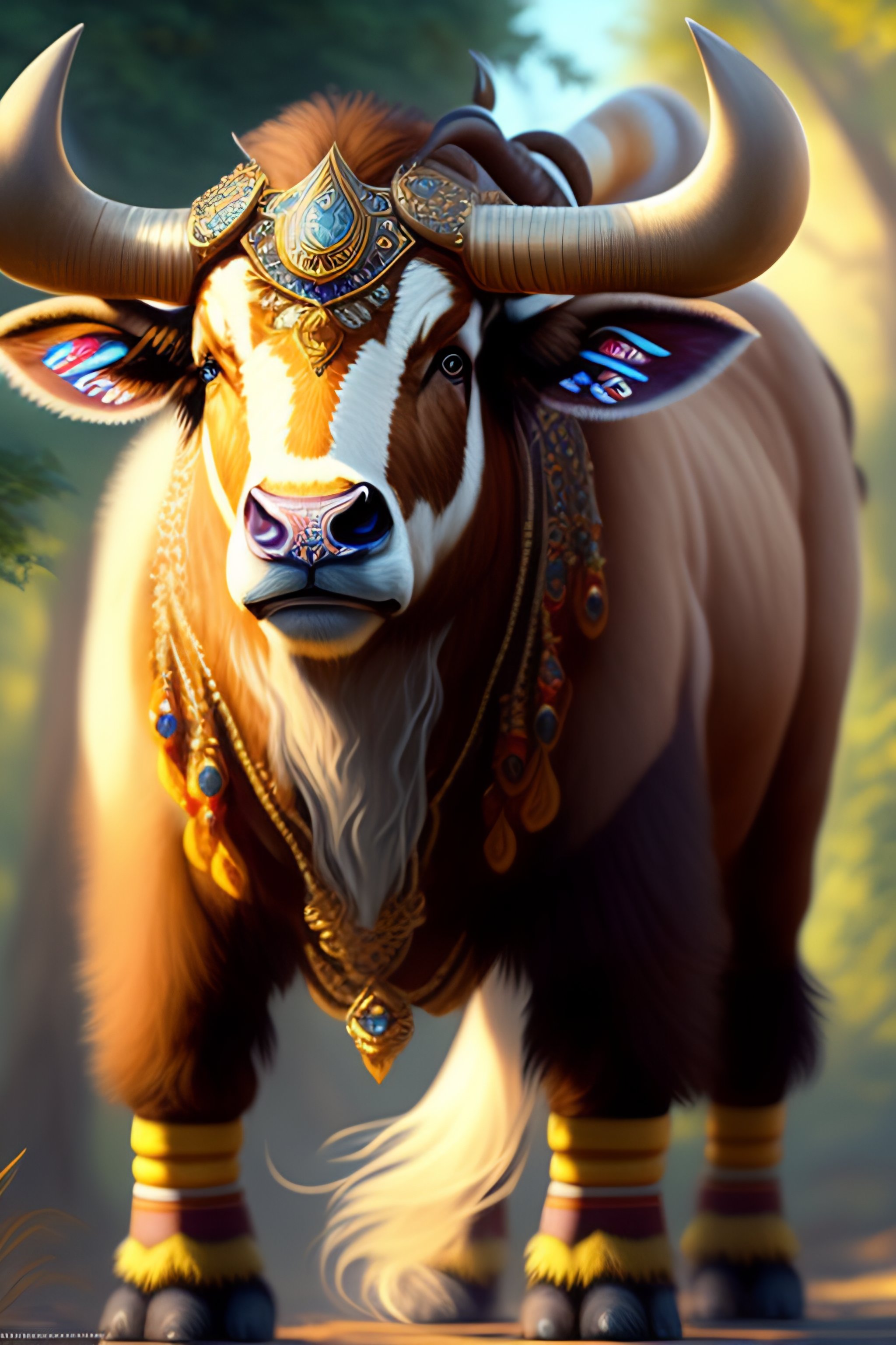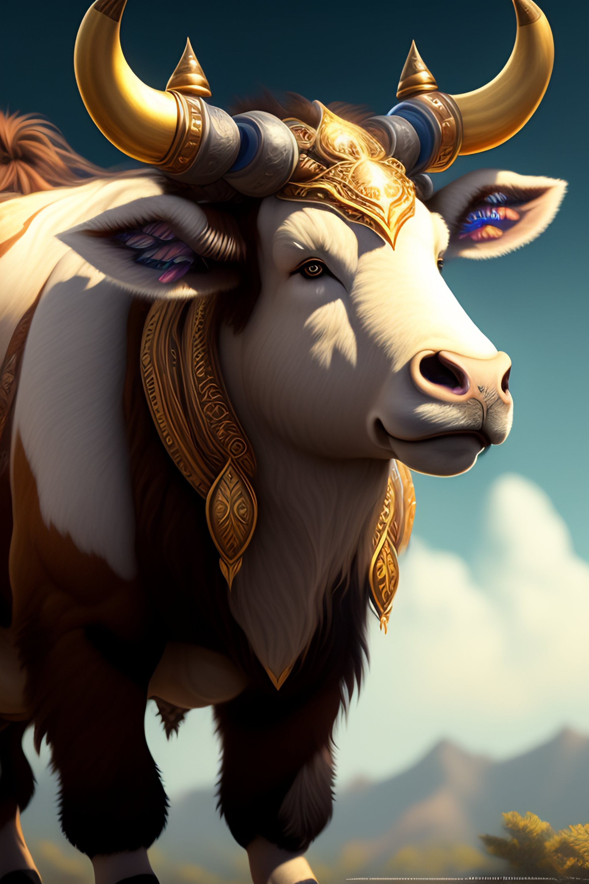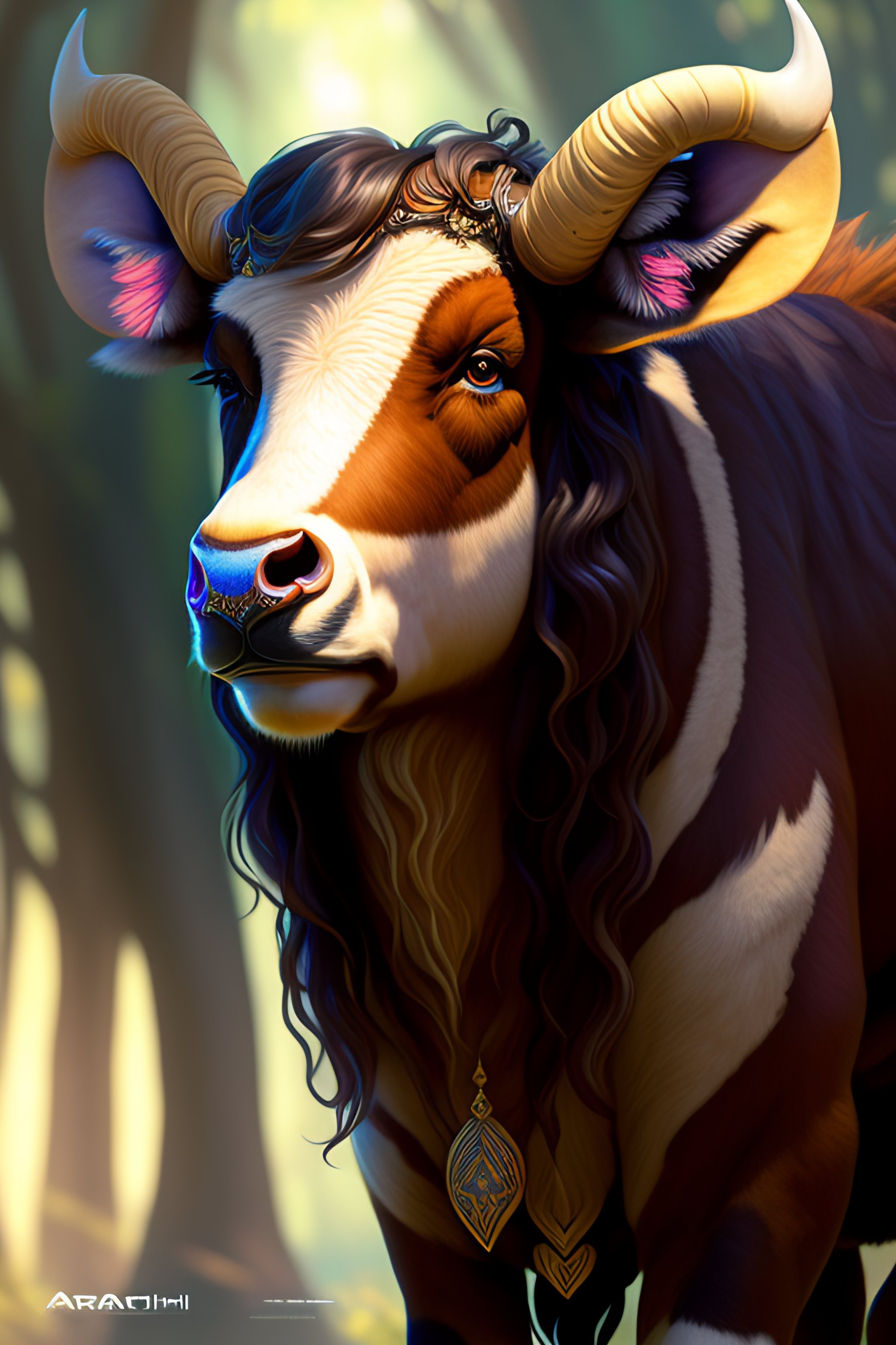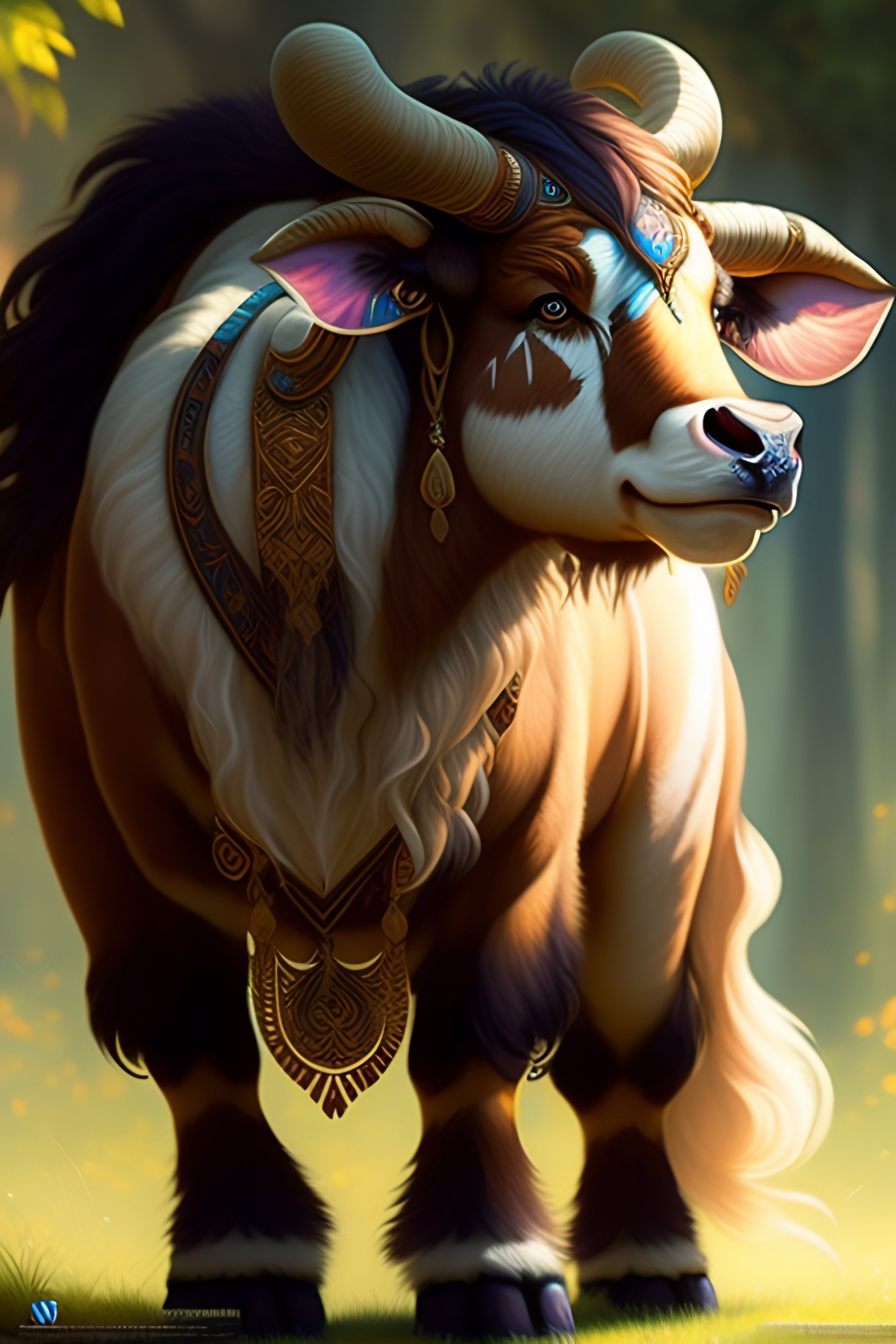 A cute tauren of tranquility, hyper detailed, character concept, full body, dynamic pose, intricate, lineart, cerpuscular rays, by yoshitake amano, alfons mucha, 8 k, unreal