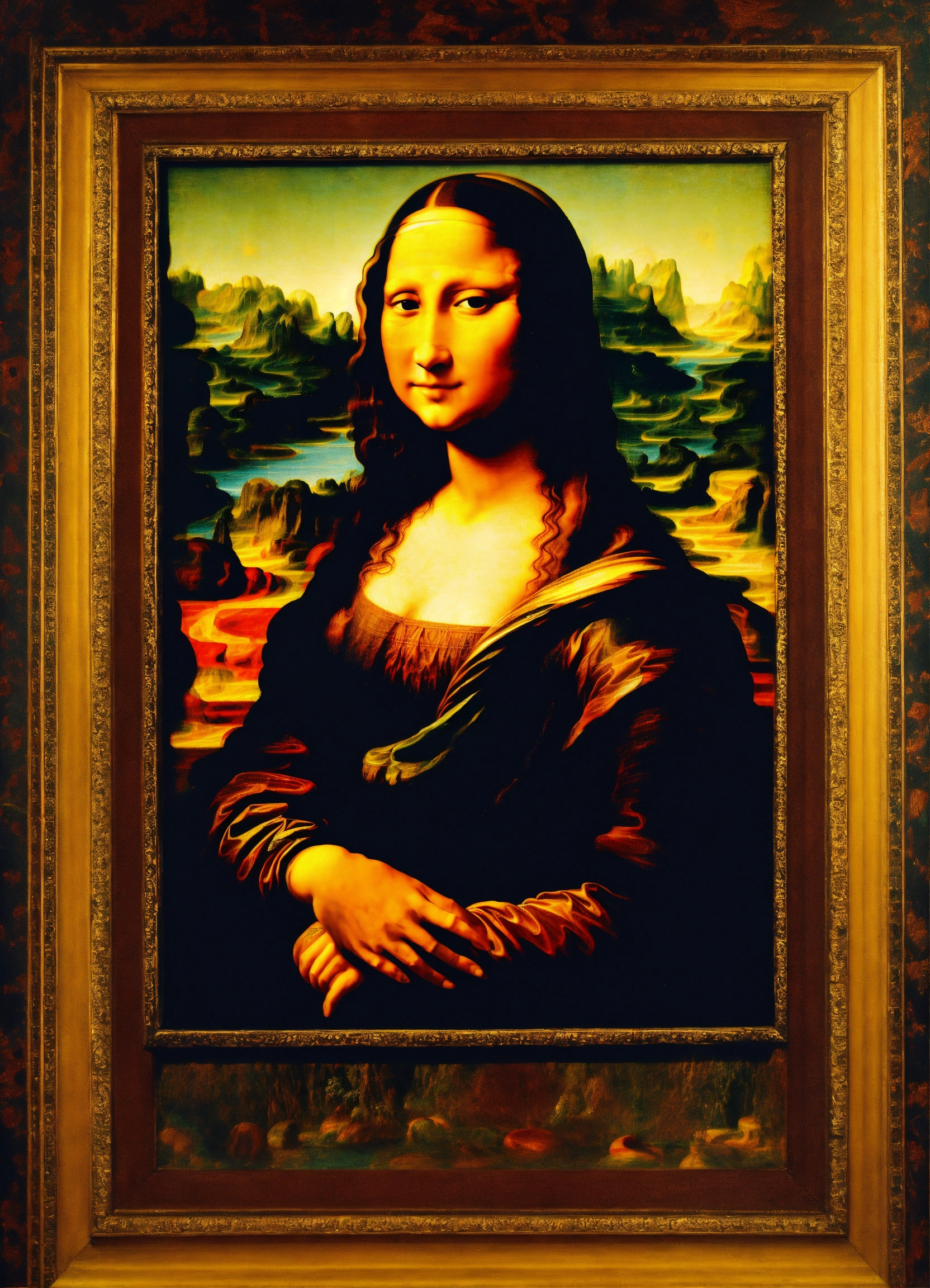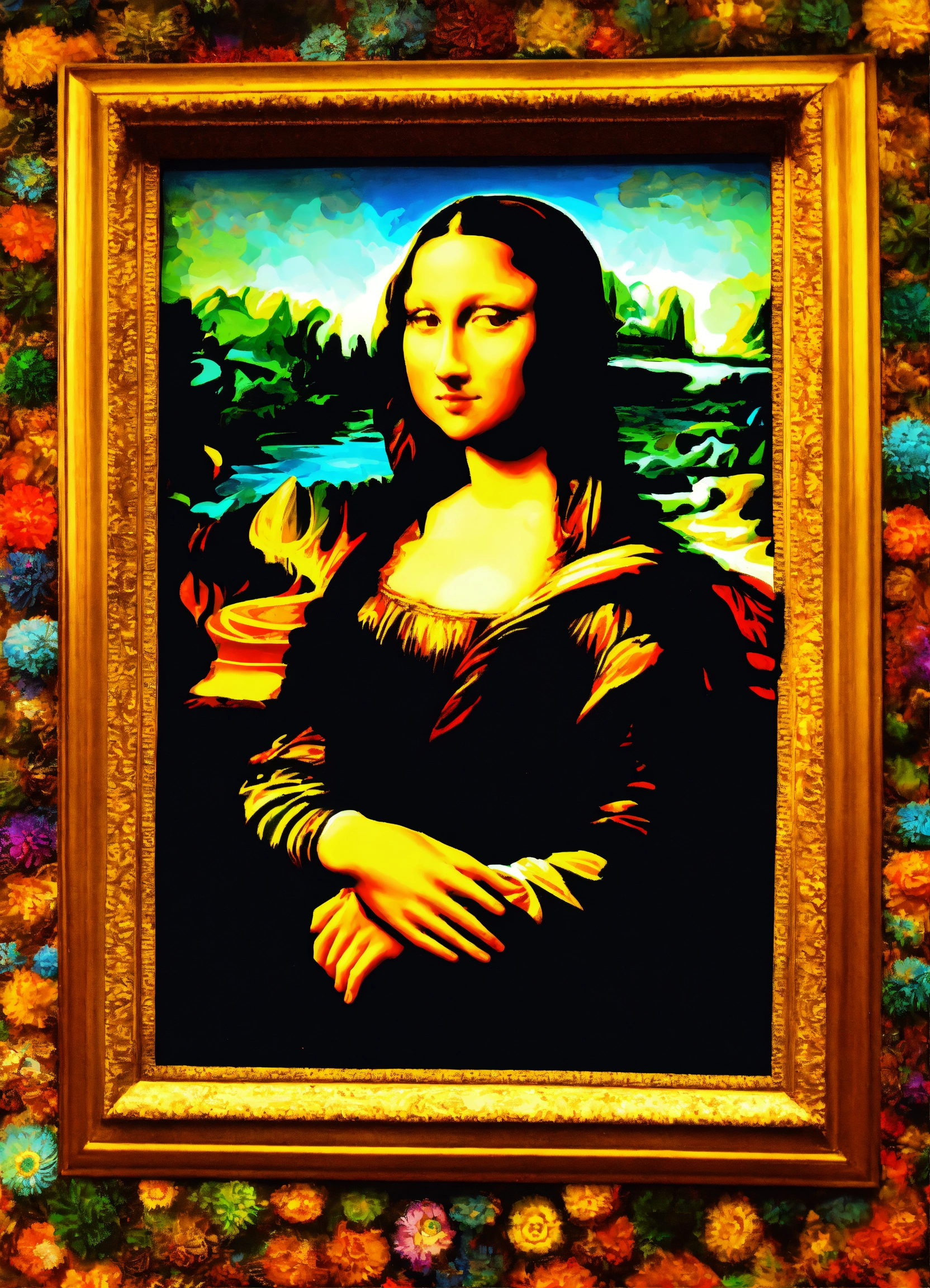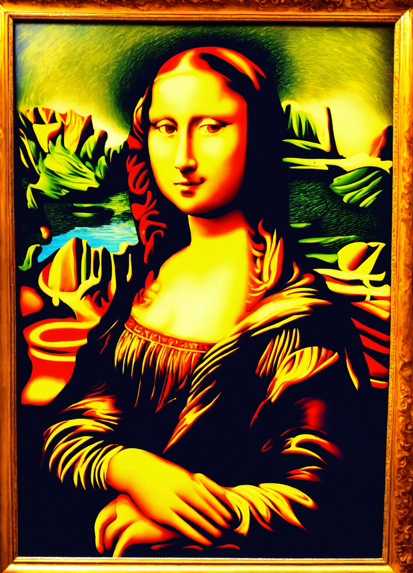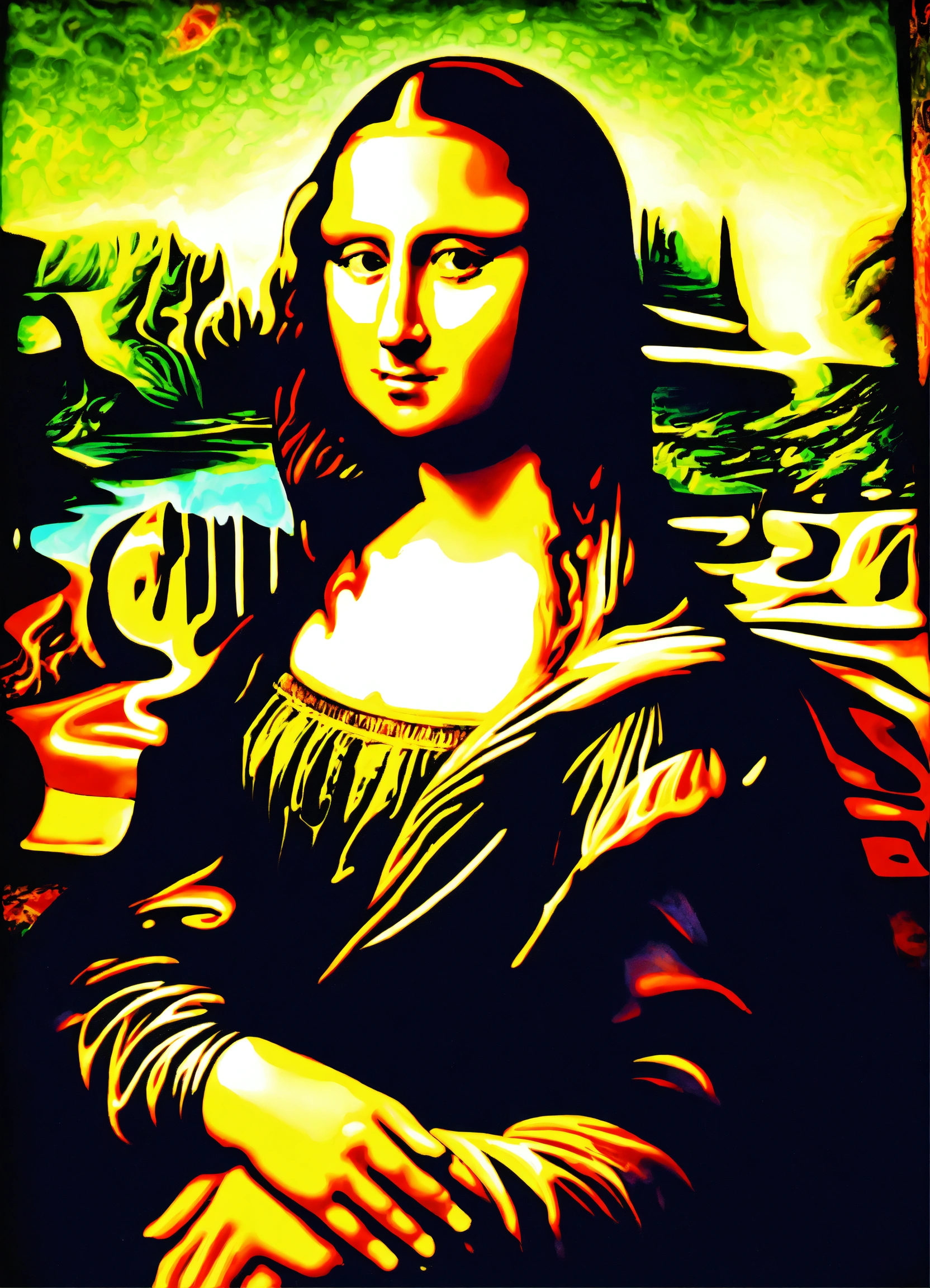 Hallucinatory mandelbrot fractal image super complex superimposed on mona lisa painting