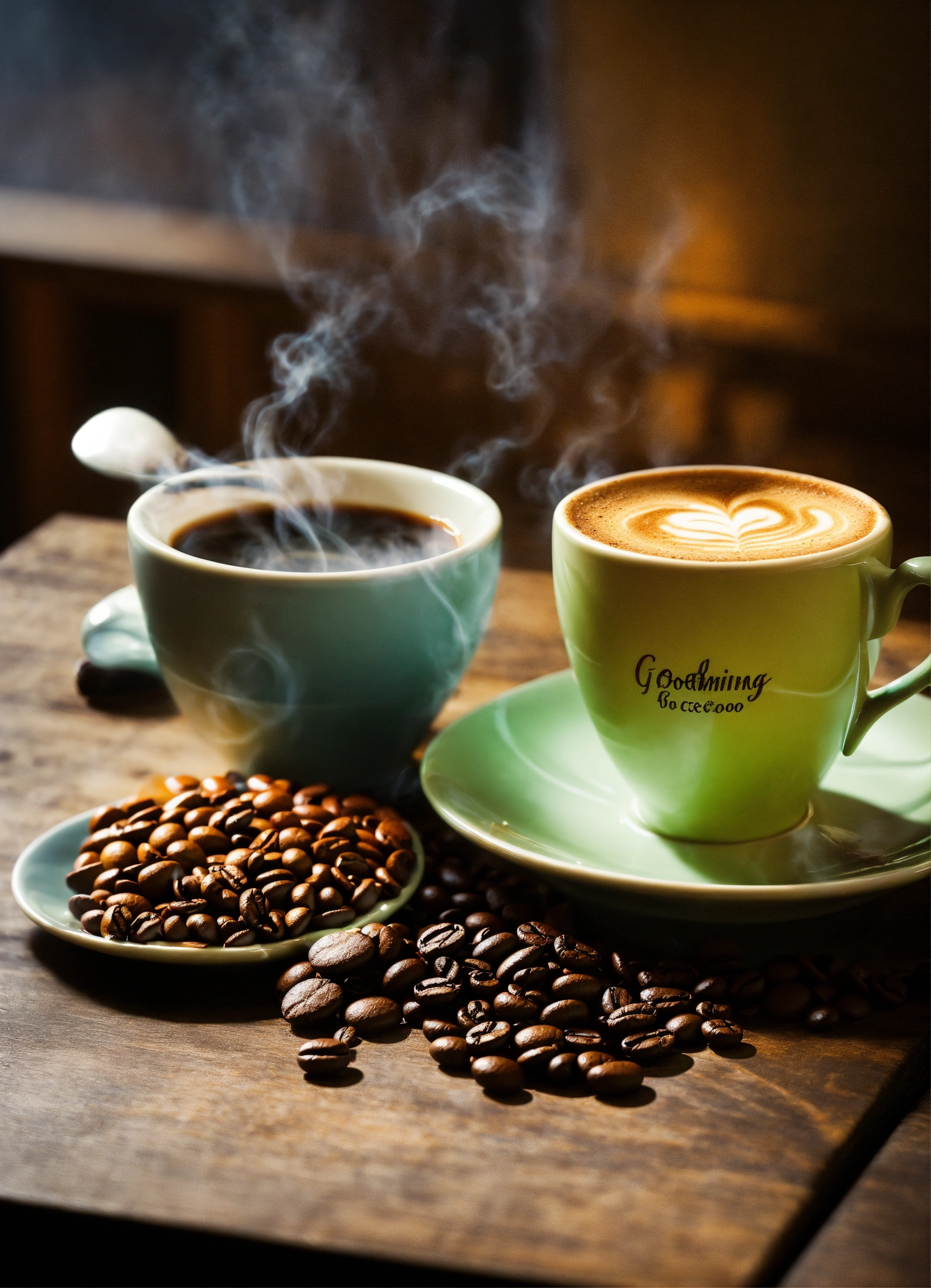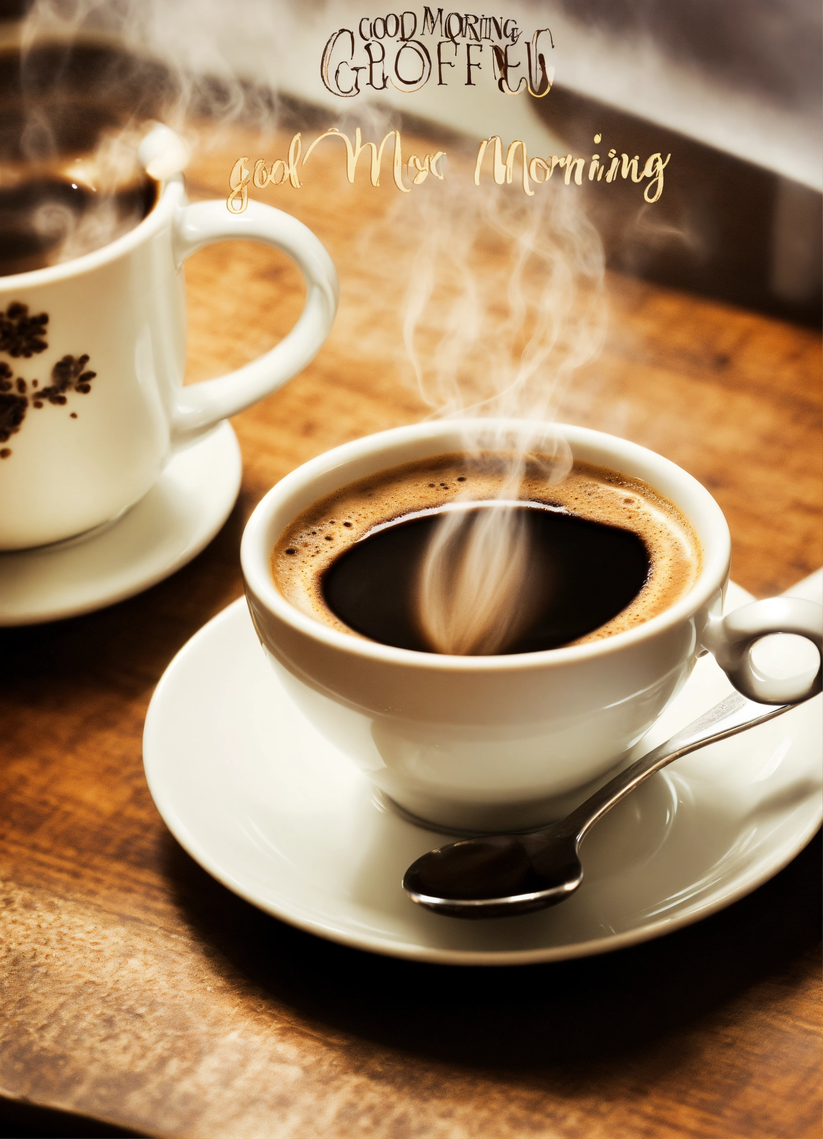 Create a facebook book post as follows, steaming cup of coffee with english breakfast, with words "good morning"