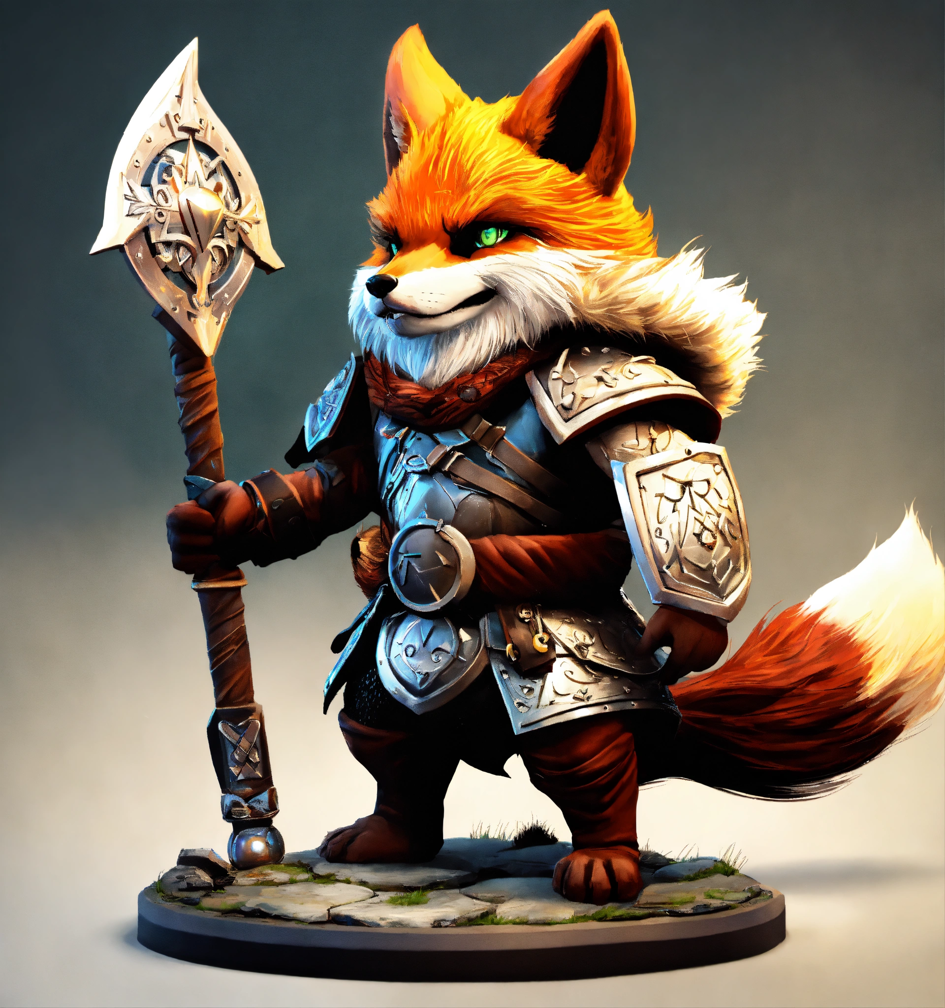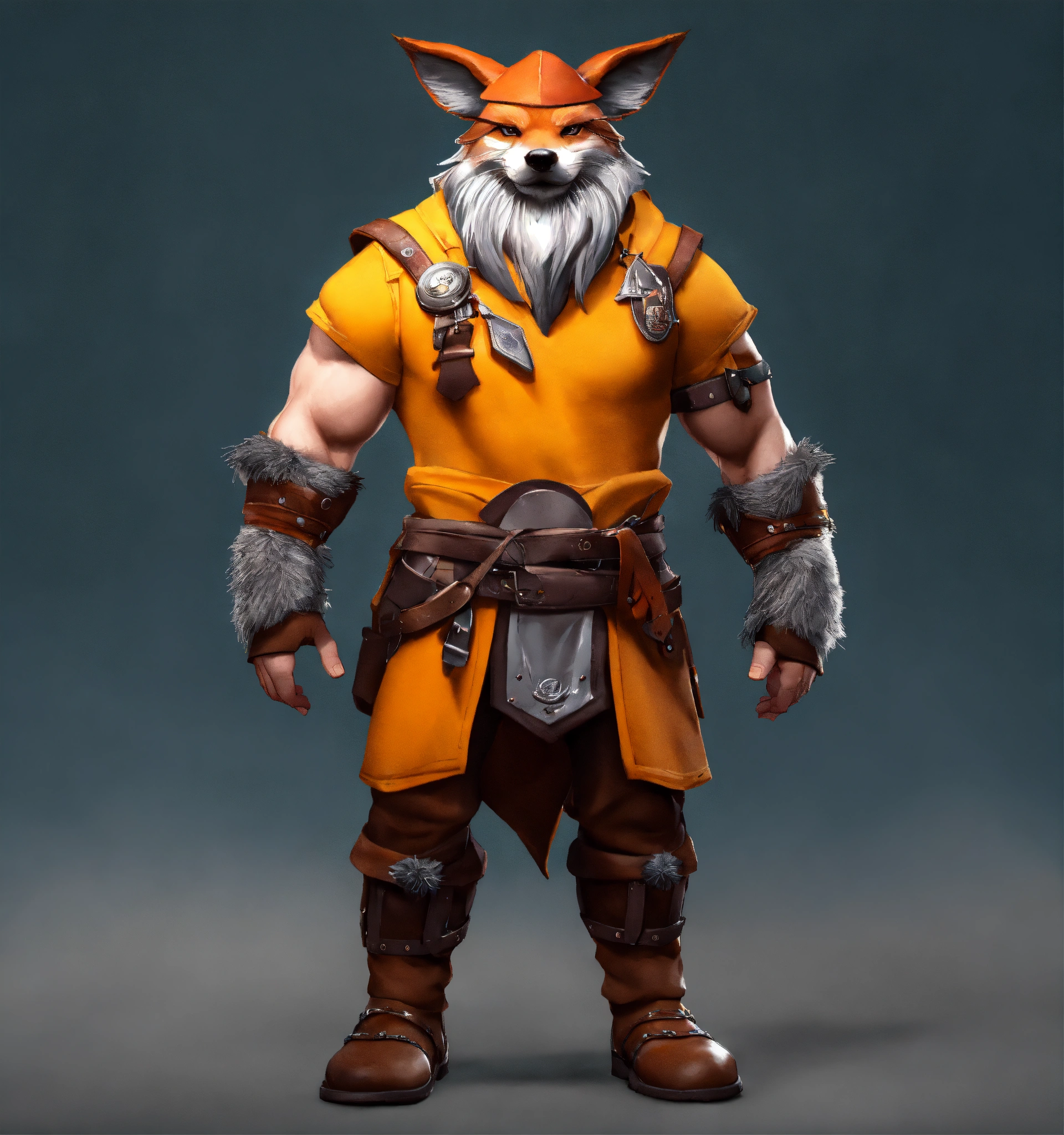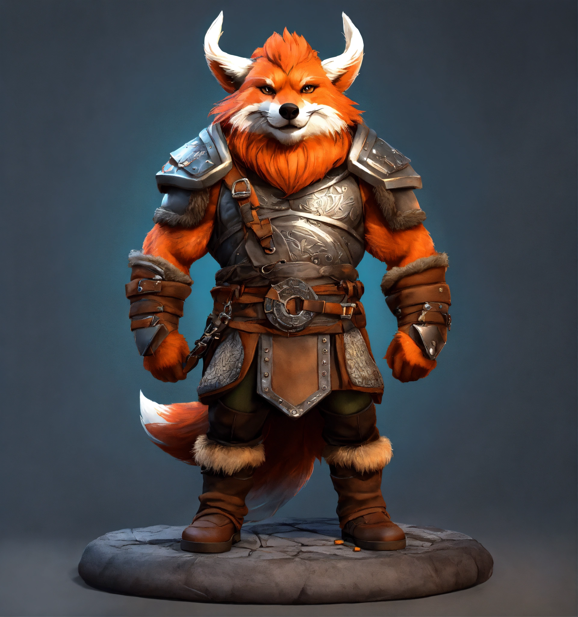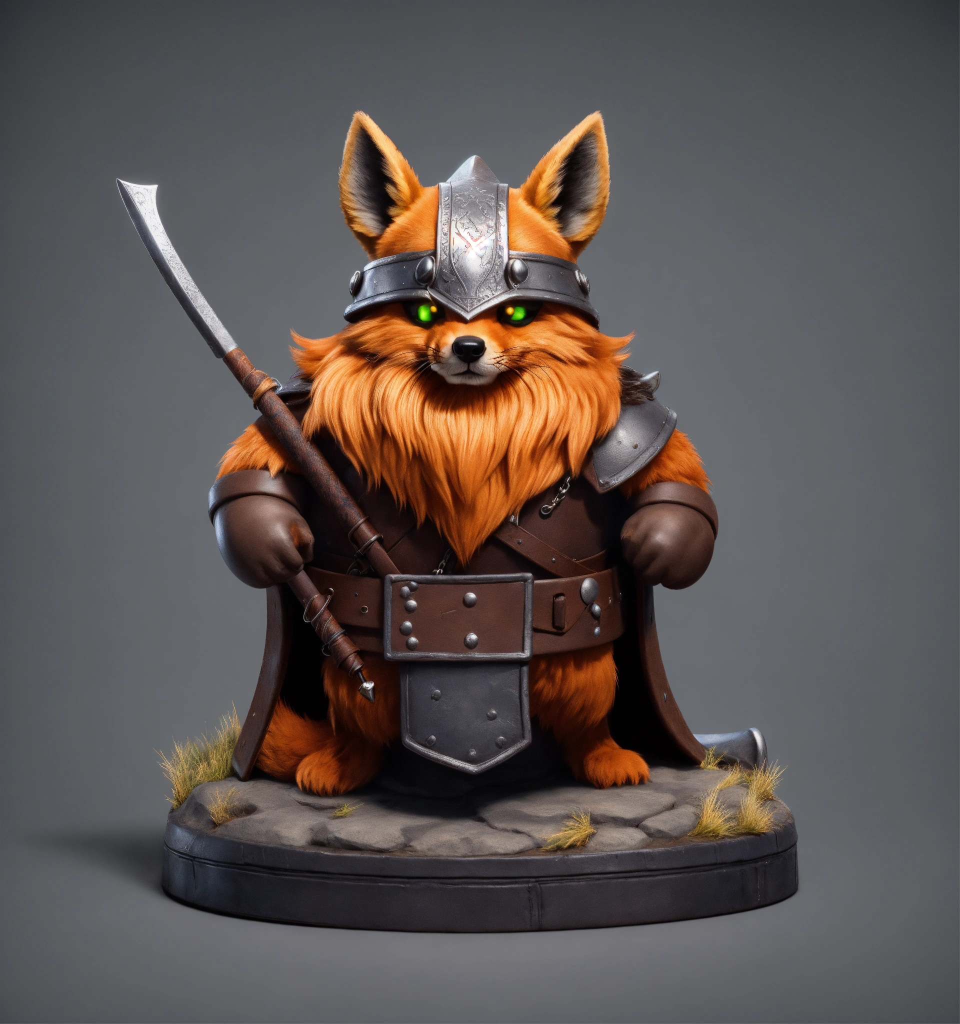 Game character cartoonish realistic heavy metal round body wicked fox viking