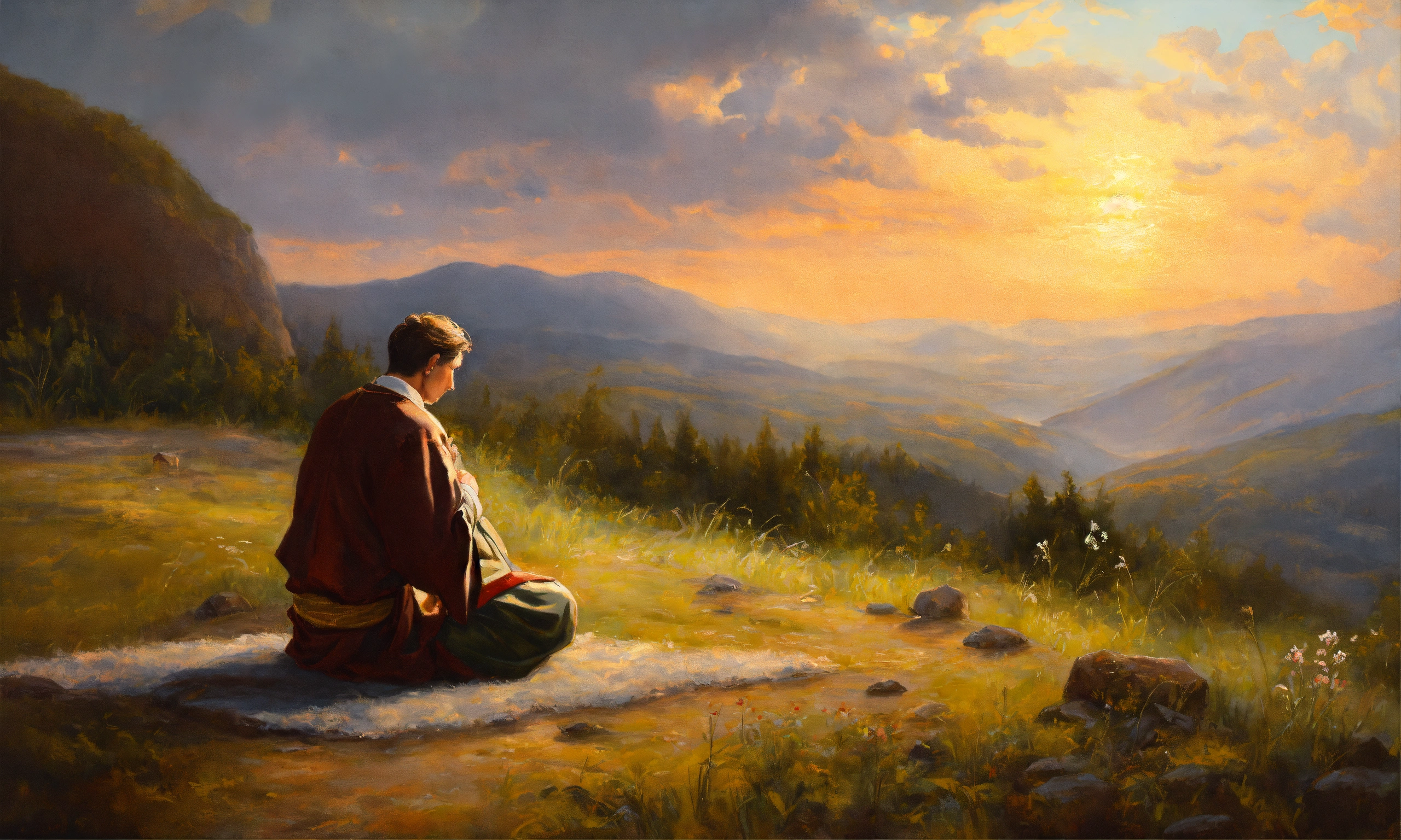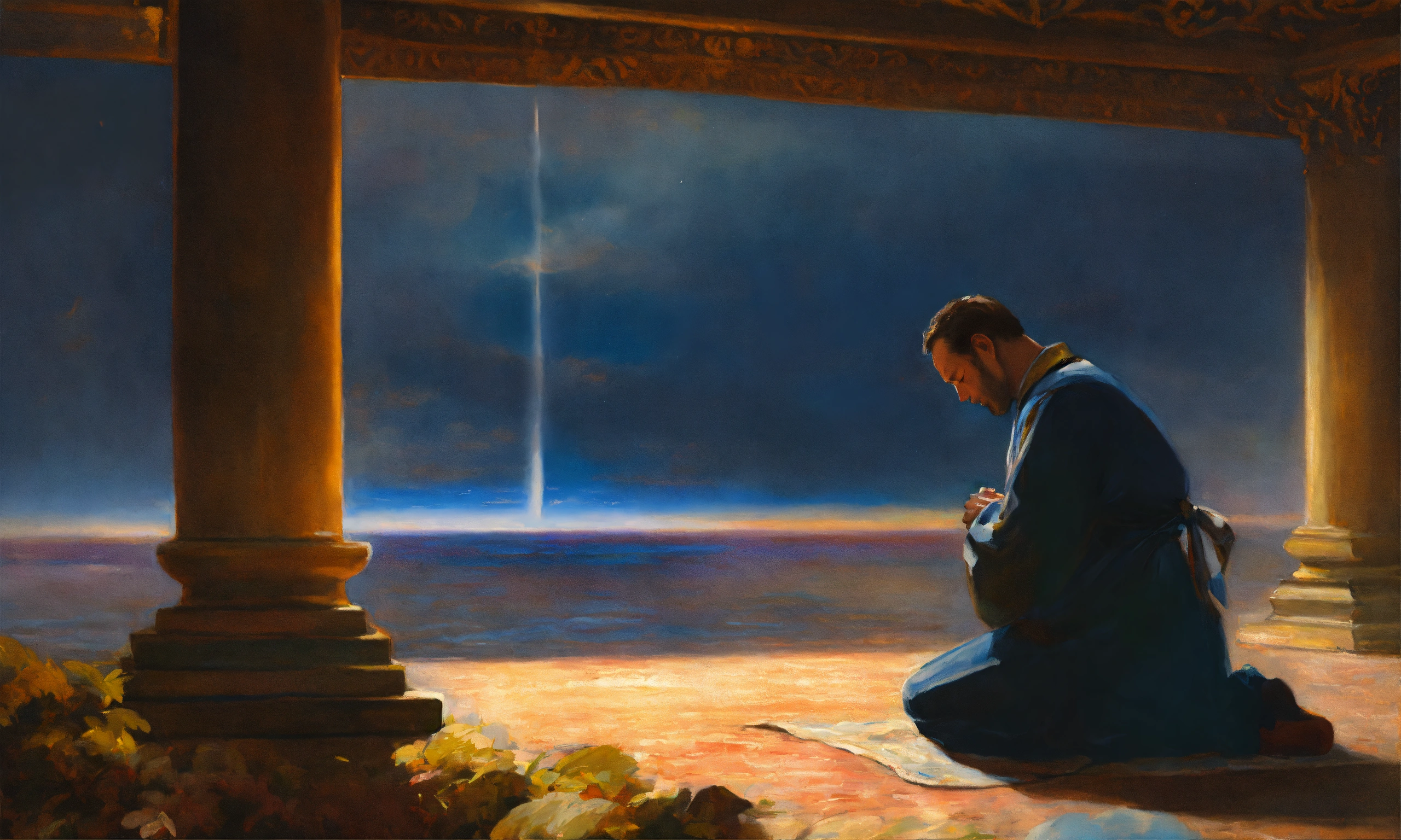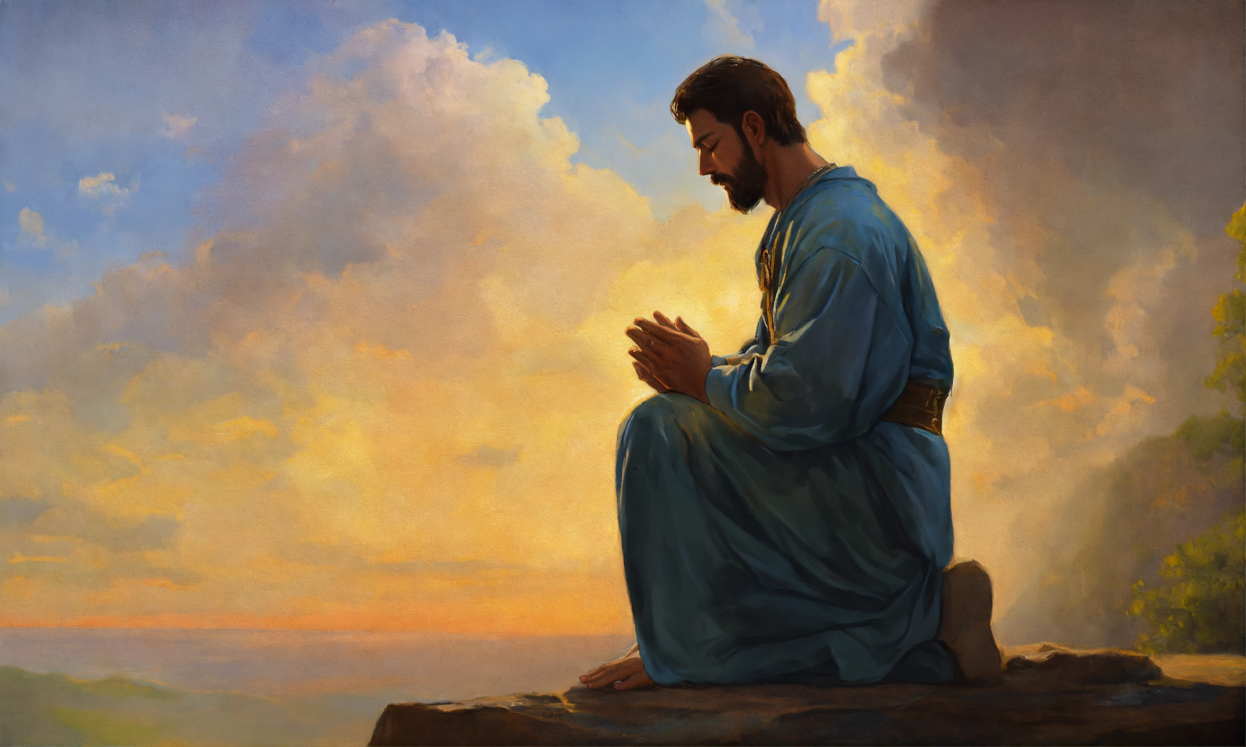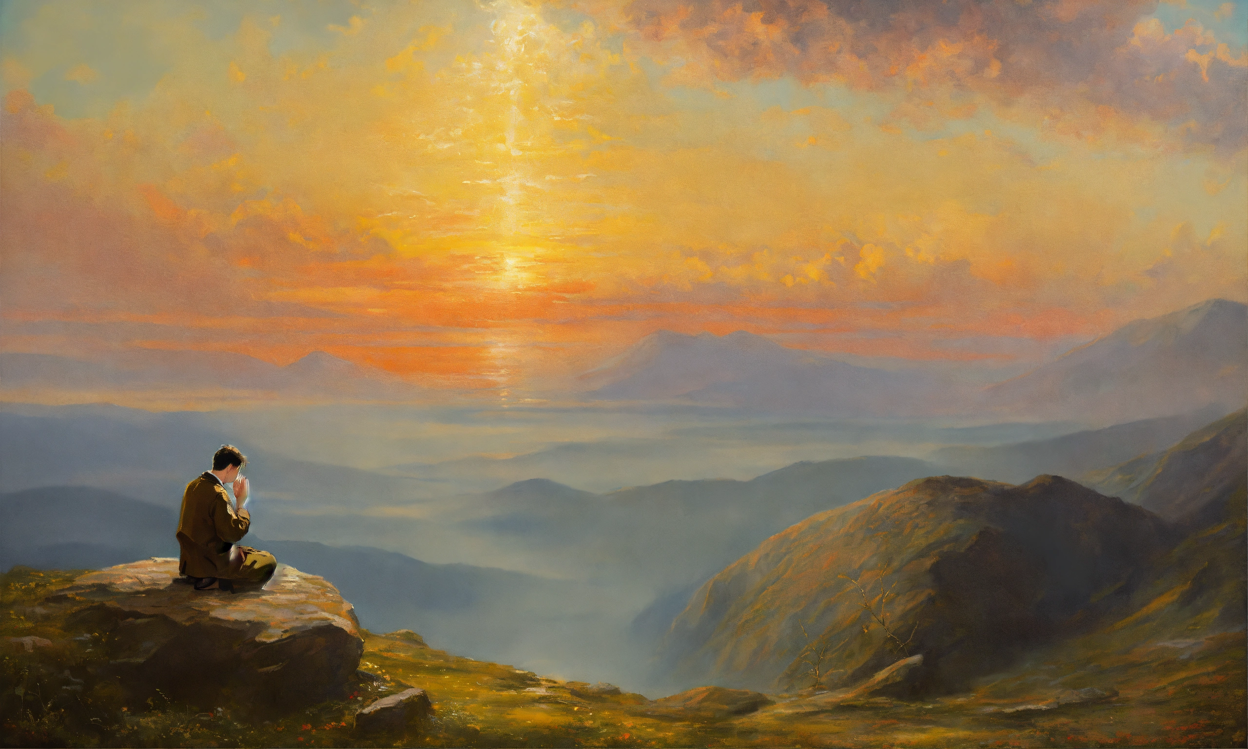 Oil painting of a man praying to god