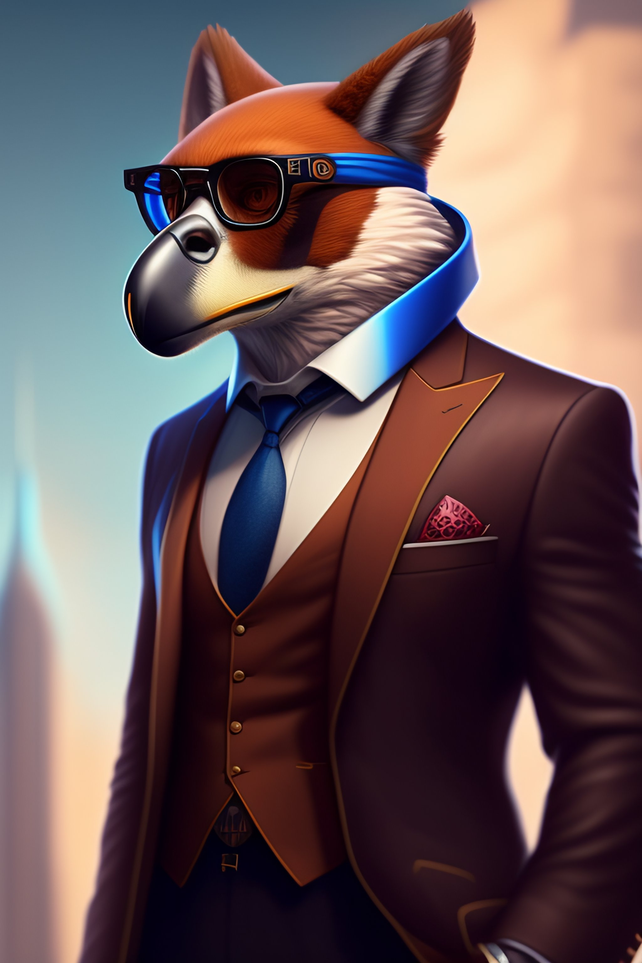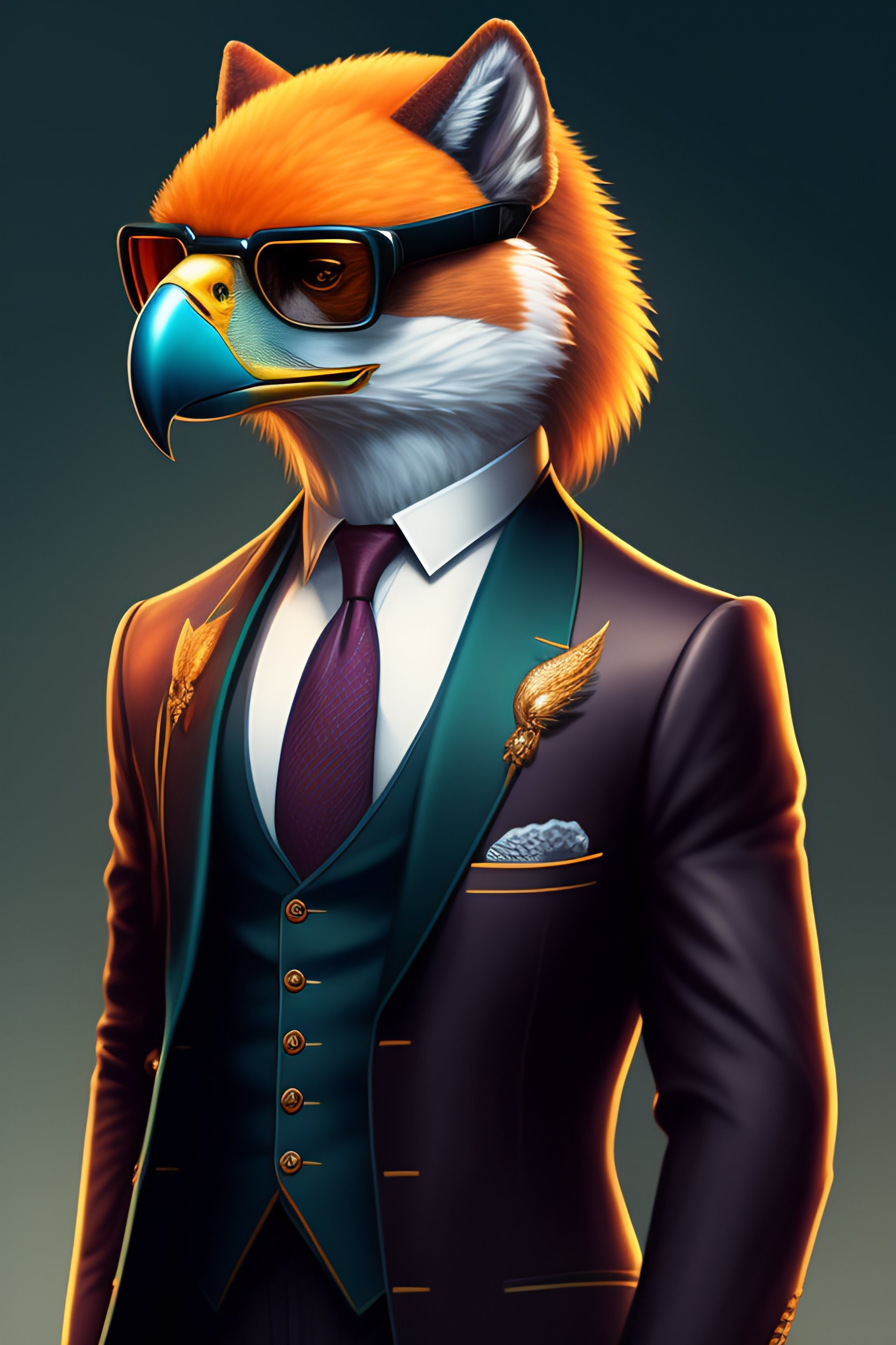 Anthro furry humanoid eagle with glasses, three piece suit, checking watch, character concept design, painting, detailed, vivid, trending on artstation