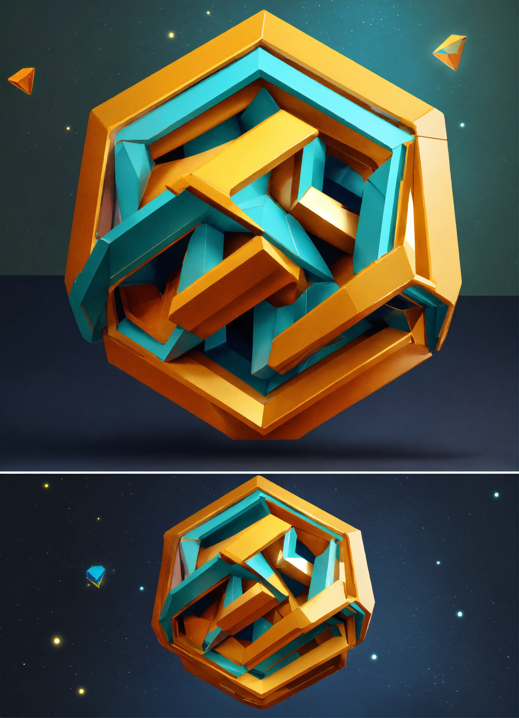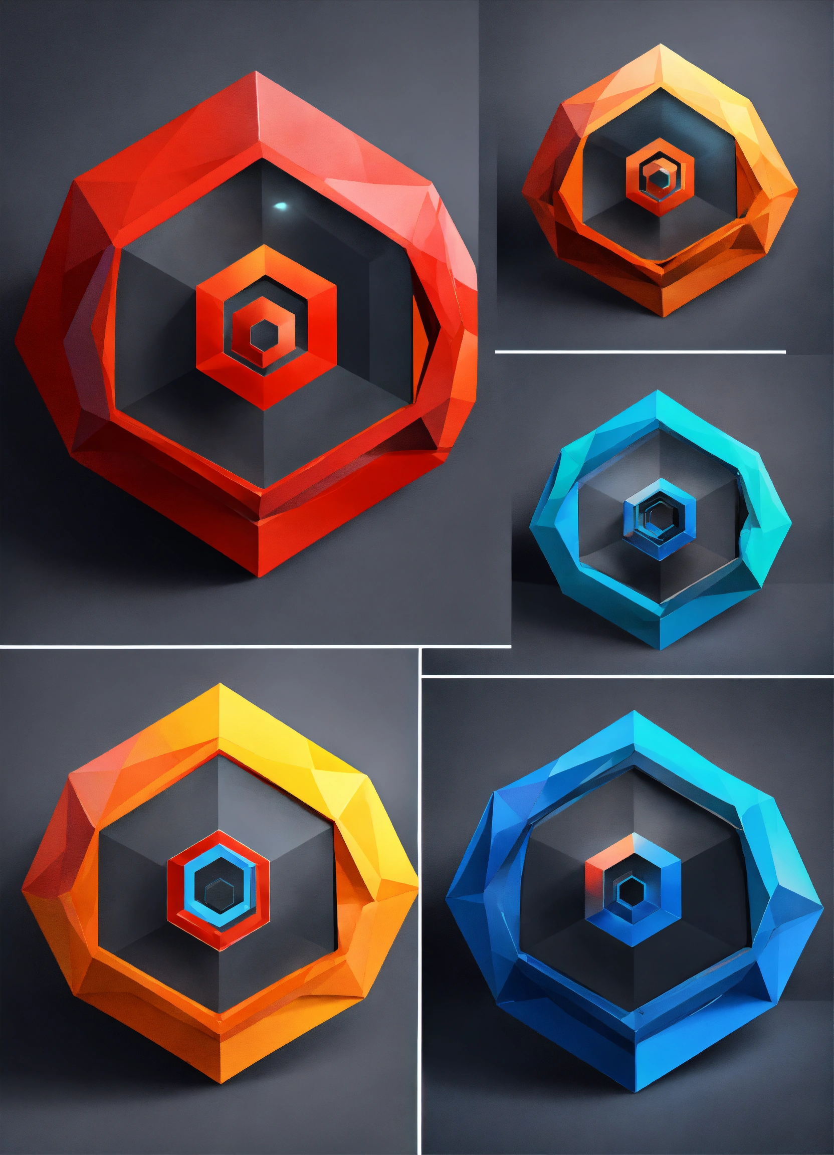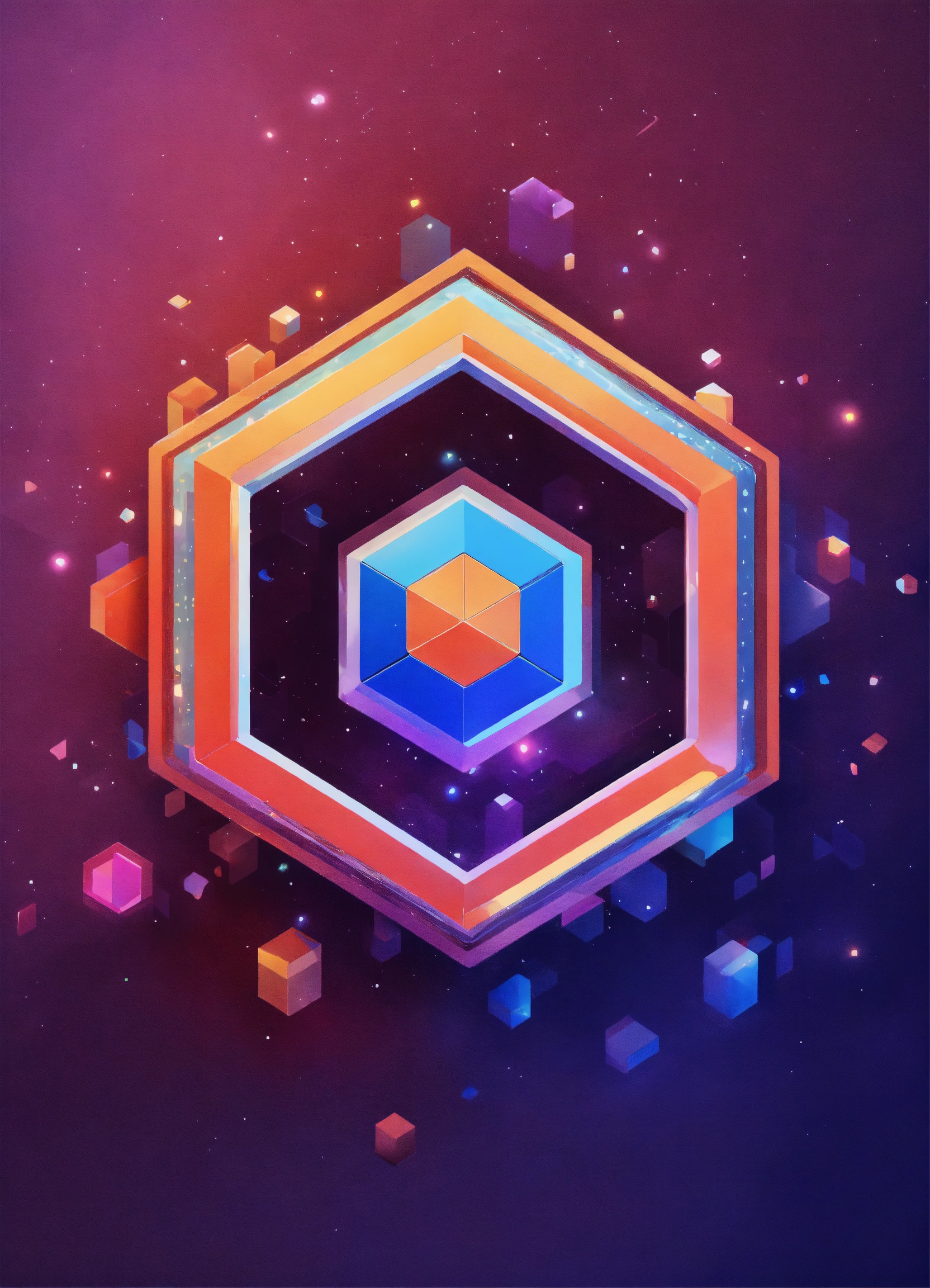 Logotipo enmarcado en un hexagono 3d, para un diseño que muestre un cometa inter estelar, marca, atomo, lupa, sofisticación, corporativo moderno, sin texto, moderno, arte vectorial, logo, icono de cometa, ciberspace, google, seo.