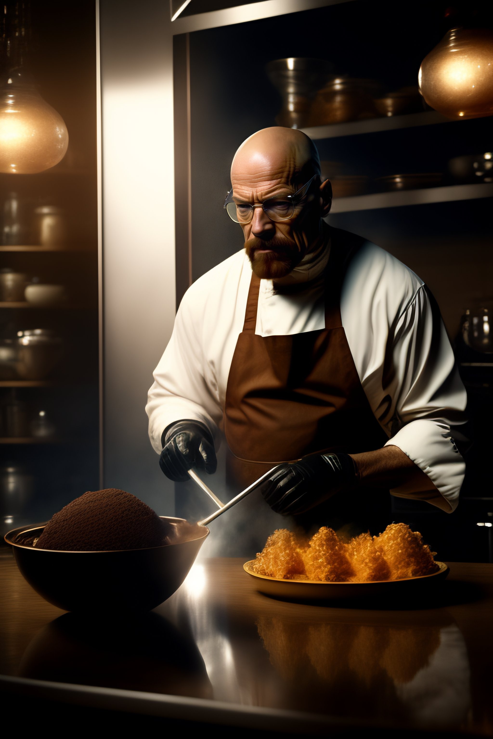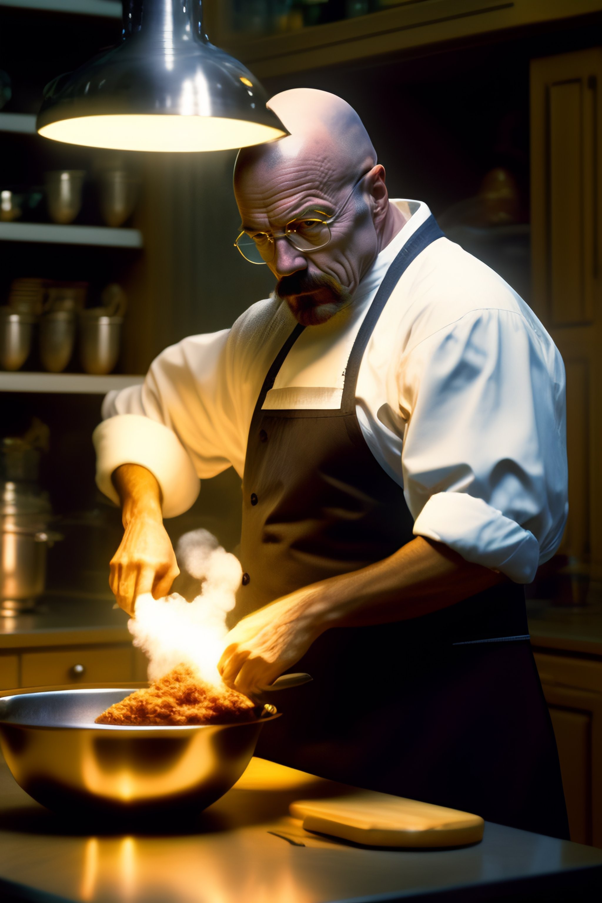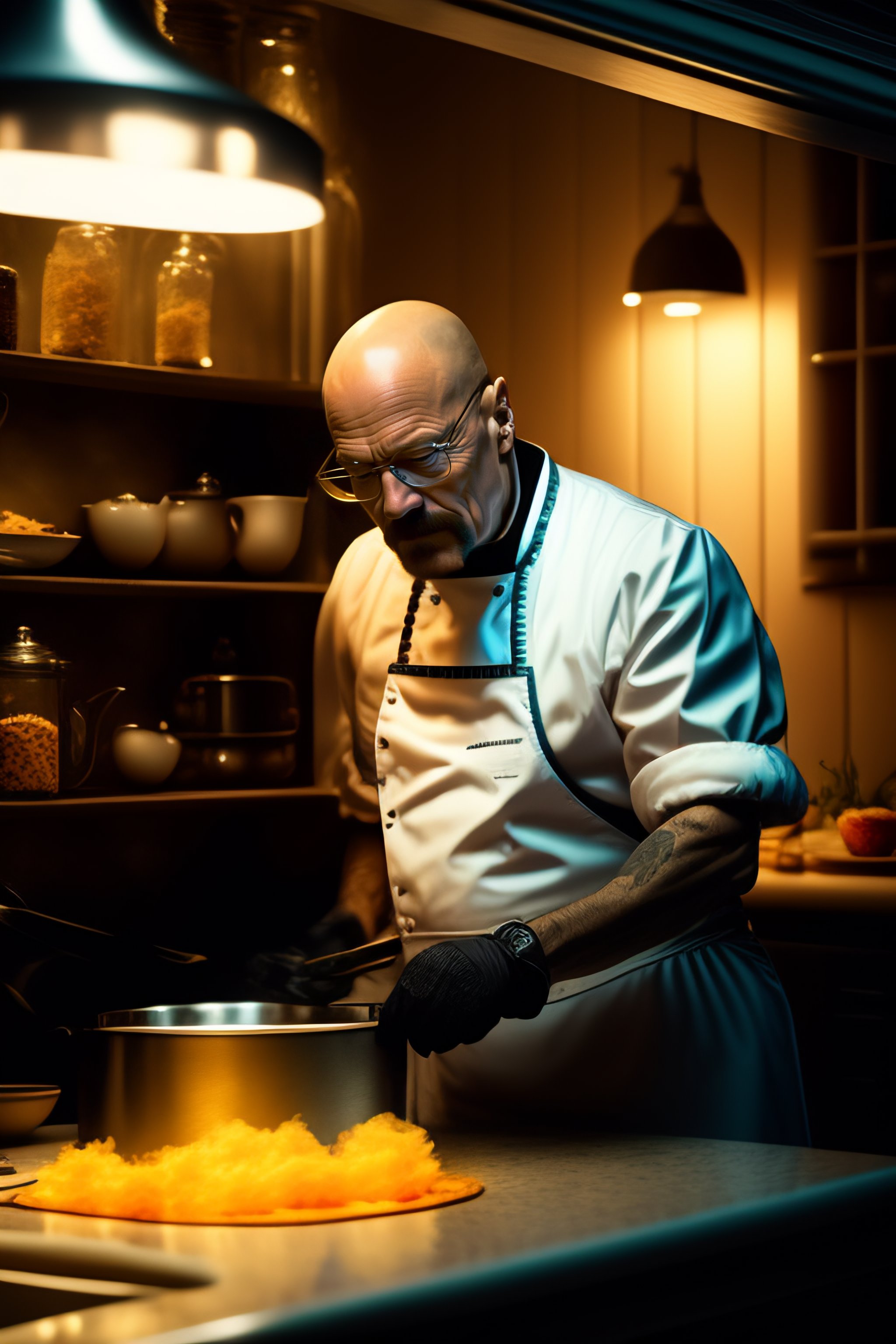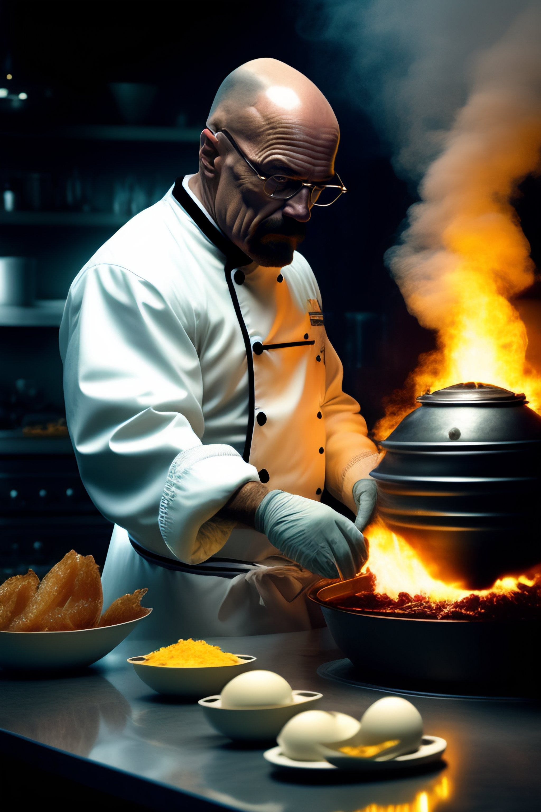 Walter white from breaking bad cooking eggs alone, by h.r. giger, aliens inspired, dark, aliens environment, - kitchen, hd, 1440p