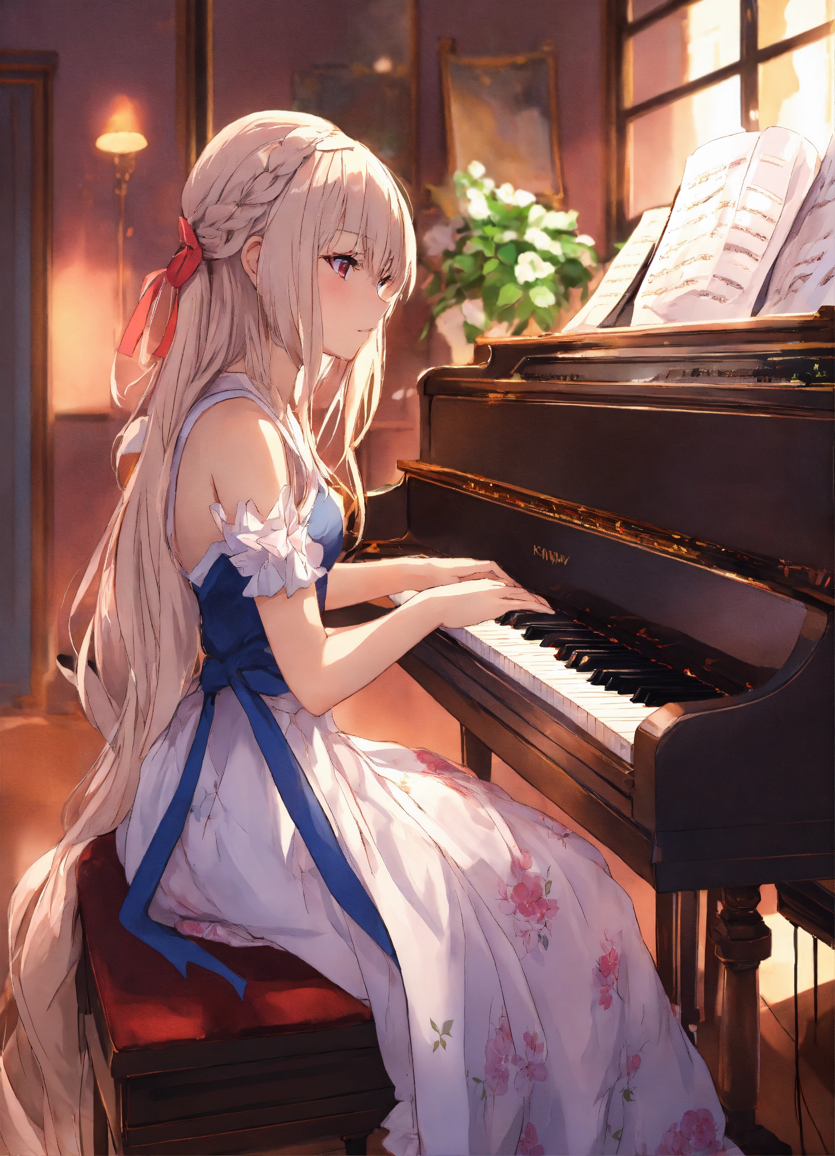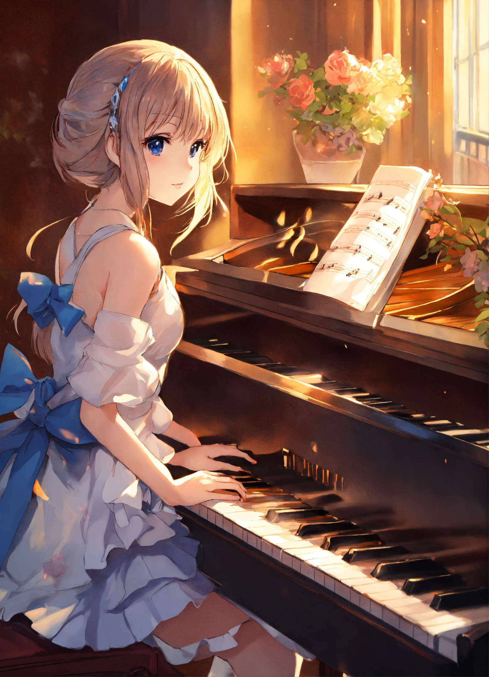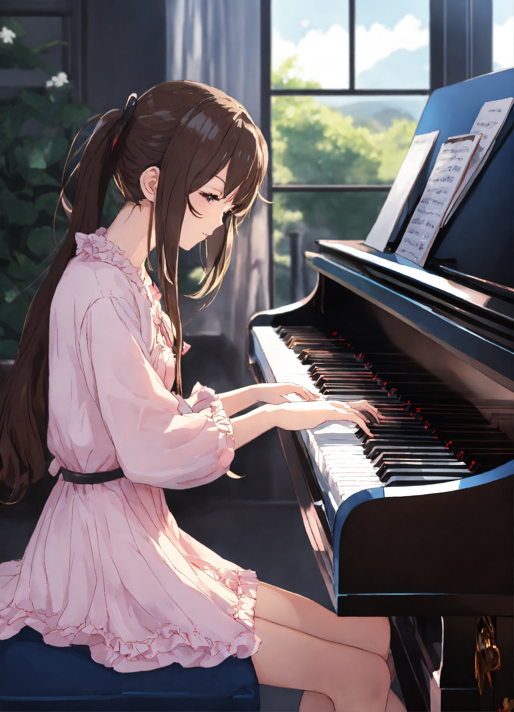 Anime girl playing piano