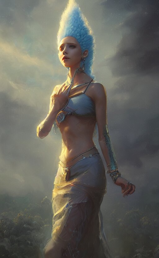A girl from final fantasy live action, marge simpson, evocative, mystical night, very very very very detailed, award winning, masterpiece digital painting by greg rutkowski, alex grey, artstation, 4 k wallpaper