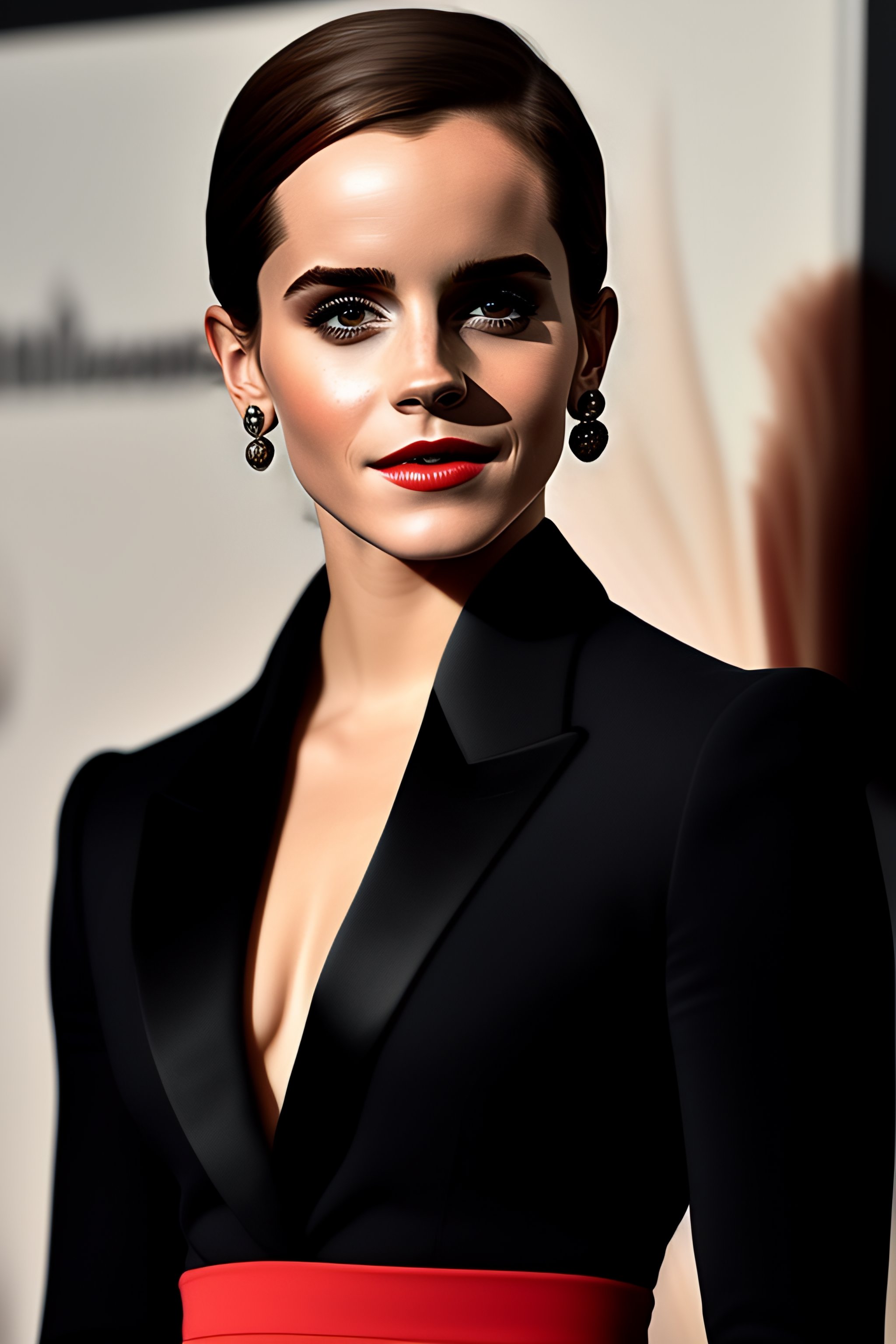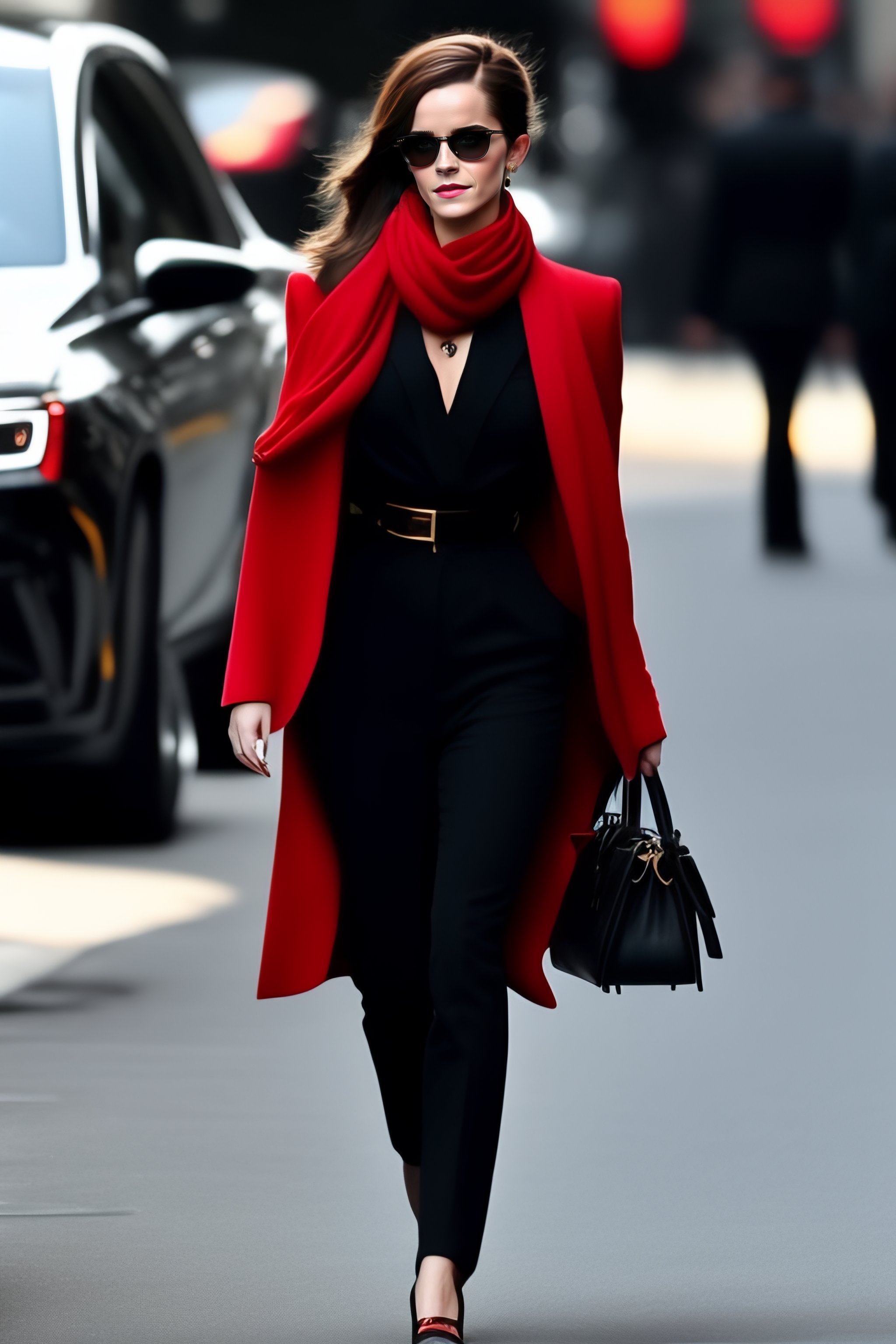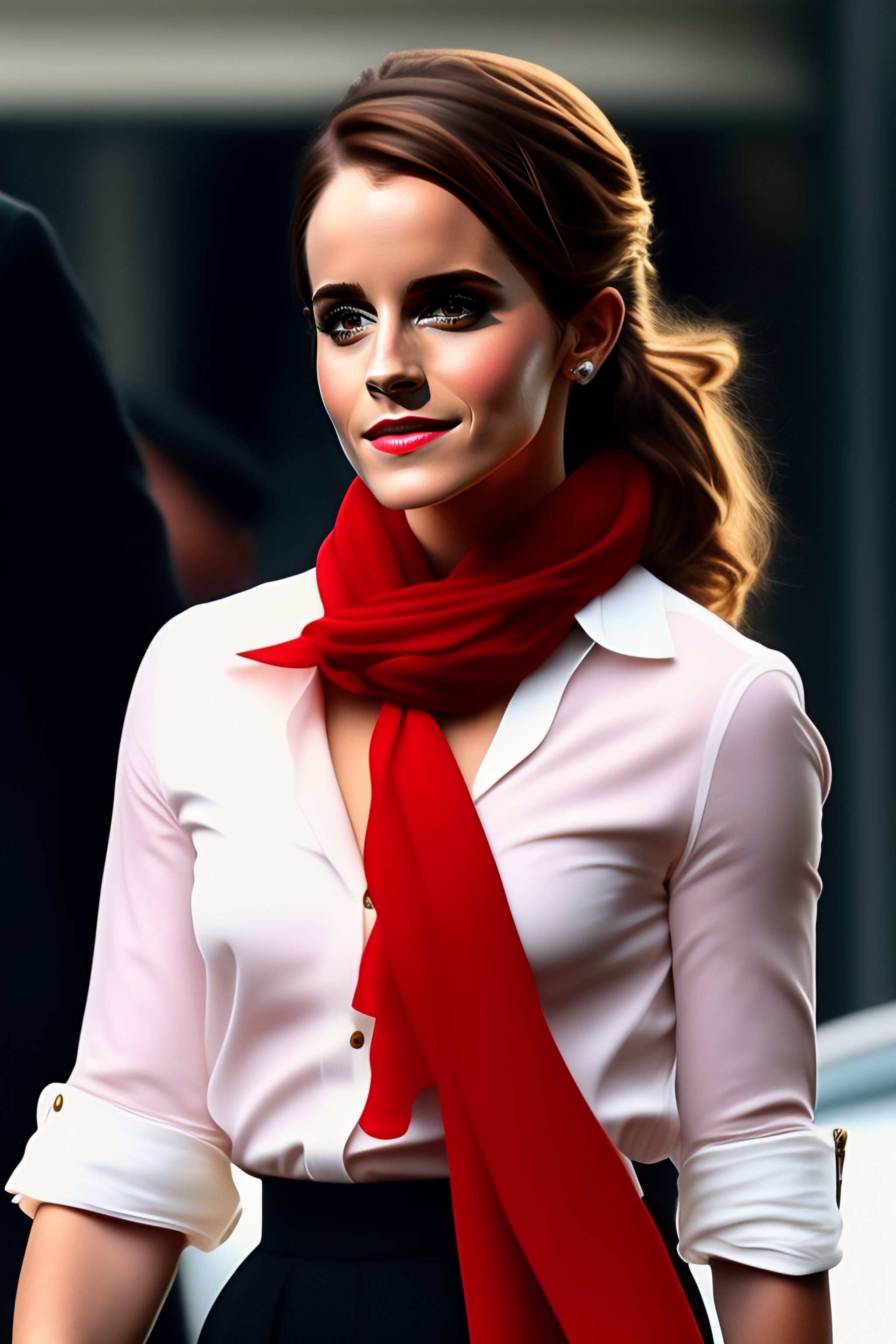 Emma watson wearing black blouse with red scarf