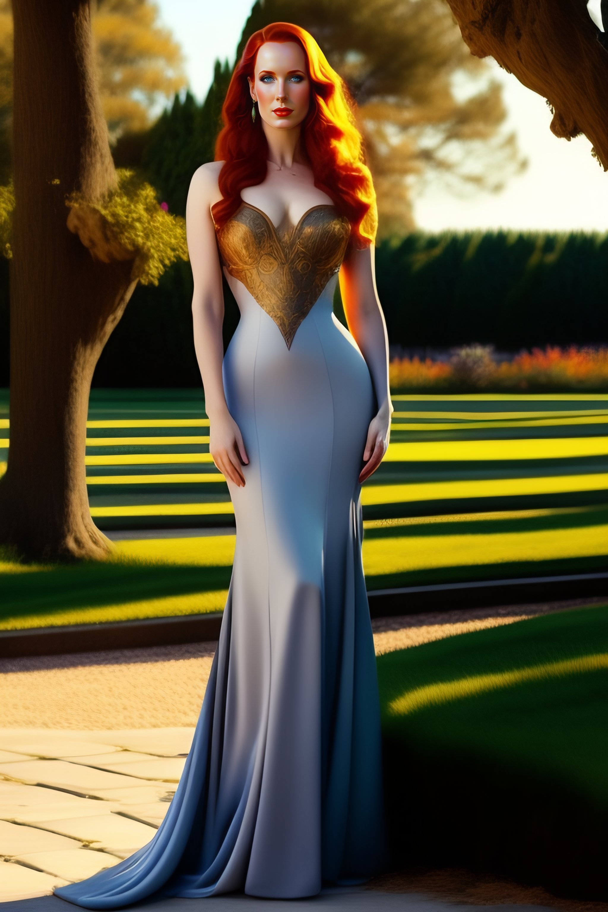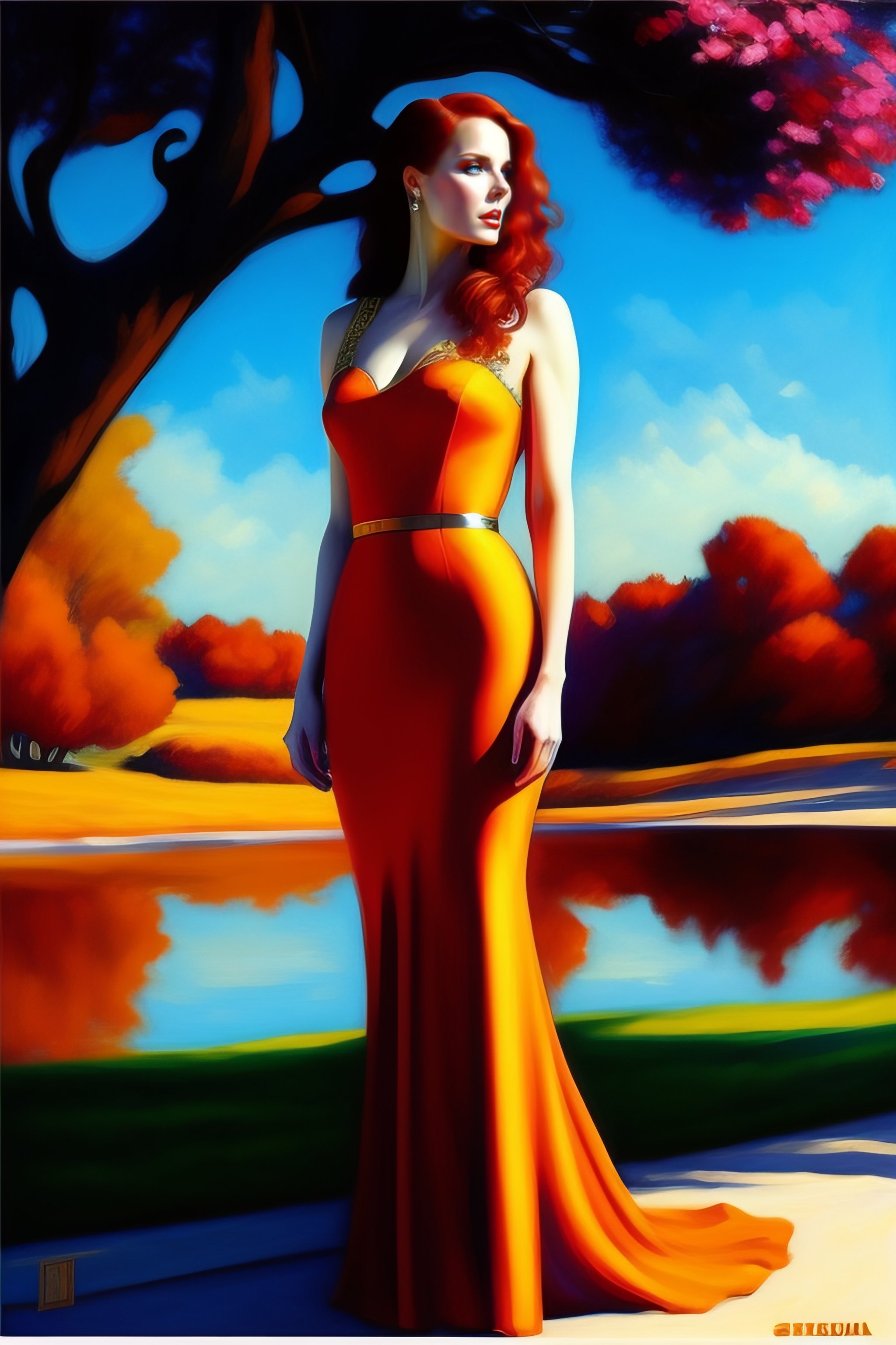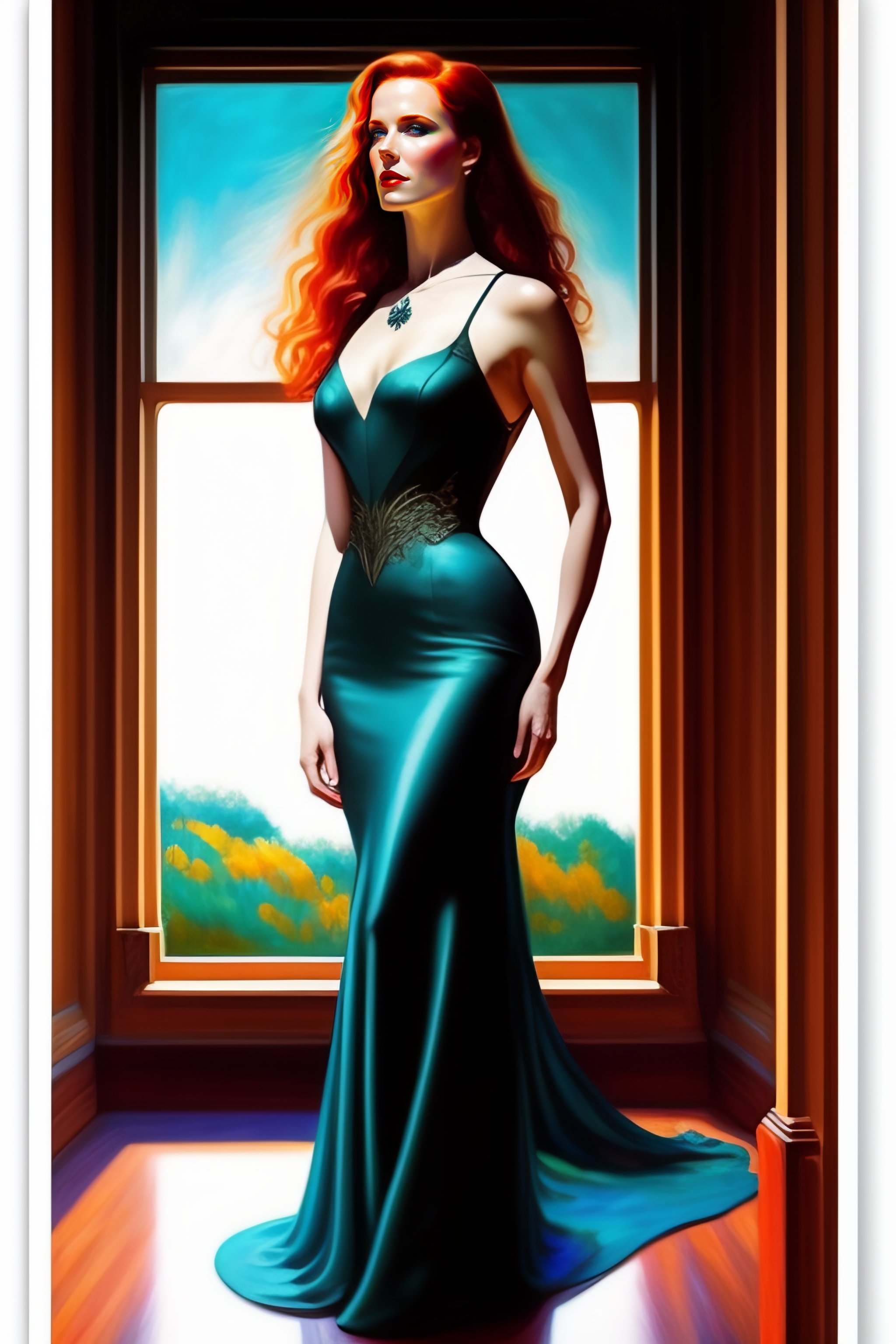 Simone simons, epica, realistic detailed, beautiful gorgeous, art nouveau dress, proportional body, bucolic environment, art by edward hopper