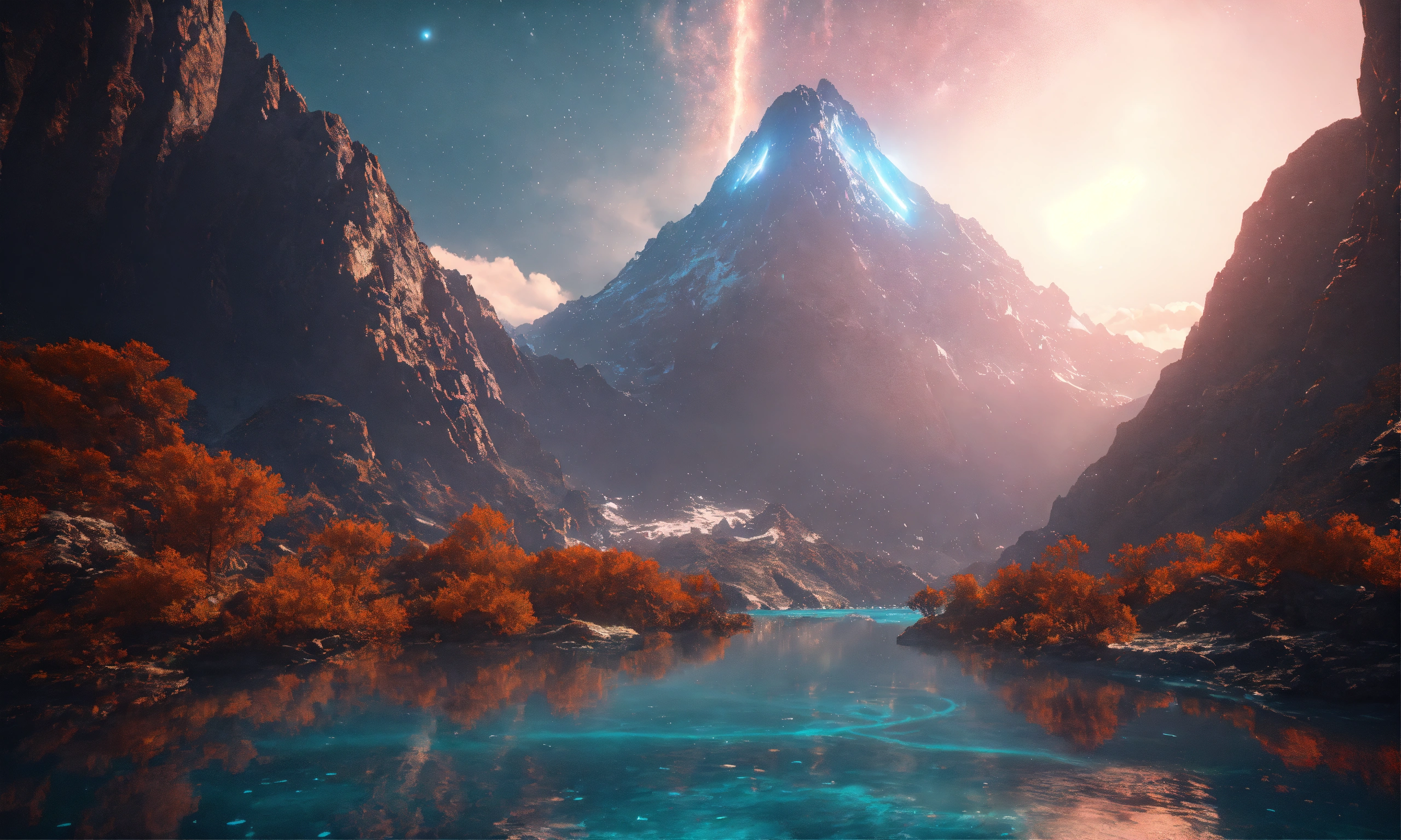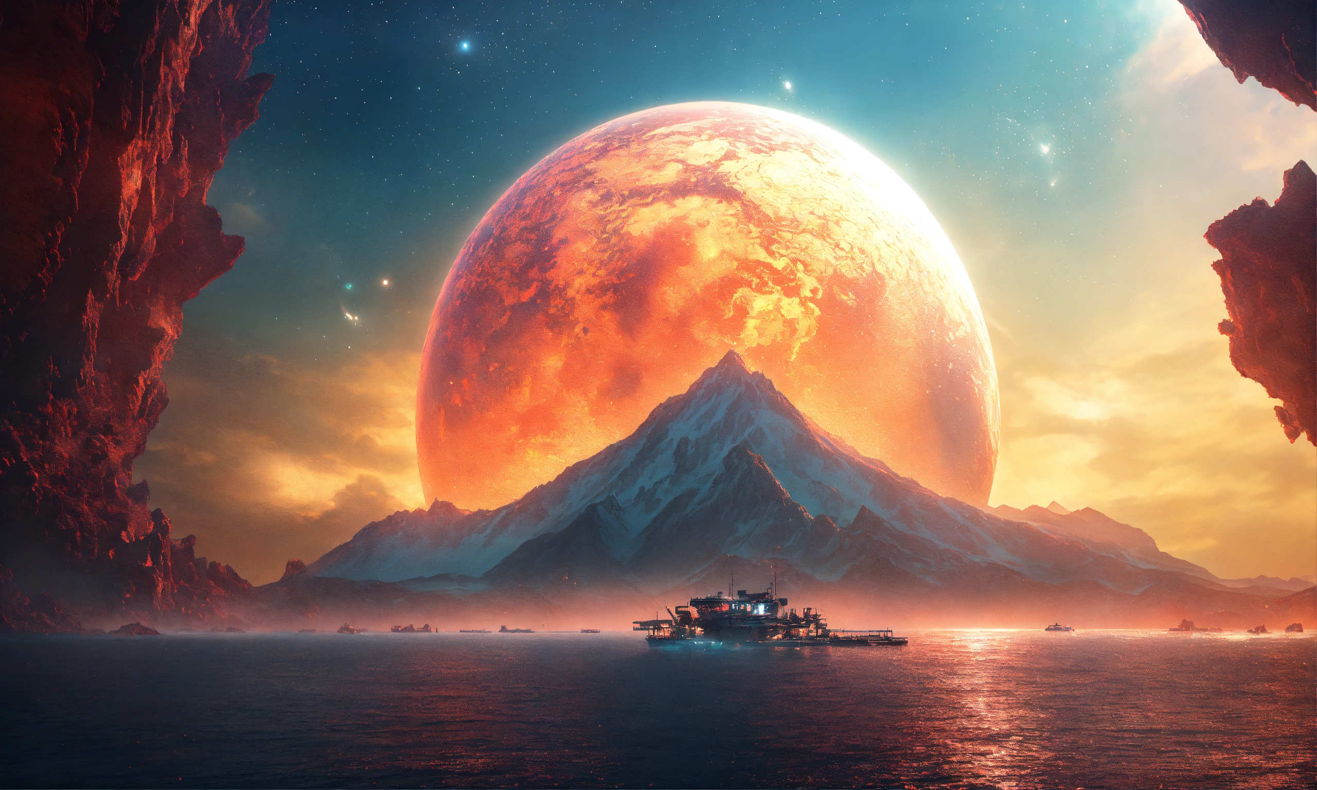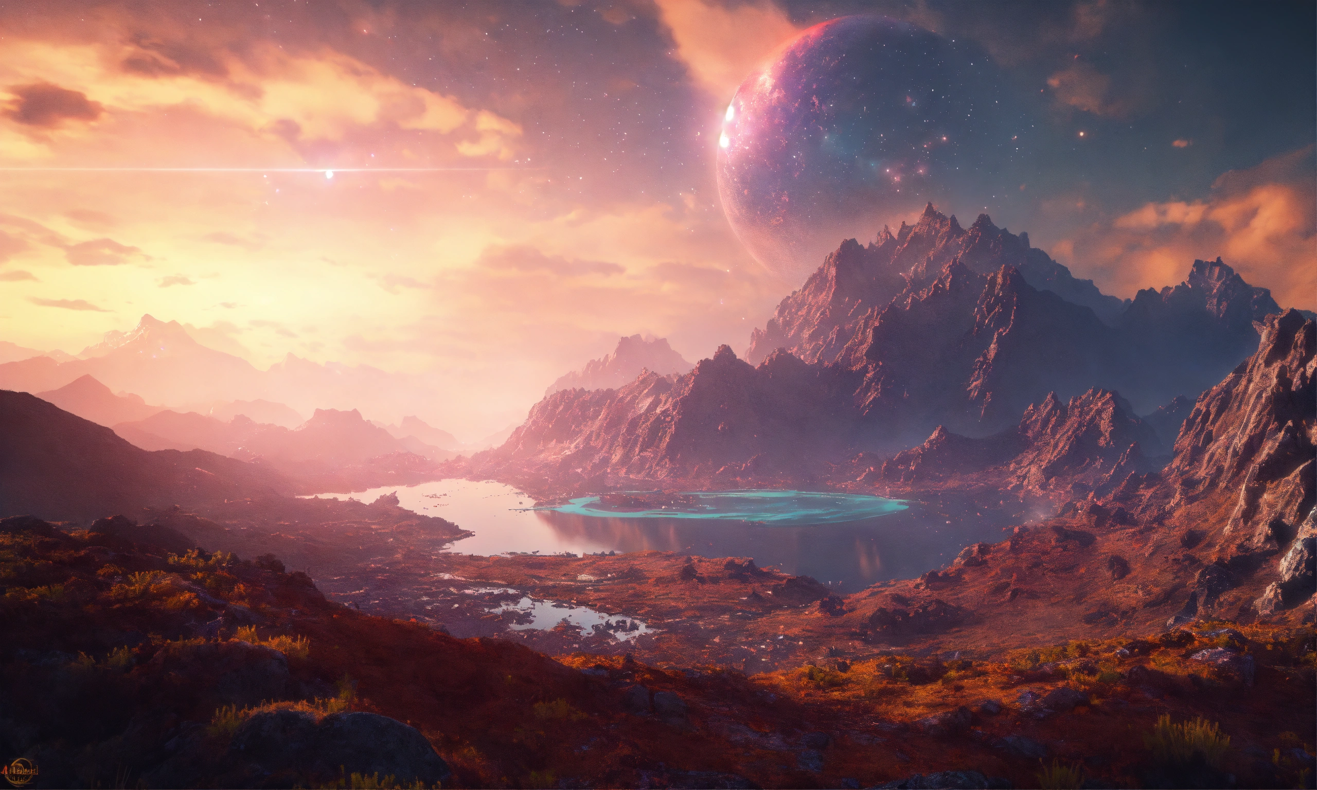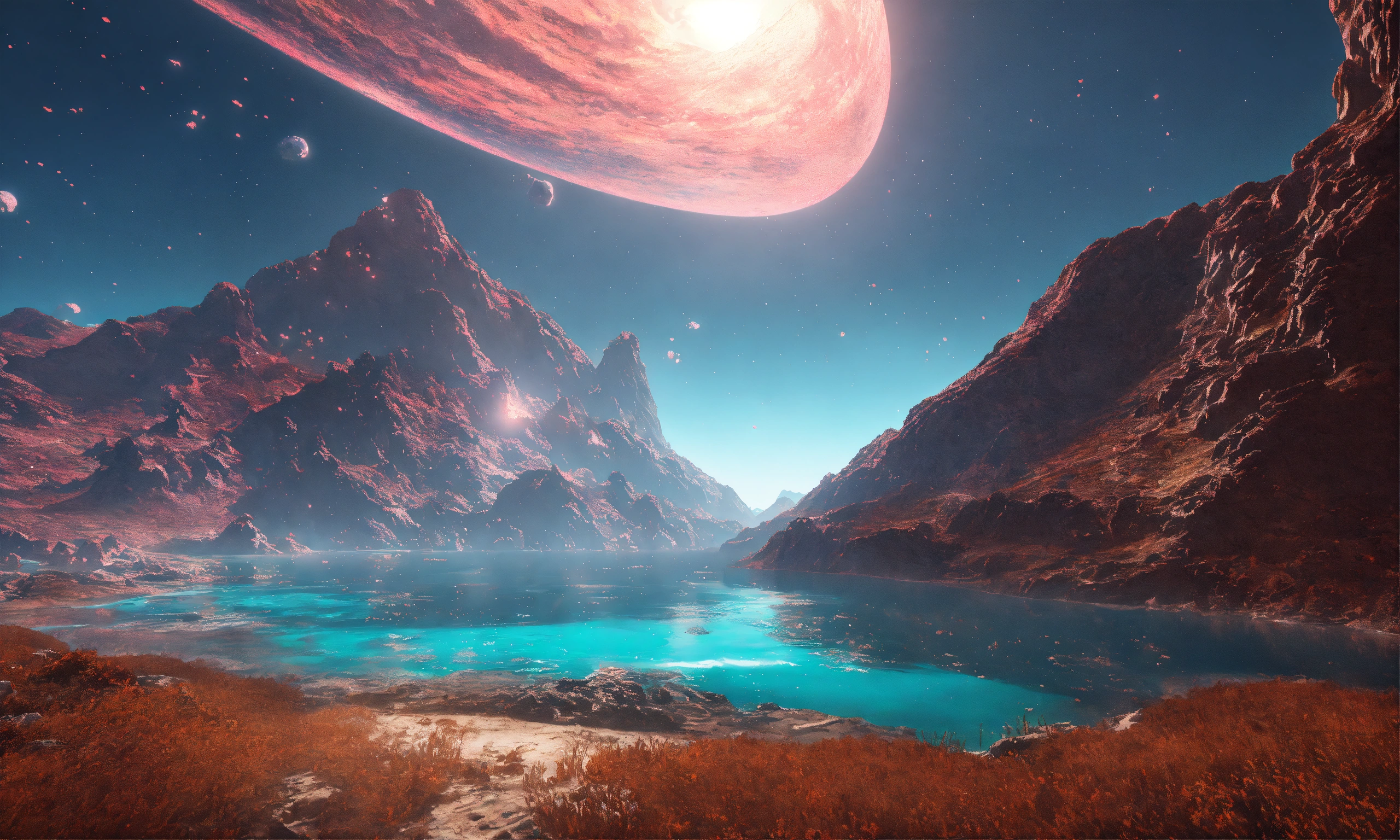 Being reincarnated into a ocean world, sky nebula, artstation scifi 3d scene of a showing mountains, maximalism, ambient occlusion, atmospheric haze, unreal engine, hyper realism, realistic shading, cinematic composition, realistic render, octane render, detailed textures, photorealistic, wide shot