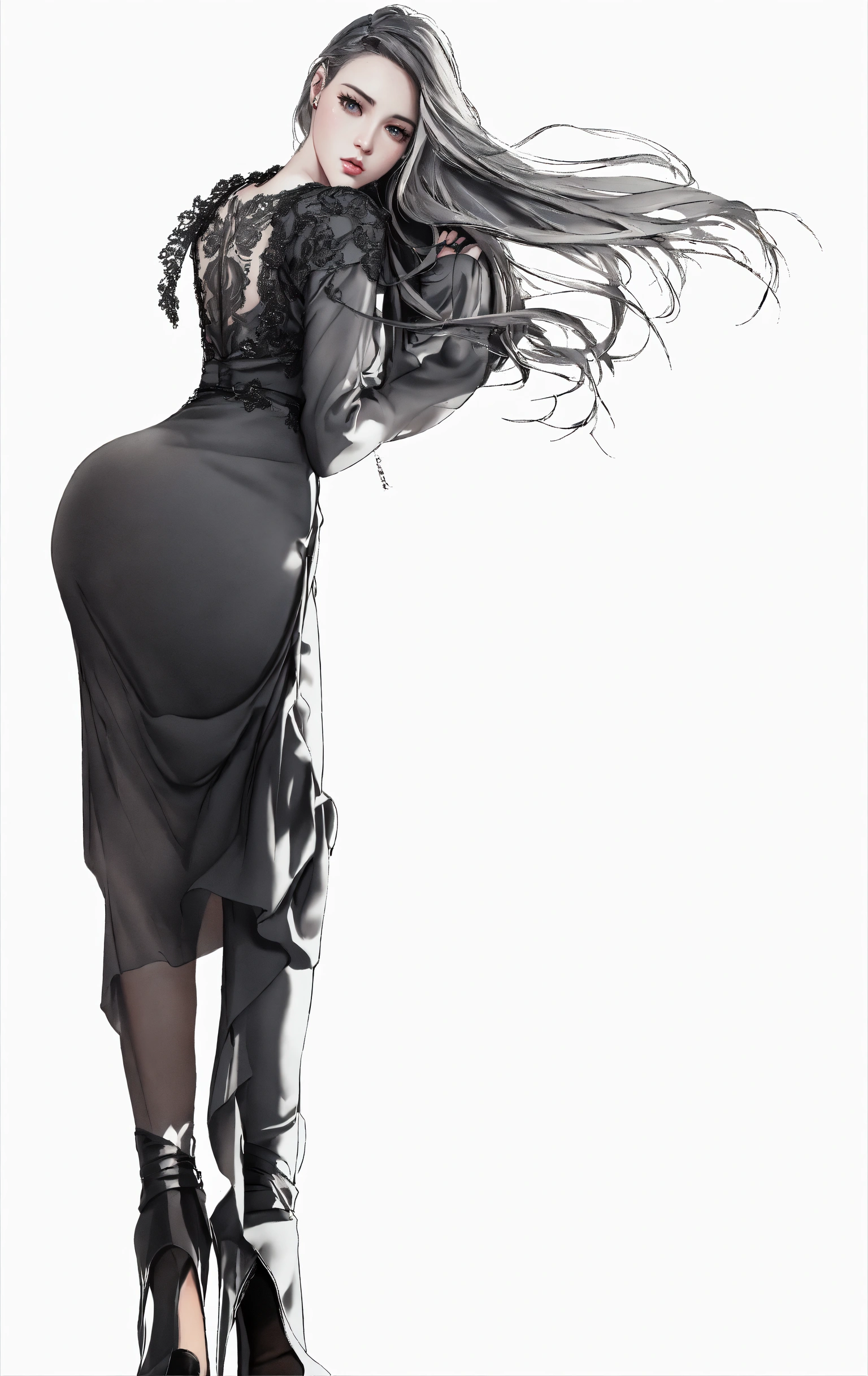 Hyper realism, poetic, romantic, long dress, realistic shading, realistic render, detailed textures, photorealistic, wide shot, landscape