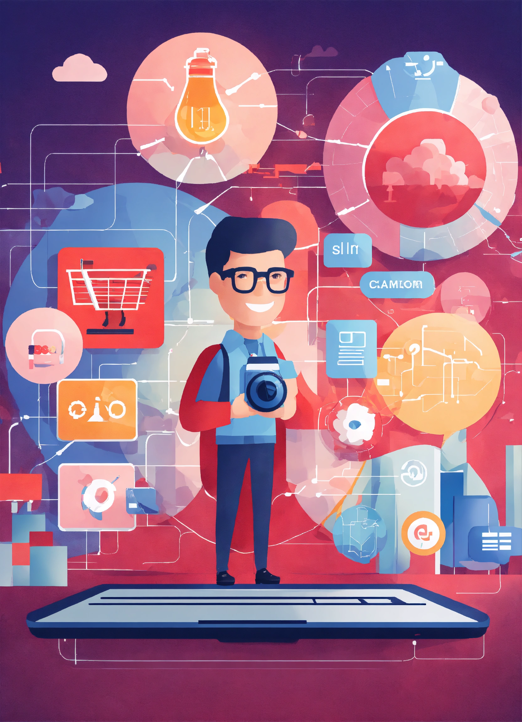 Generate an photo that symbolizes the comprehensive role of a digital marketer including understanding the consumer journey, supply chain, sales, distribution, product insights, crm expertise, and retailer relationships