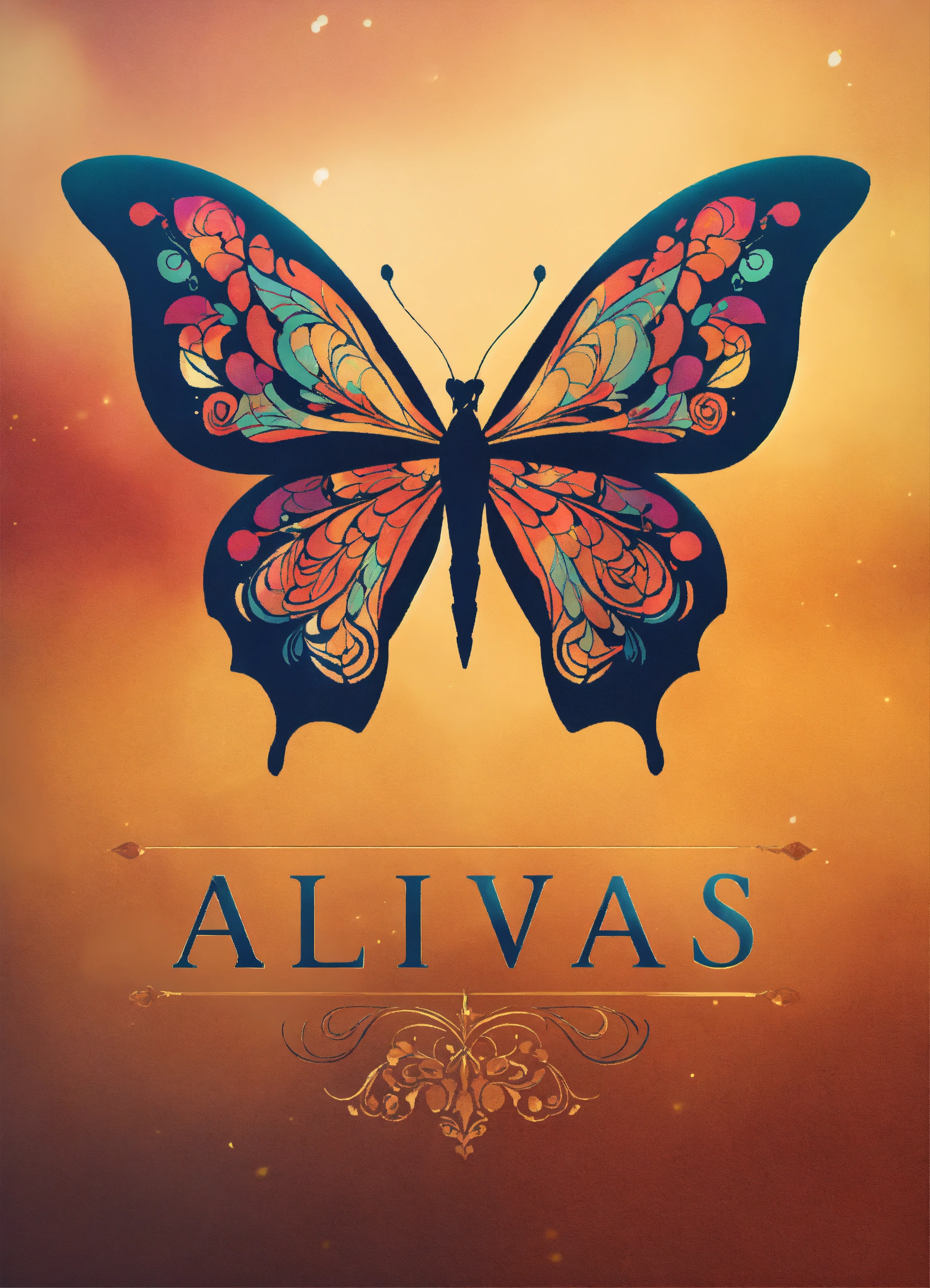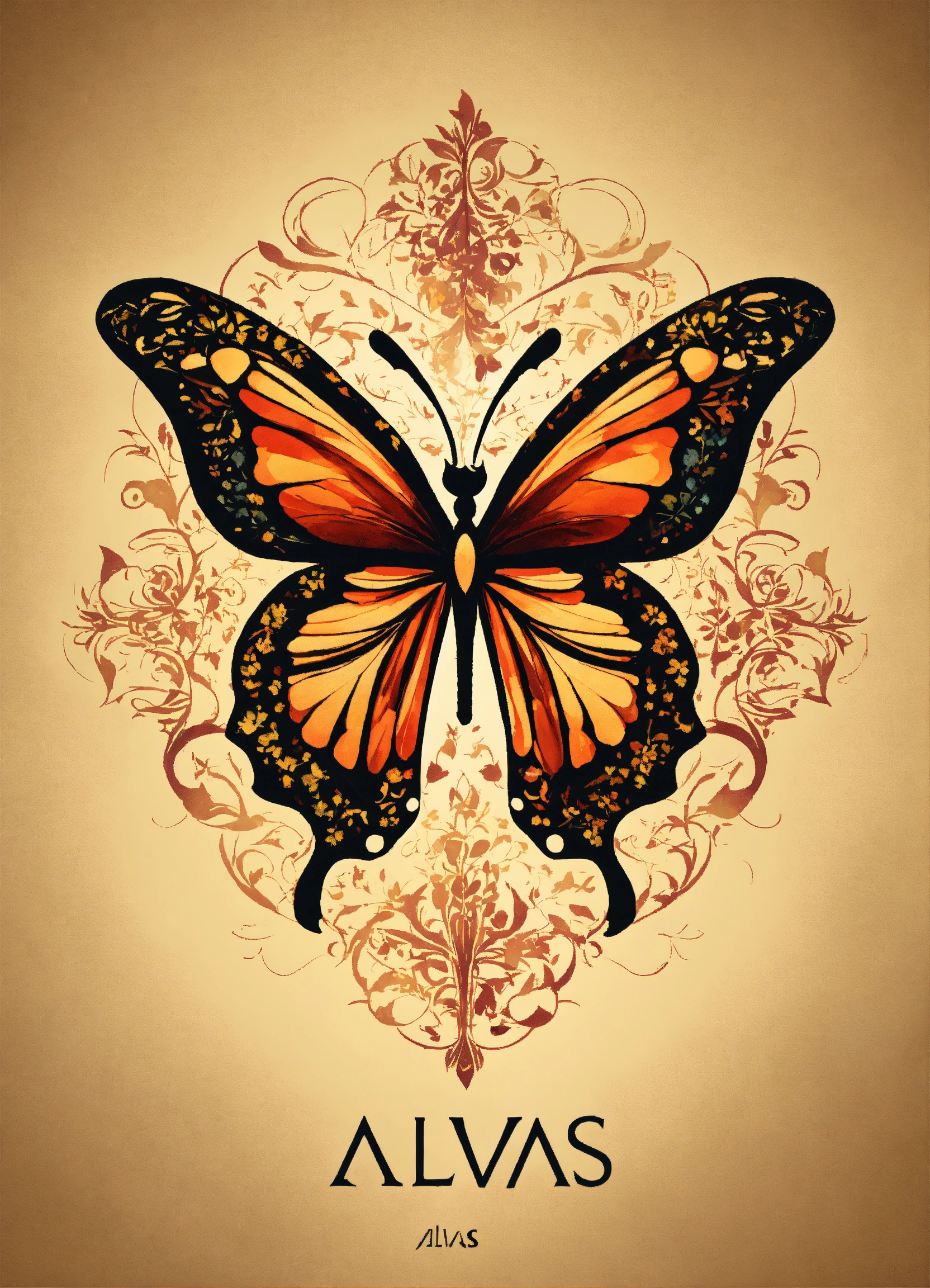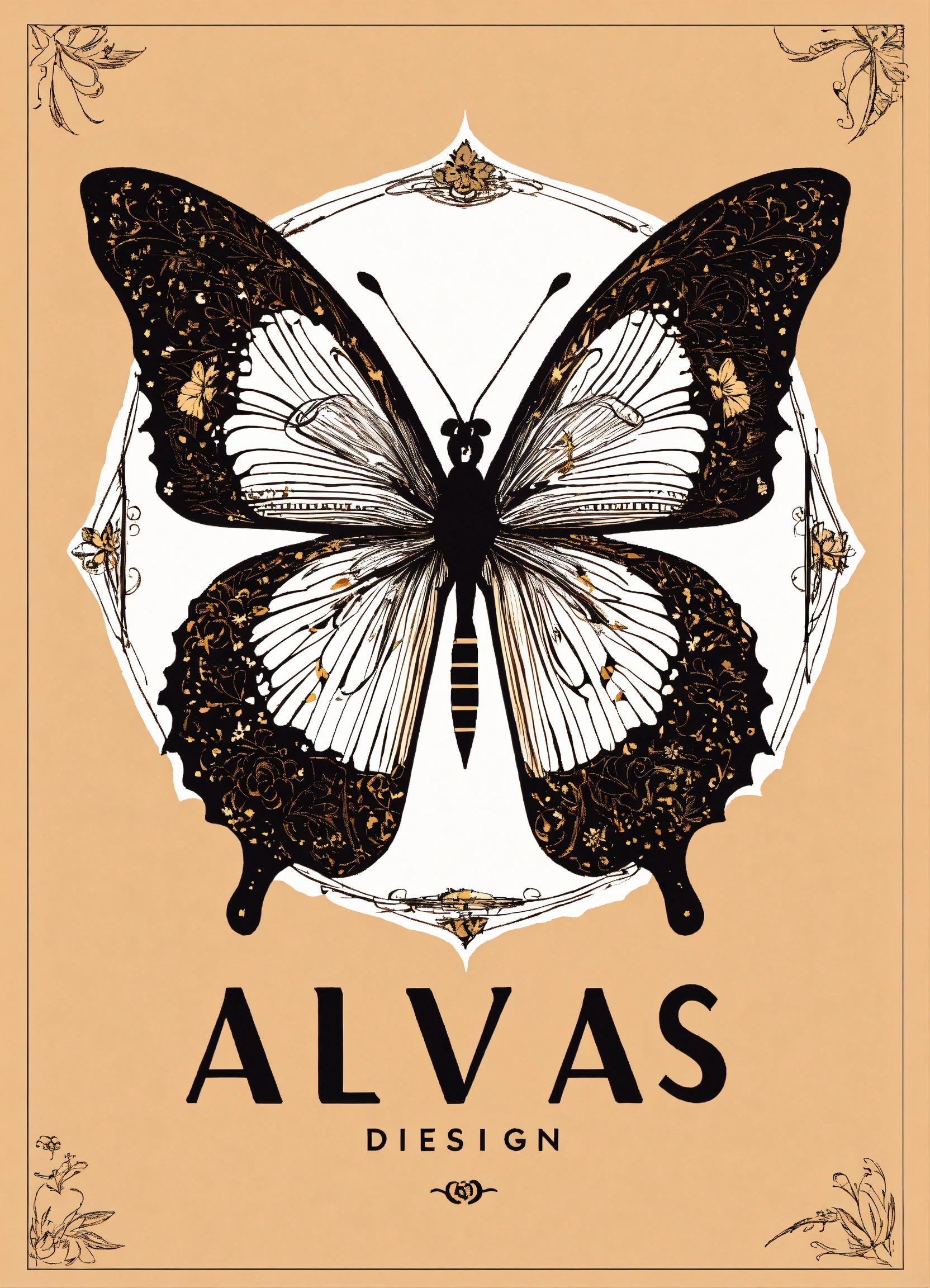 Create an stylish logo for alvas design with butterfly in the back